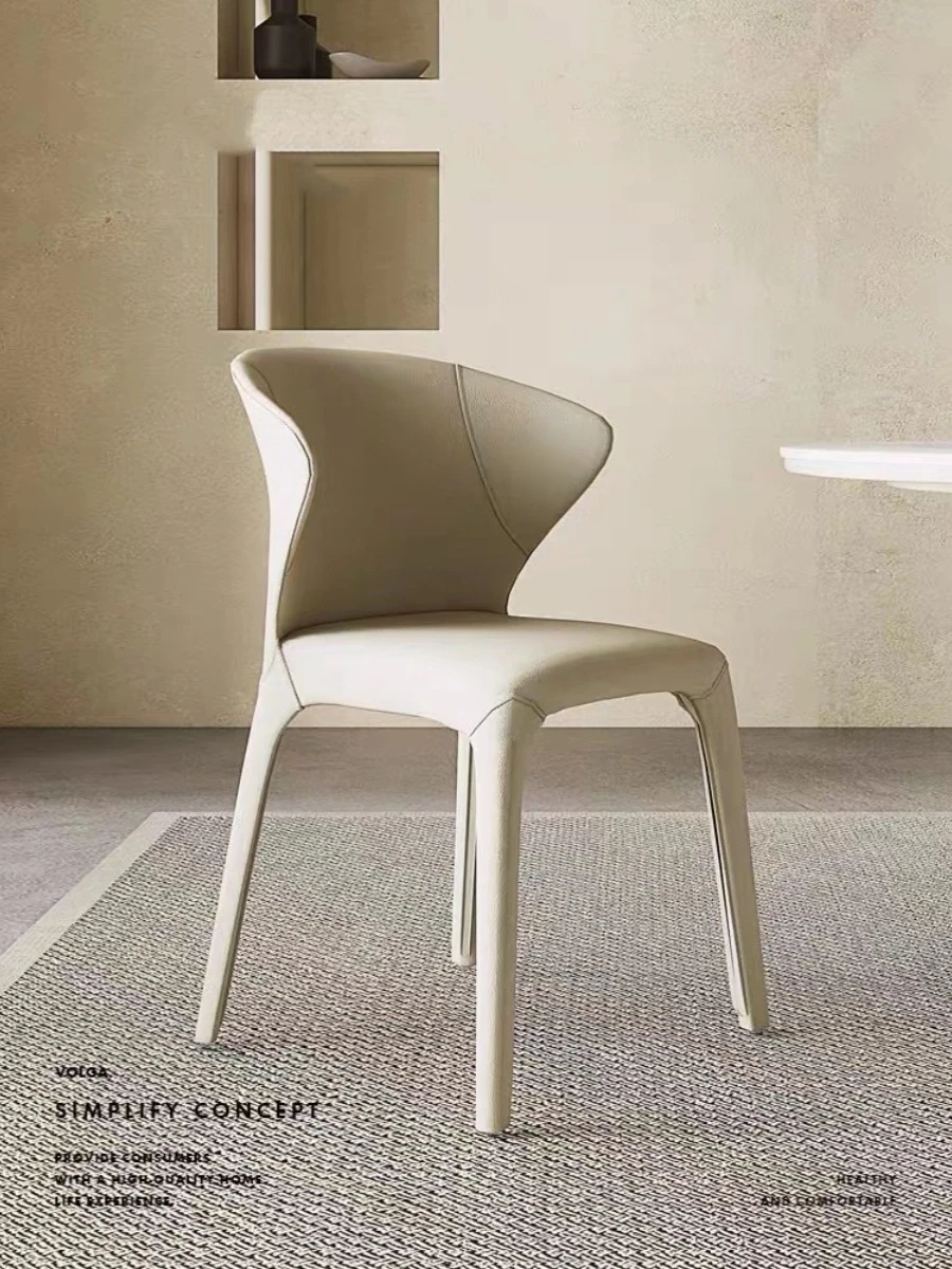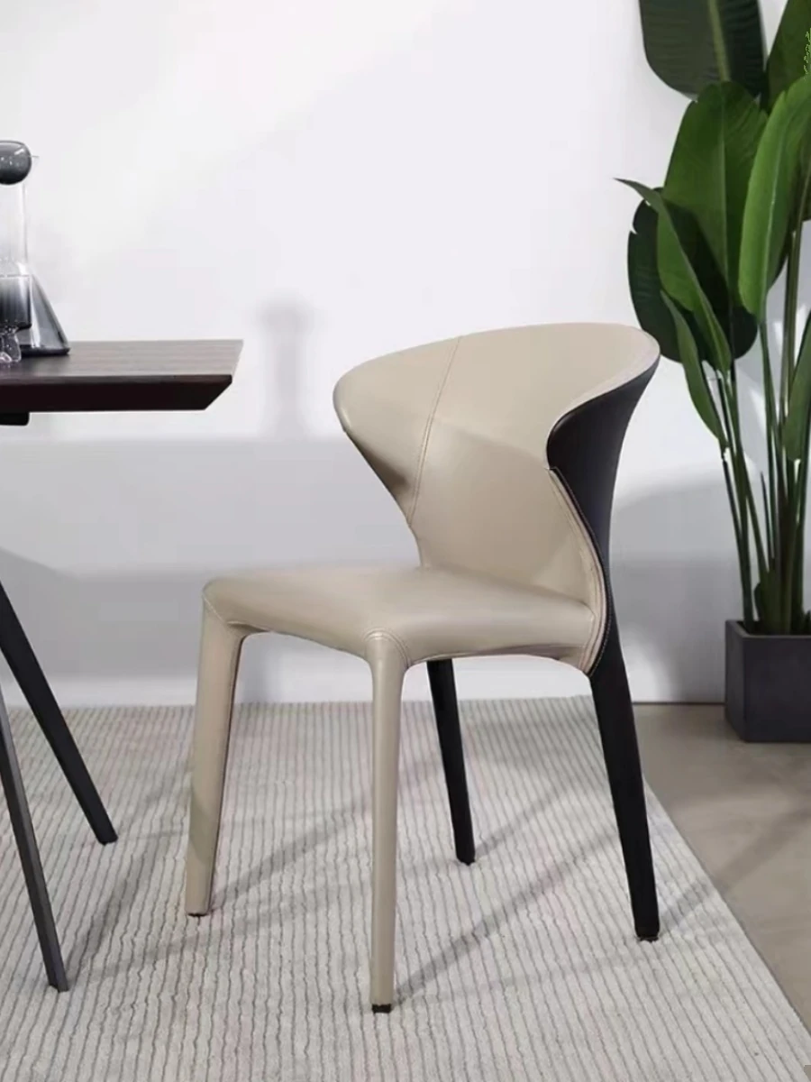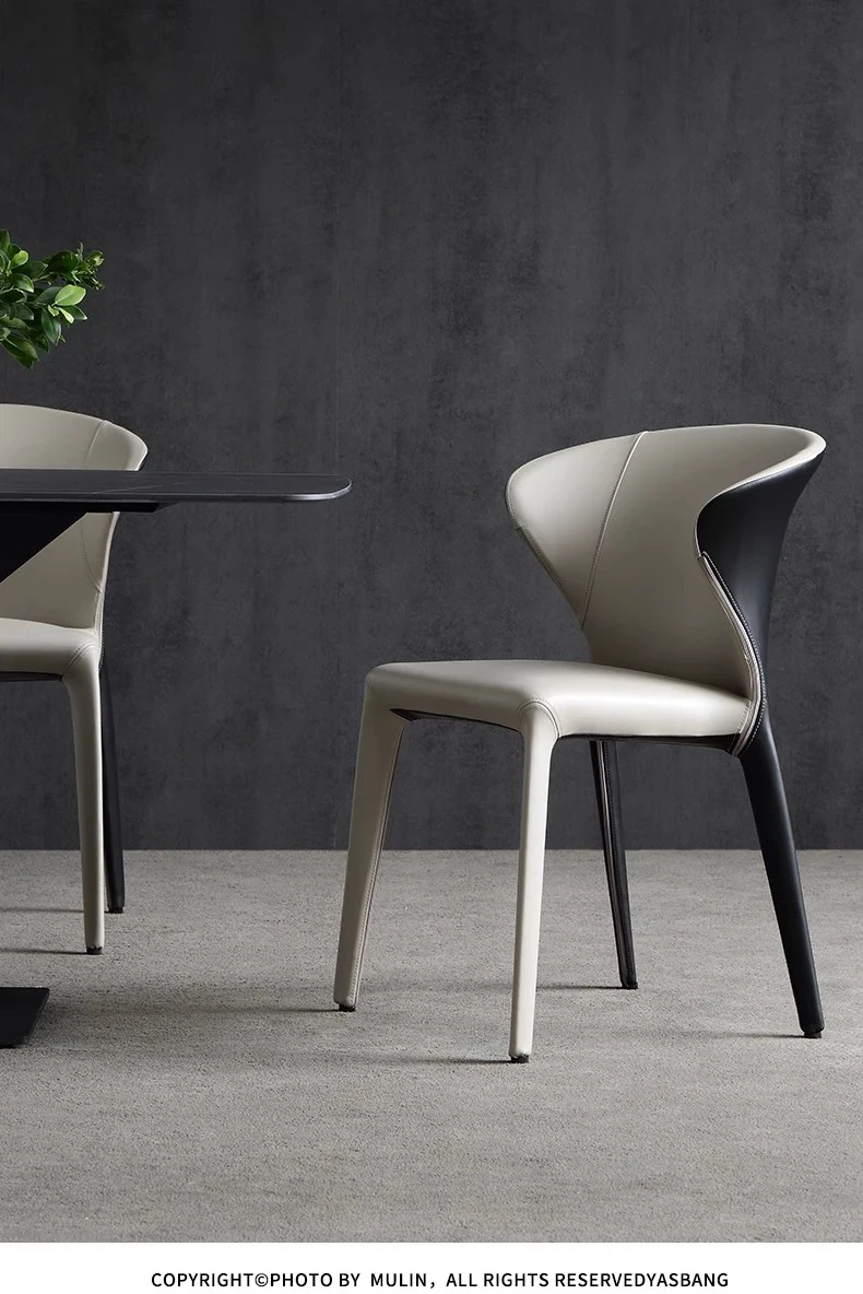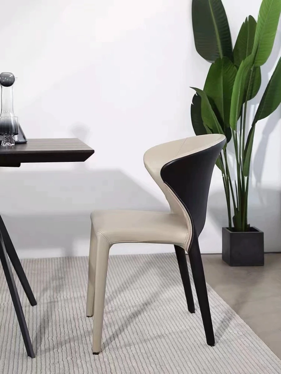 イタリアンミニマルデザイン本革ダイニングチェア - スタイリッシュな背もたれ付き、家庭用に最適。北欧風のシンプルでラグジュアリーなリラックスチェアで、食卓を洗練された空間に演出します。