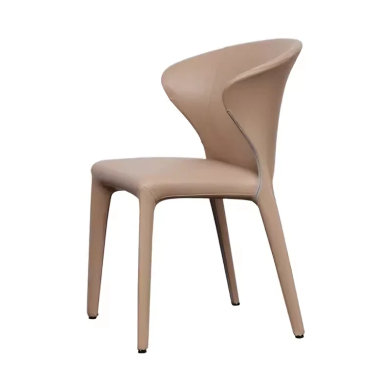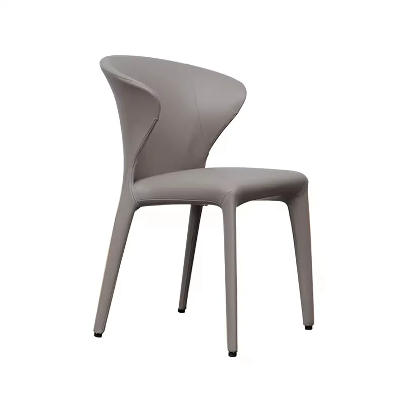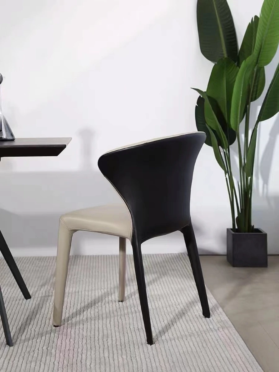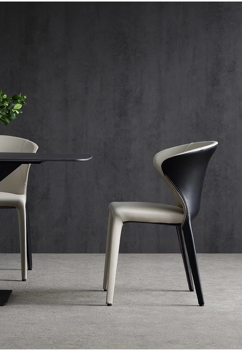 イタリアンミニマルデザイン本革ダイニングチェア - スタイリッシュな背もたれ付き、家庭用に最適。北欧風のシンプルでラグジュアリーなリラックスチェアで、食卓を洗練された空間に演出します。