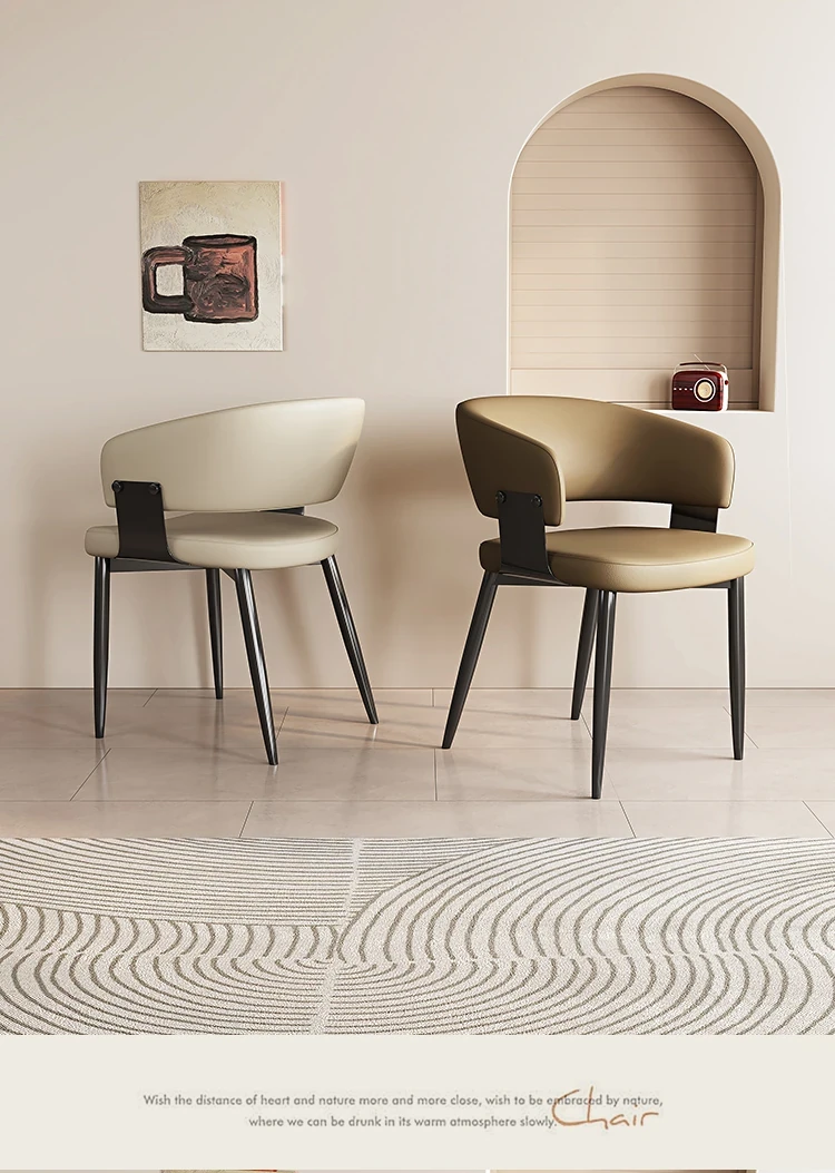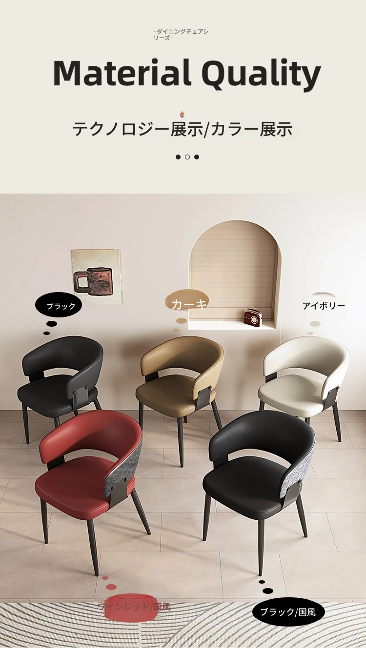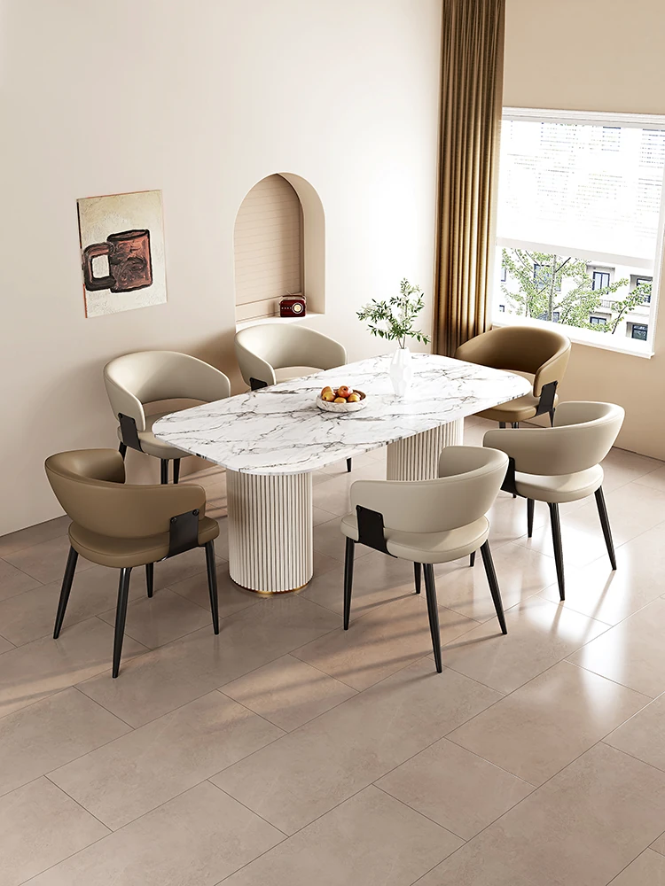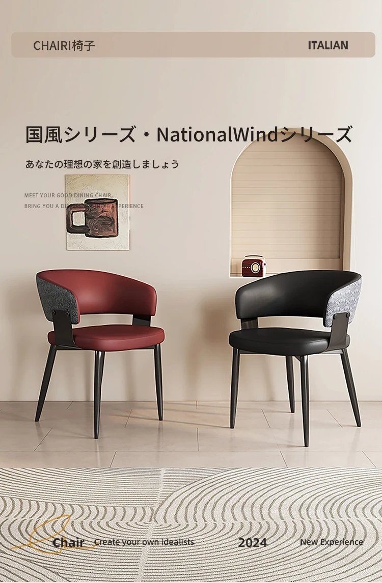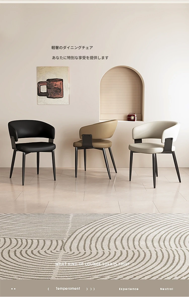 イタリアンミニマリズムの本革ダイニングテーブル&チェアセット|モダンでシンプルなデザイン|家庭用・ホテル用の商談&リラックスチェア|スタイリッシュな空間を演出!