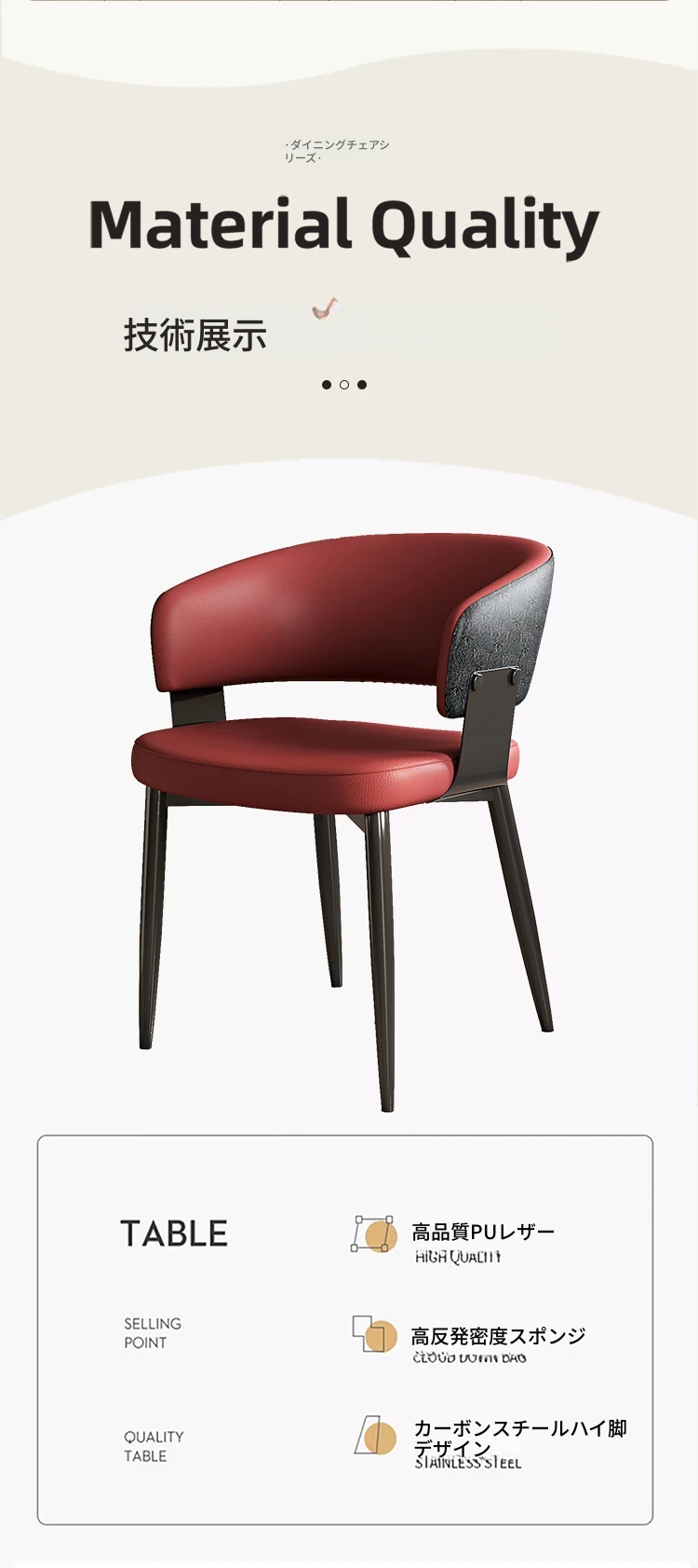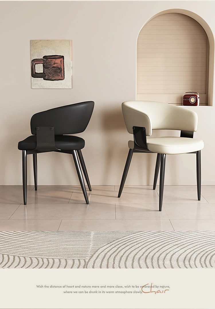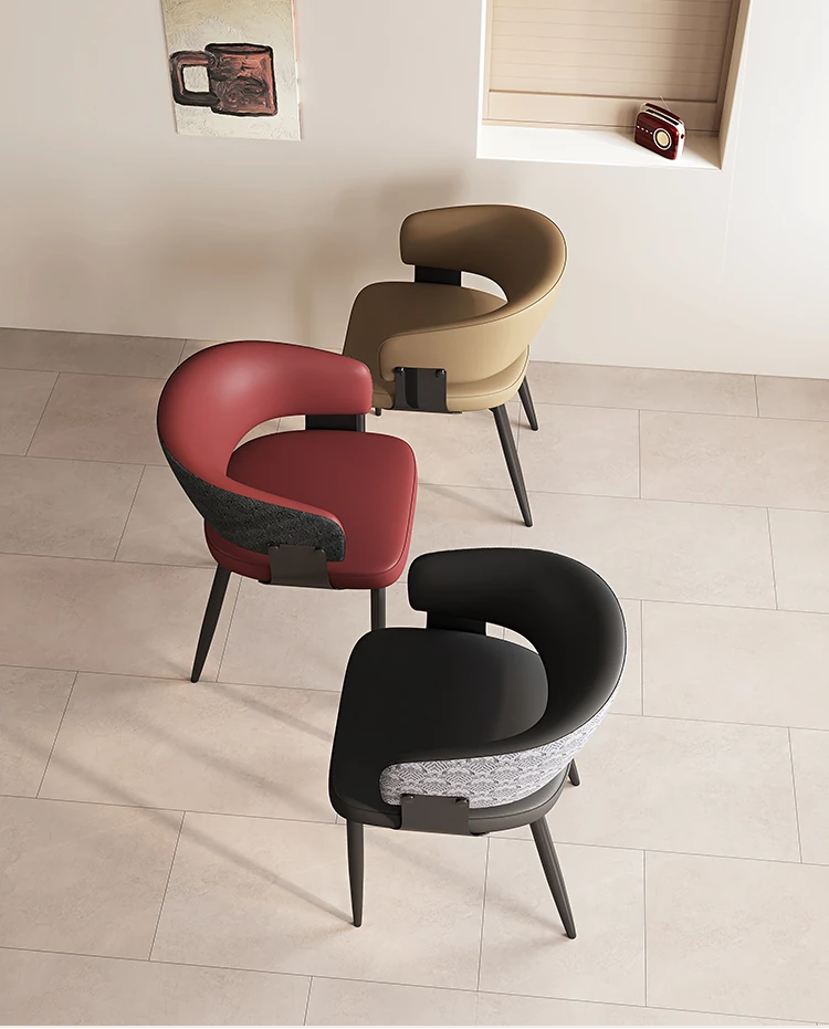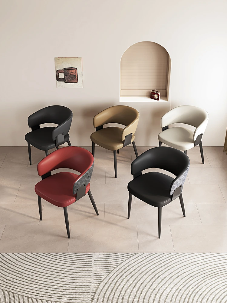 イタリアンミニマリズムの本革ダイニングテーブル&チェアセット|モダンでシンプルなデザイン|家庭用・ホテル用の商談&リラックスチェア|スタイリッシュな空間を演出!
