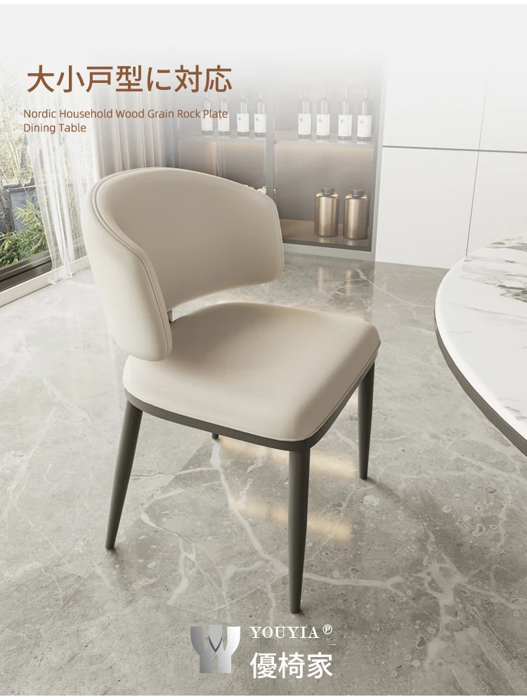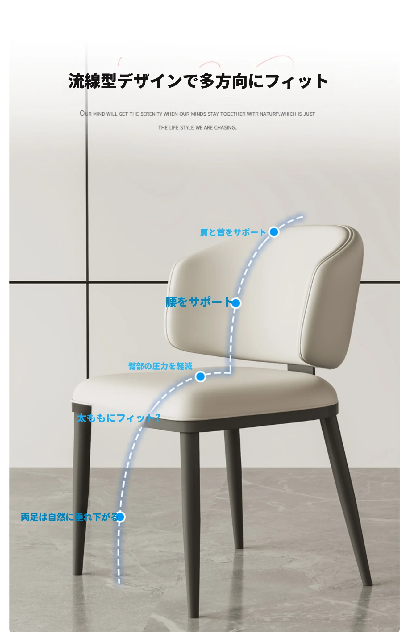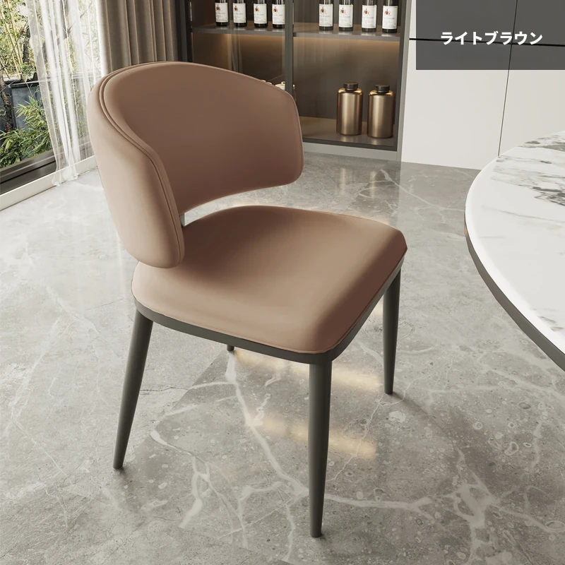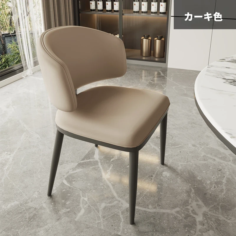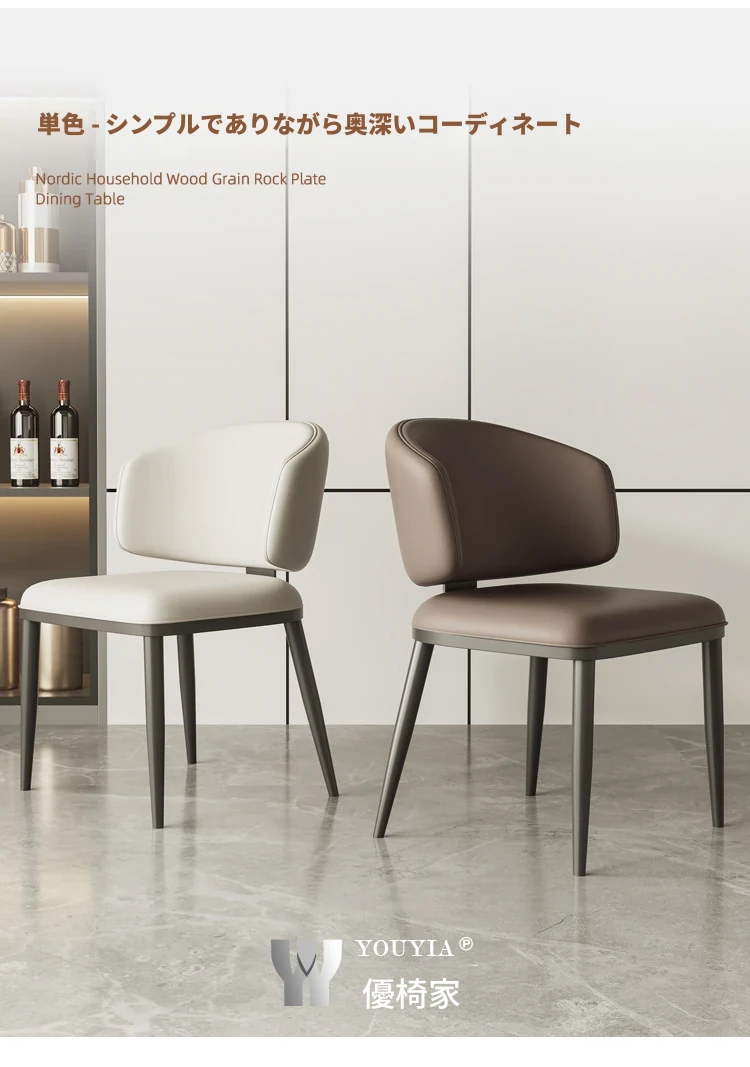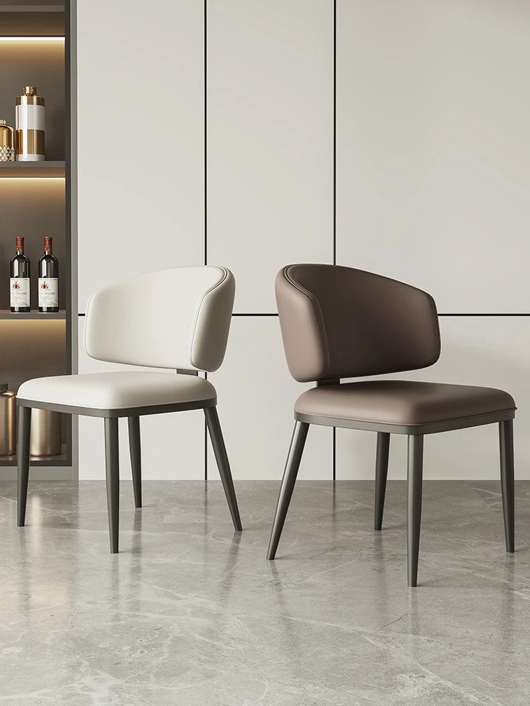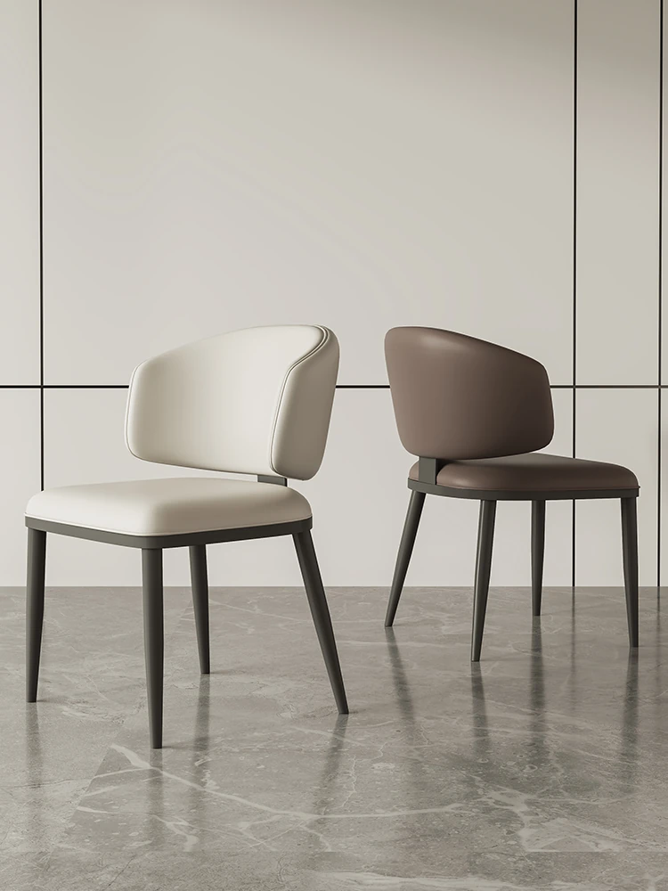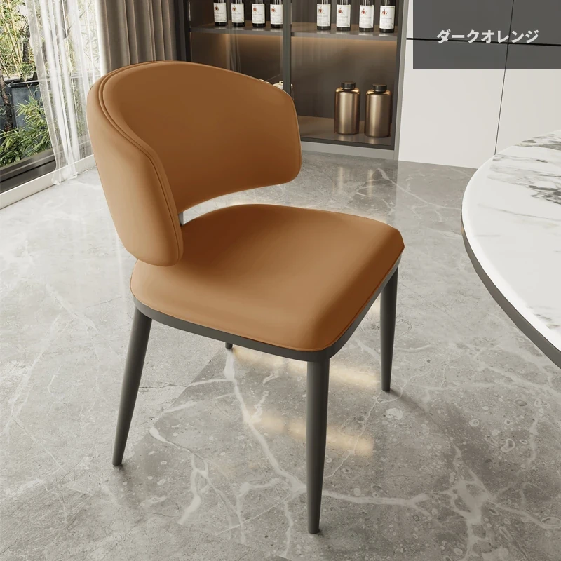 イタリアンモダン・ミニマリスト本革ダイニングチェア|洗練されたデザインの背もたれ付き椅子|シンプルで高級感あふれるダイニングテーブル用チェア