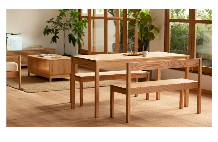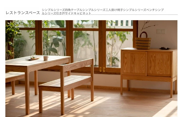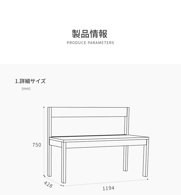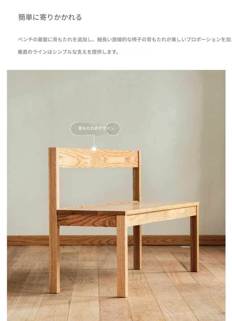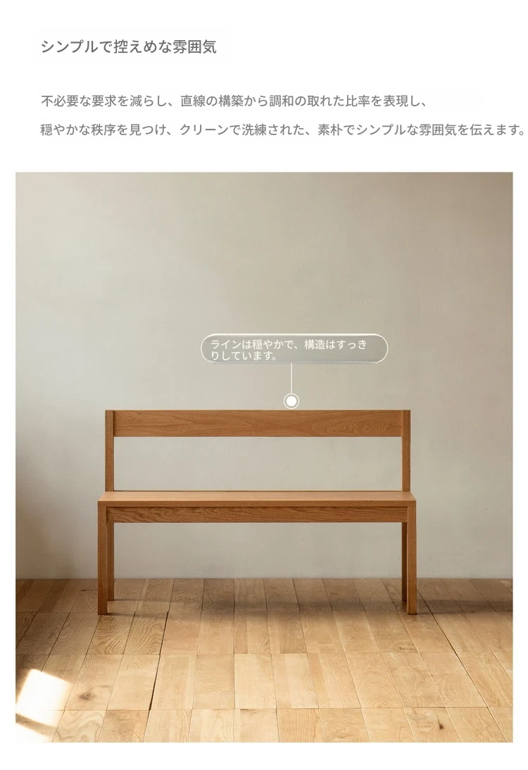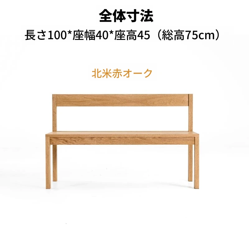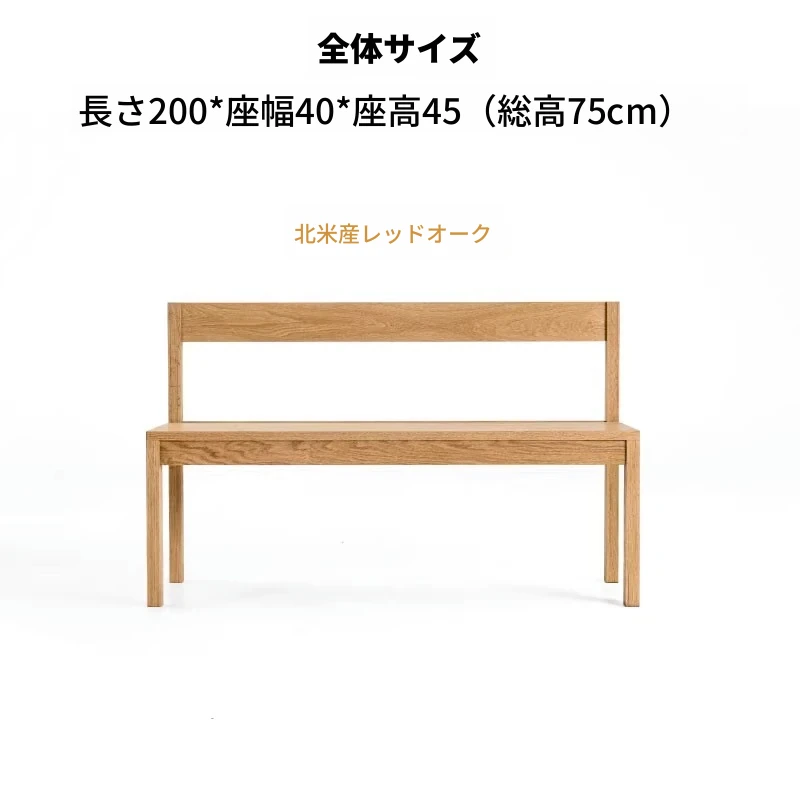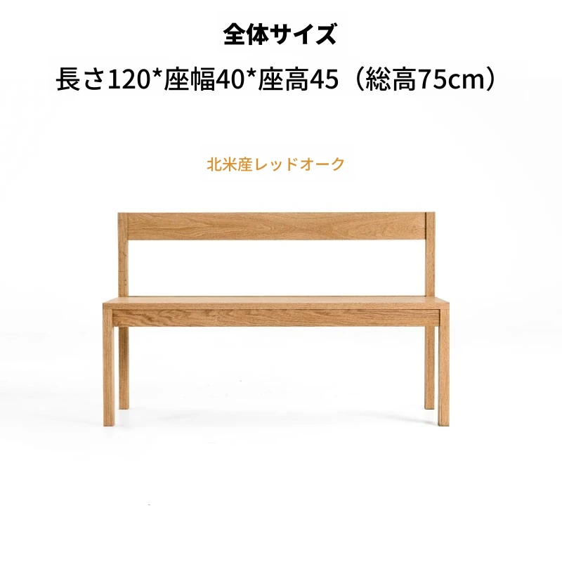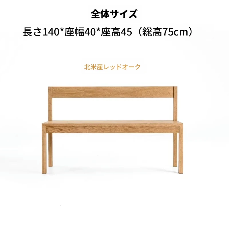 木製の和風ロングベンチ、背もたれ付きデザインで快適な座り心地。2人掛け、赤オーク・チェリー・ウォールナットのシンプルな無垢材使用。おしゃれな空間を演出する、心温まる家具です。