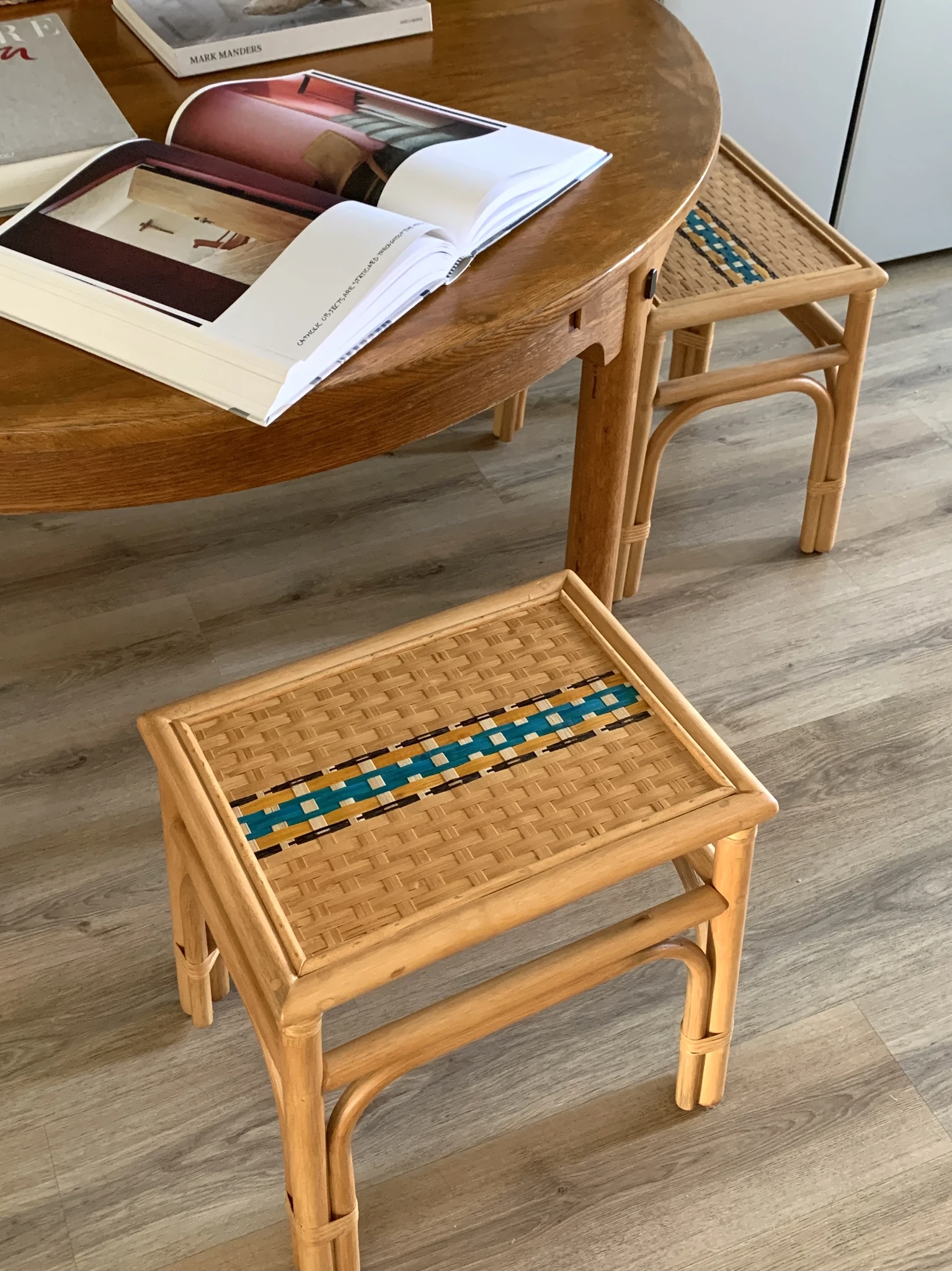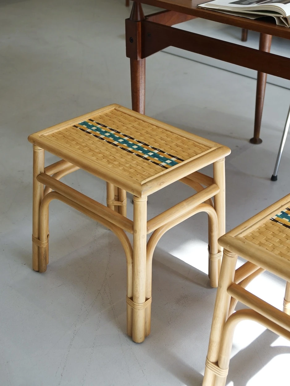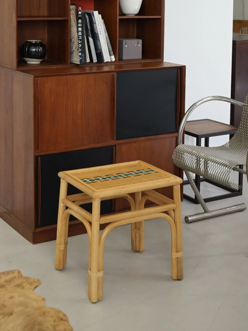 LABOLOGY HOME|目目藤編みスツール 新中式ダイニングチェア ベッドサイドスツール ソファサイドテーブル アウトドアスツールで、スタイリッシュな空間を演出!