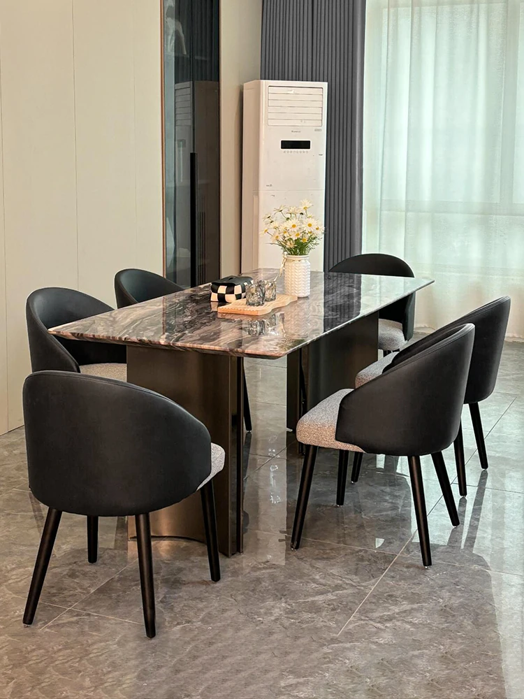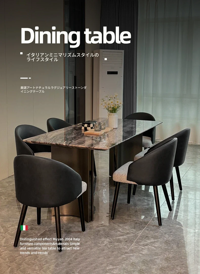 【A級輸入】ヴェネツィアブラウン天然ラグジュアリーストーンダイニングテーブル+皮布本革ダイニングチェア*6