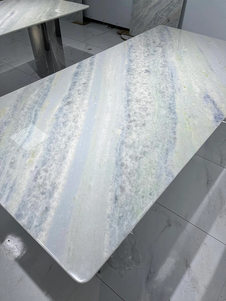 ブルークリスタル天然ラグジュアリーストーンダイニングテーブル