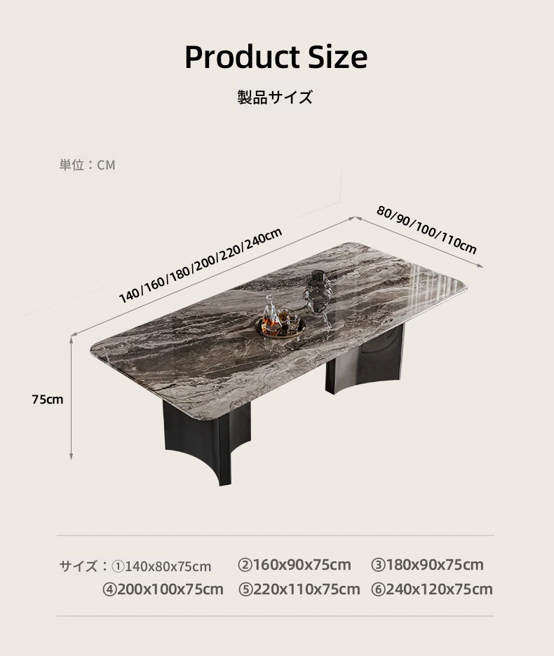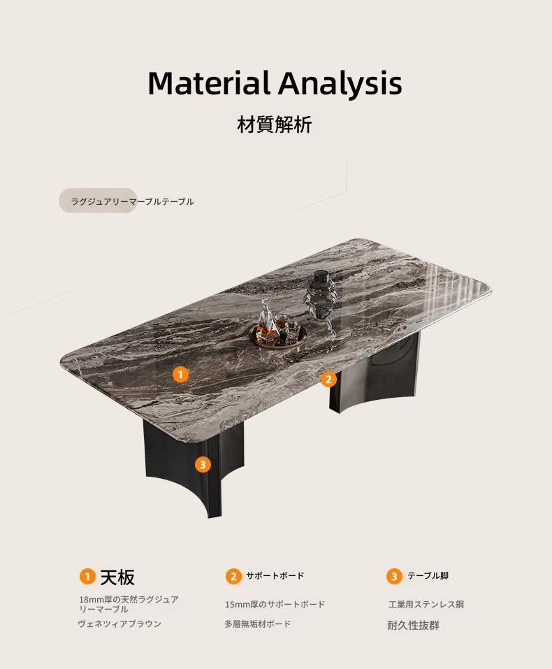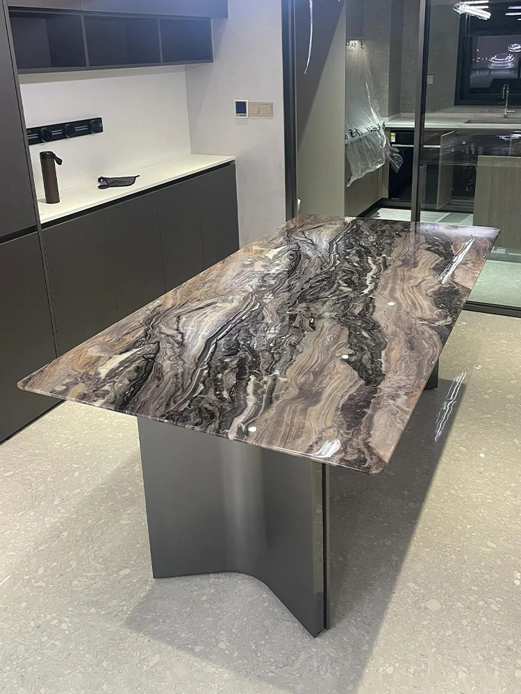 【A級輸入】ヴェネツィアブラウン天然ラグジュアリーストーンダイニングテーブル