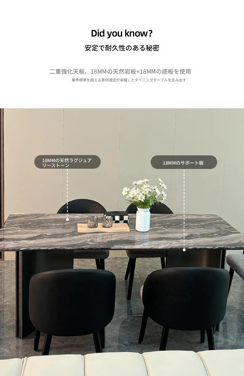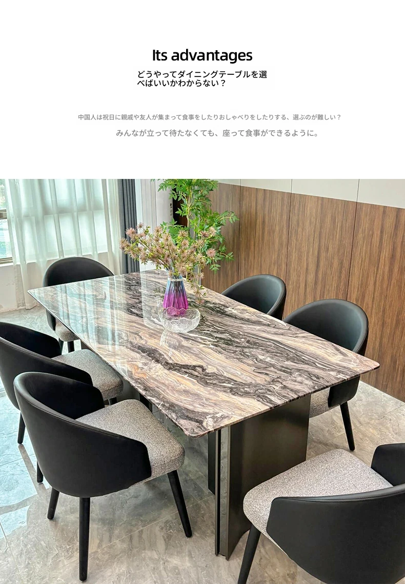 【A級輸入】ヴェネツィアブラウン天然ラグジュアリーストーンダイニングテーブル+皮布本革ダイニングチェア*8