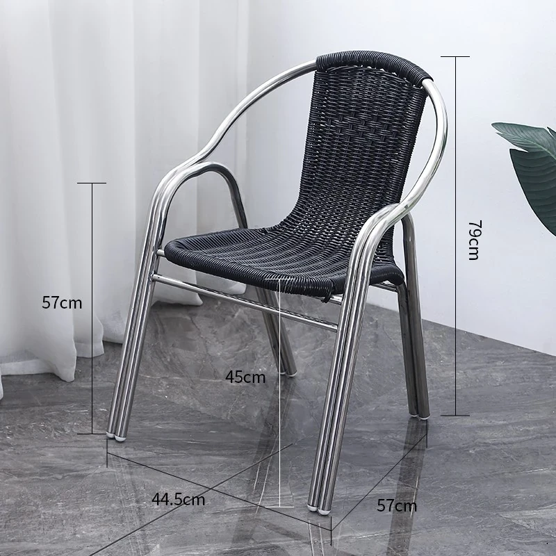 ダブルパイプ黒色ラタンチェア中厚モデル