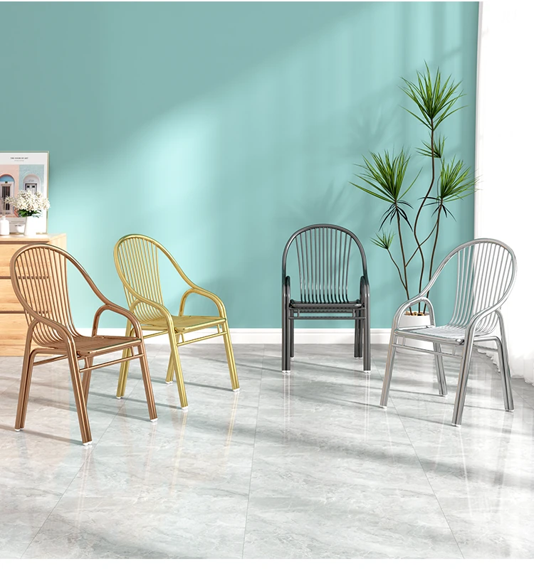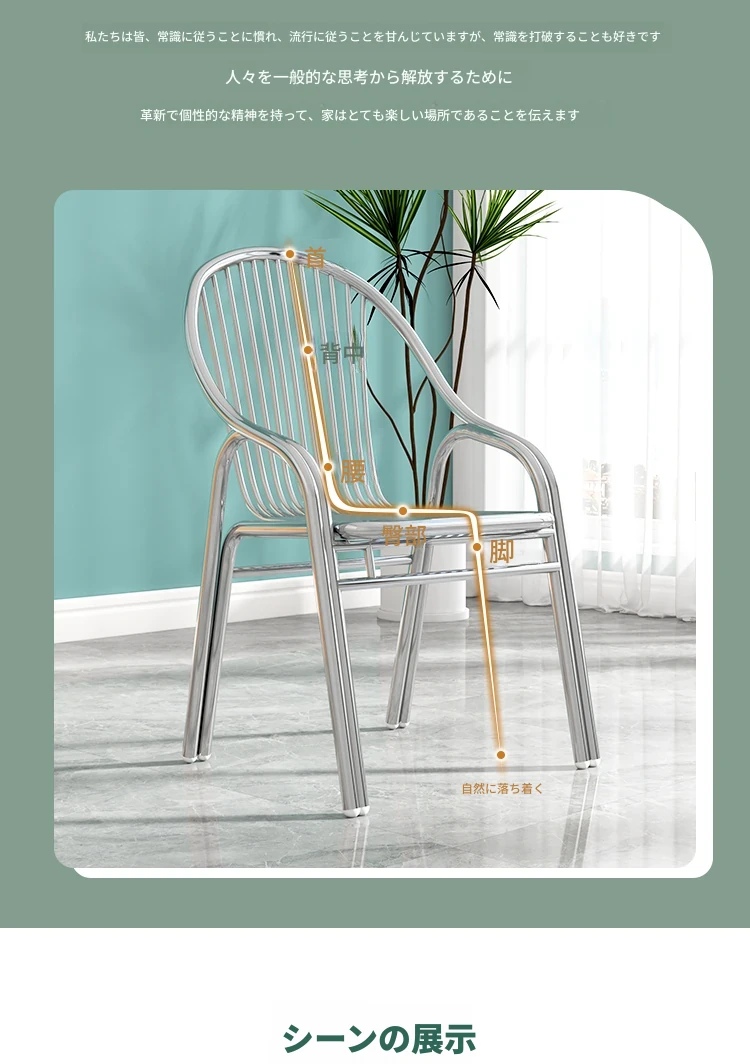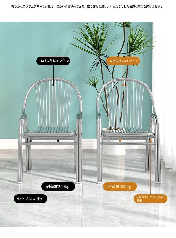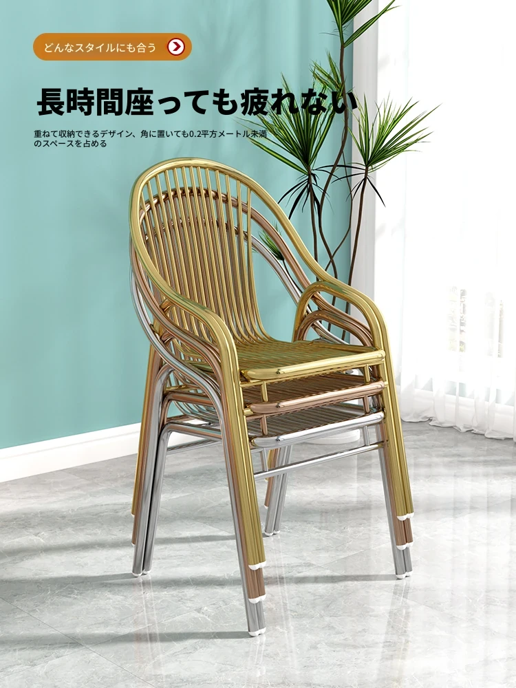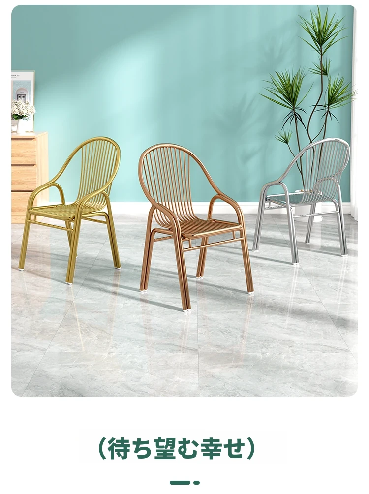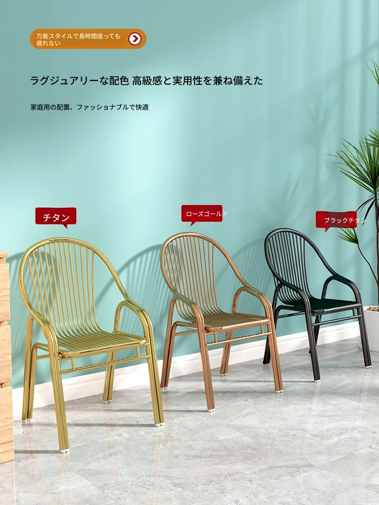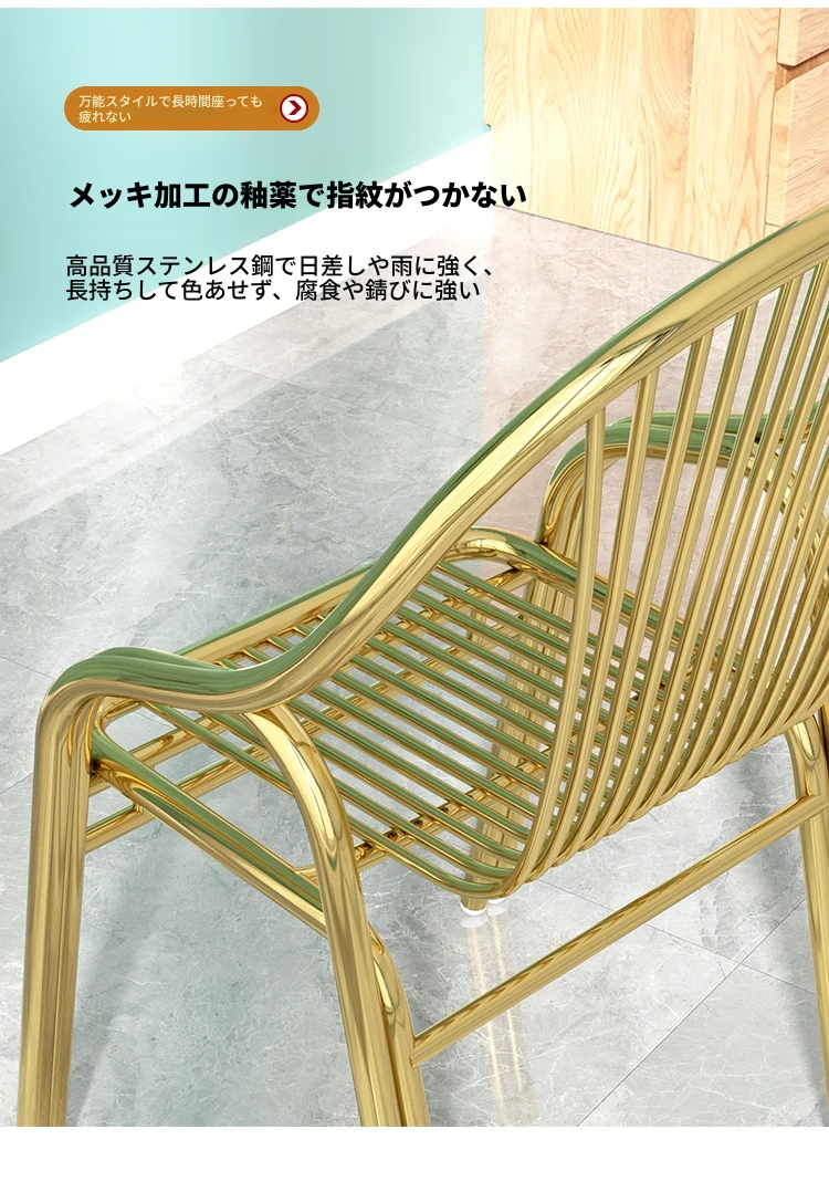 304ステンレス製の豪華ゴールドチェア!家庭用ダイニングテーブルにぴったりな背もたれ付き、モダンでスタイリッシュなアウトドア用一人掛けリラックスチェア。高級感溢れるデザインで、快適な時間をお楽しみください!