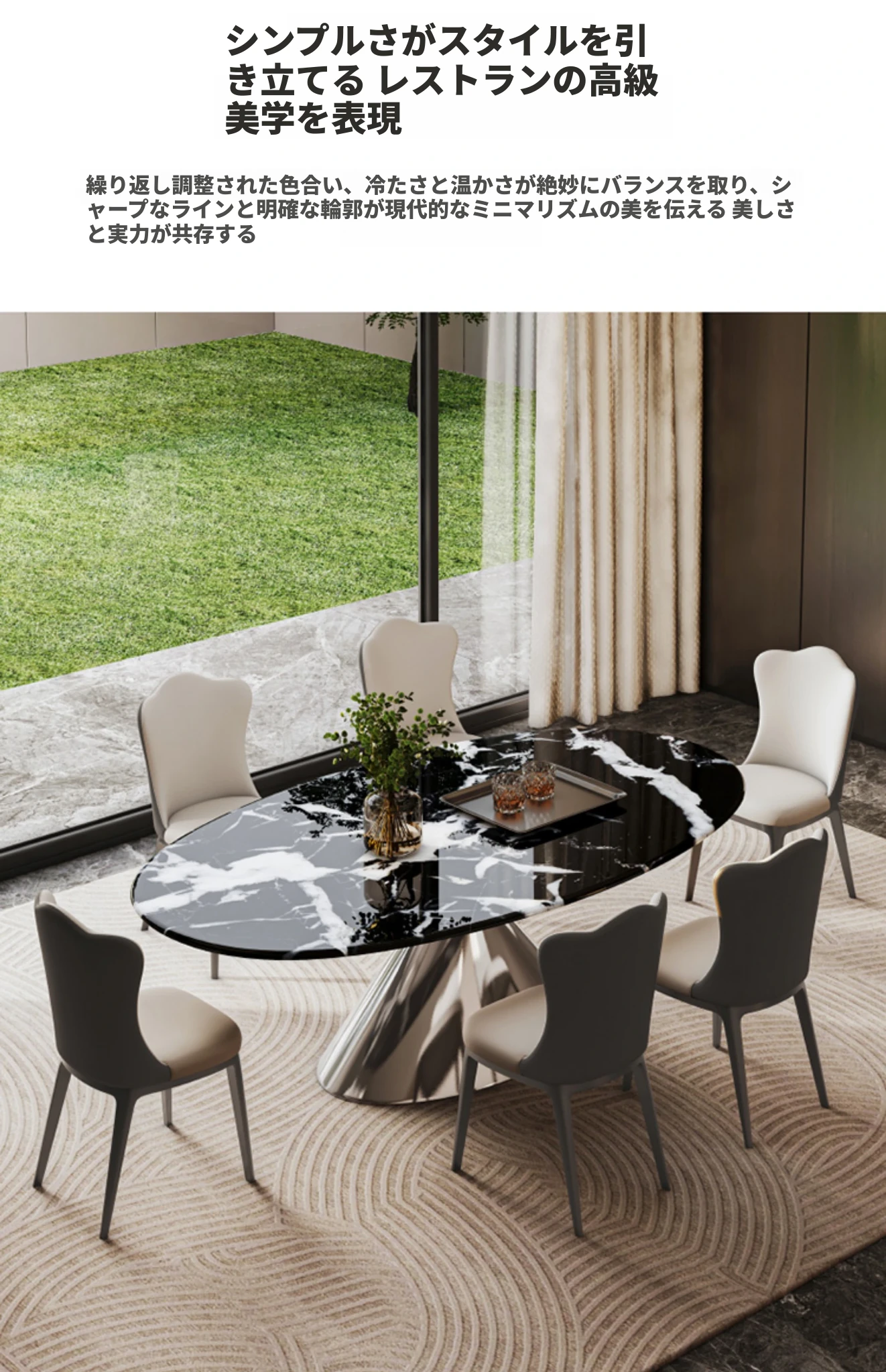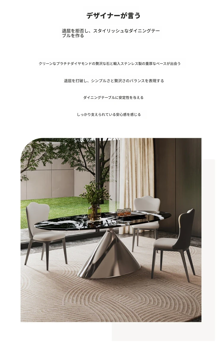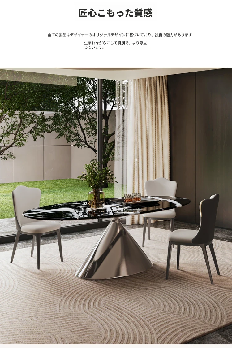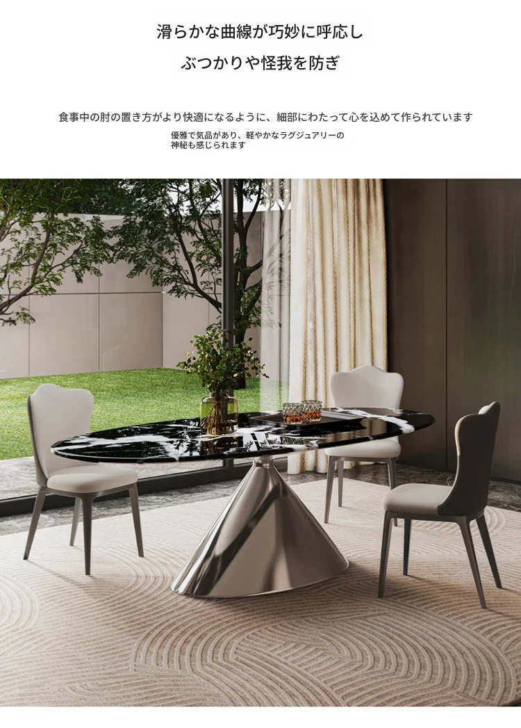 天然ボッガリ黒ラグジュアリー石製イタリアン軽奢高級フラットエレガント楕円形大理石テーブル&チェアセット - 上質な食事空間を演出するアイテムです。