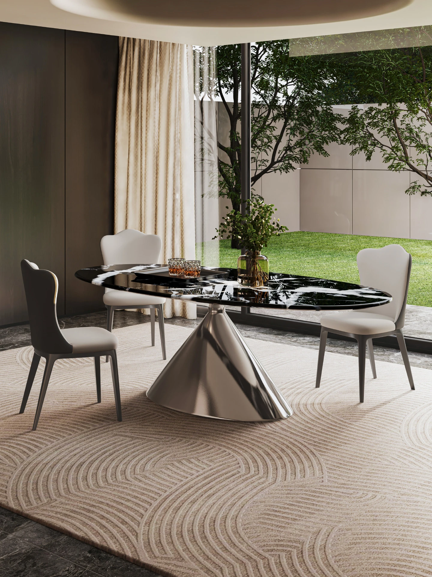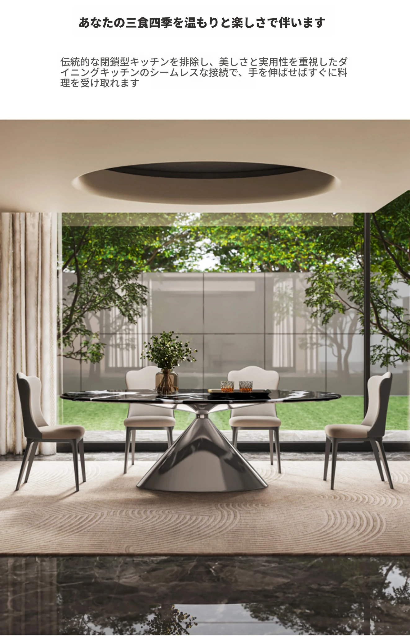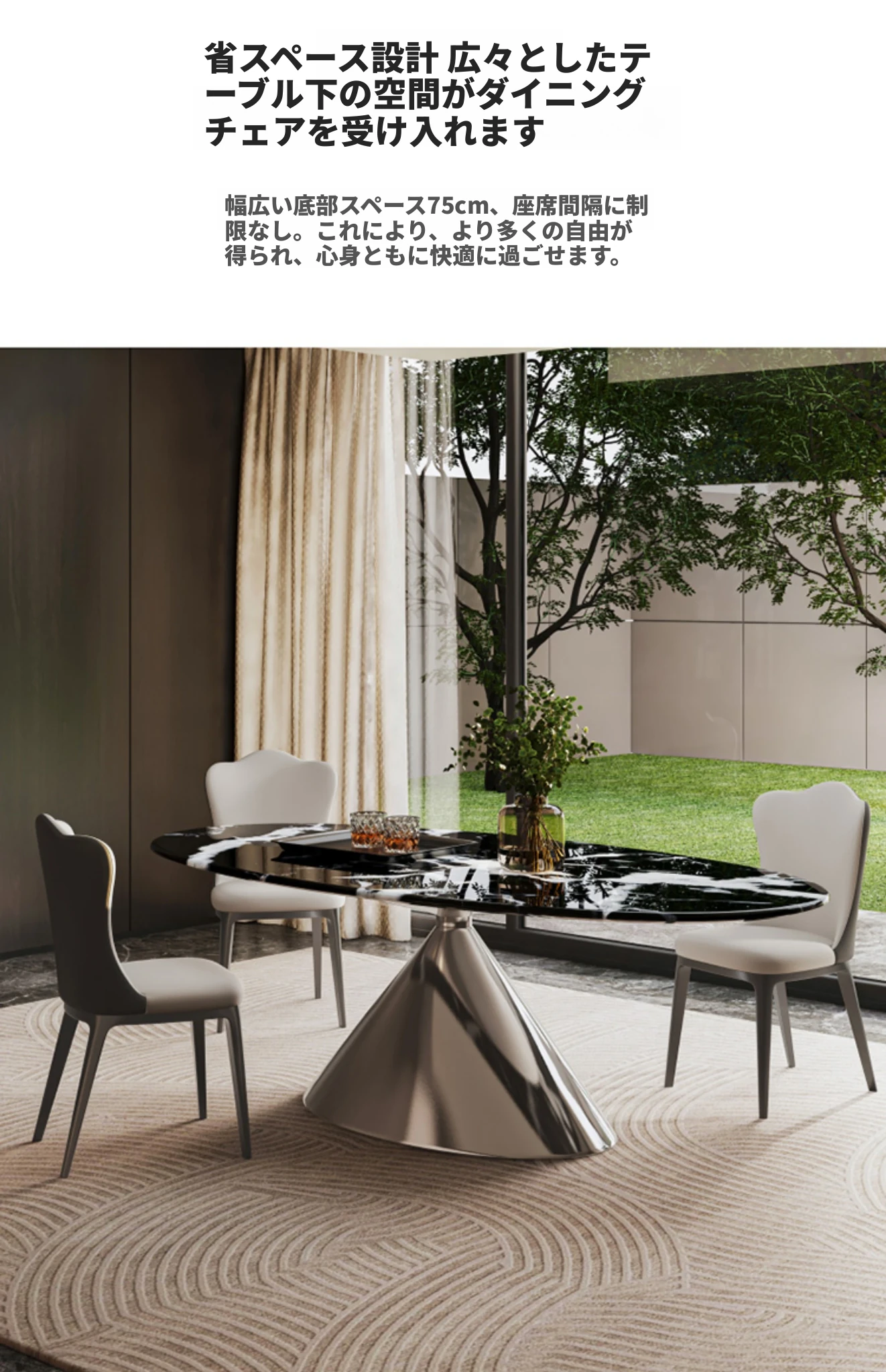 天然ボッガリ黒ラグジュアリー石製イタリアン軽奢高級フラットエレガント楕円形大理石テーブル&チェアセット - 上質な食事空間を演出するアイテムです。