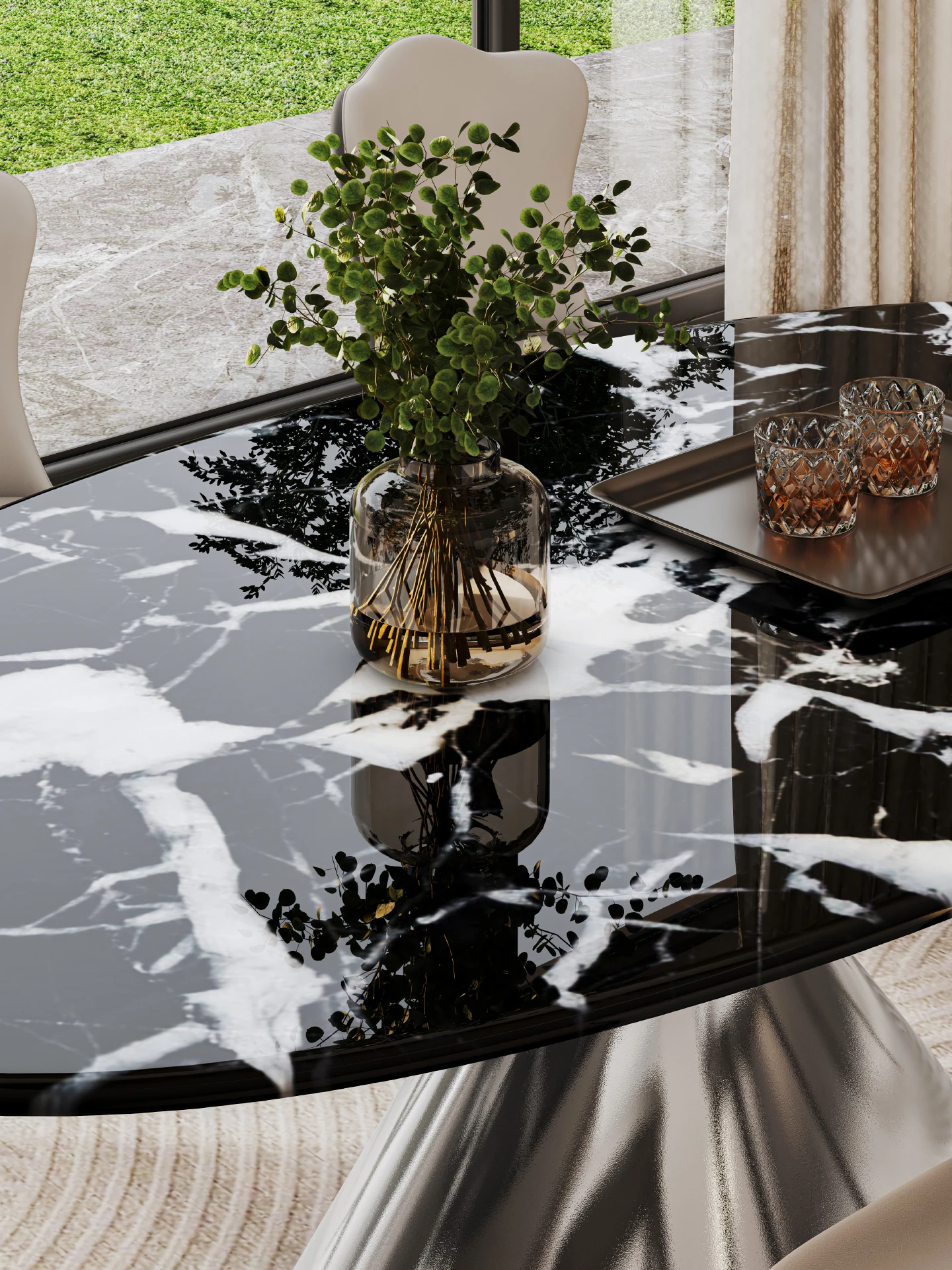 【S級】ブルガリブラック天然ラグジュアリーストーンダイニングテーブル【偽りは罰十】