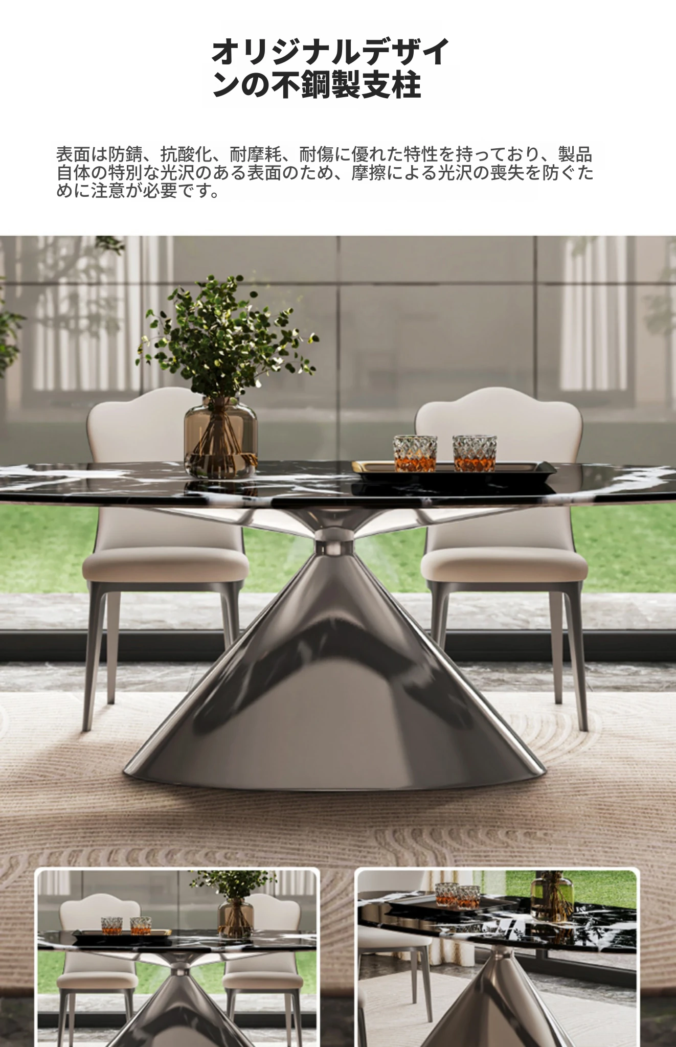 【S級】ブラックローズ天然ラグジュアリーストーンダイニングテーブル【偽りは罰十】