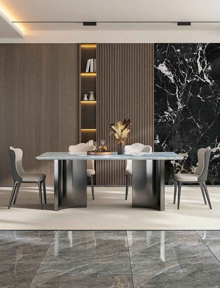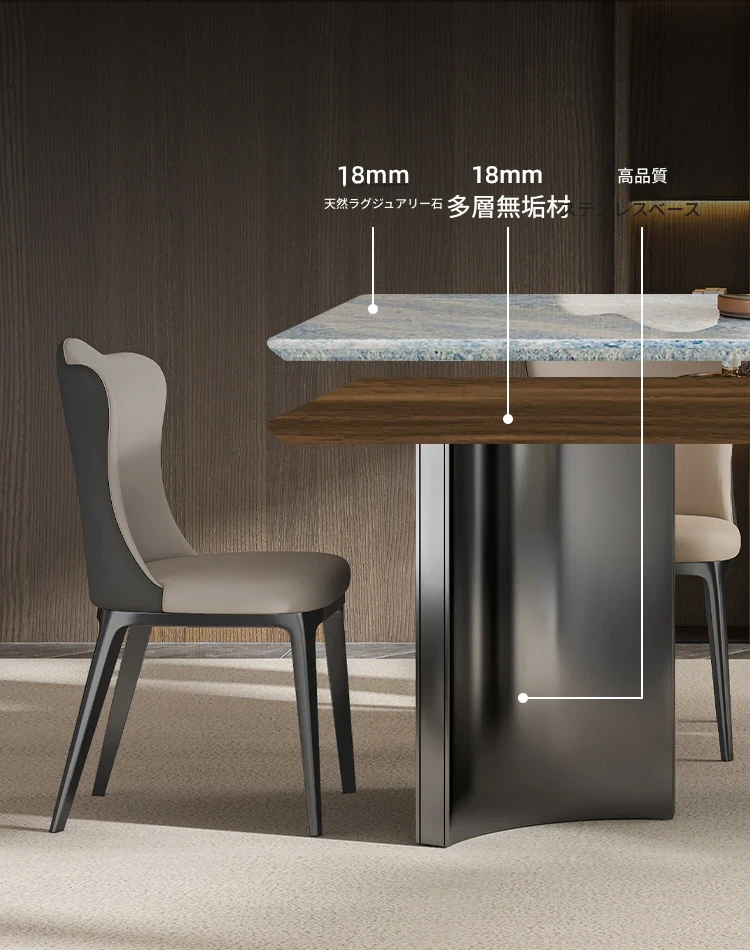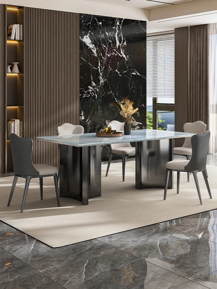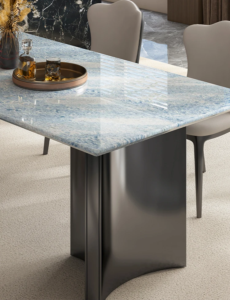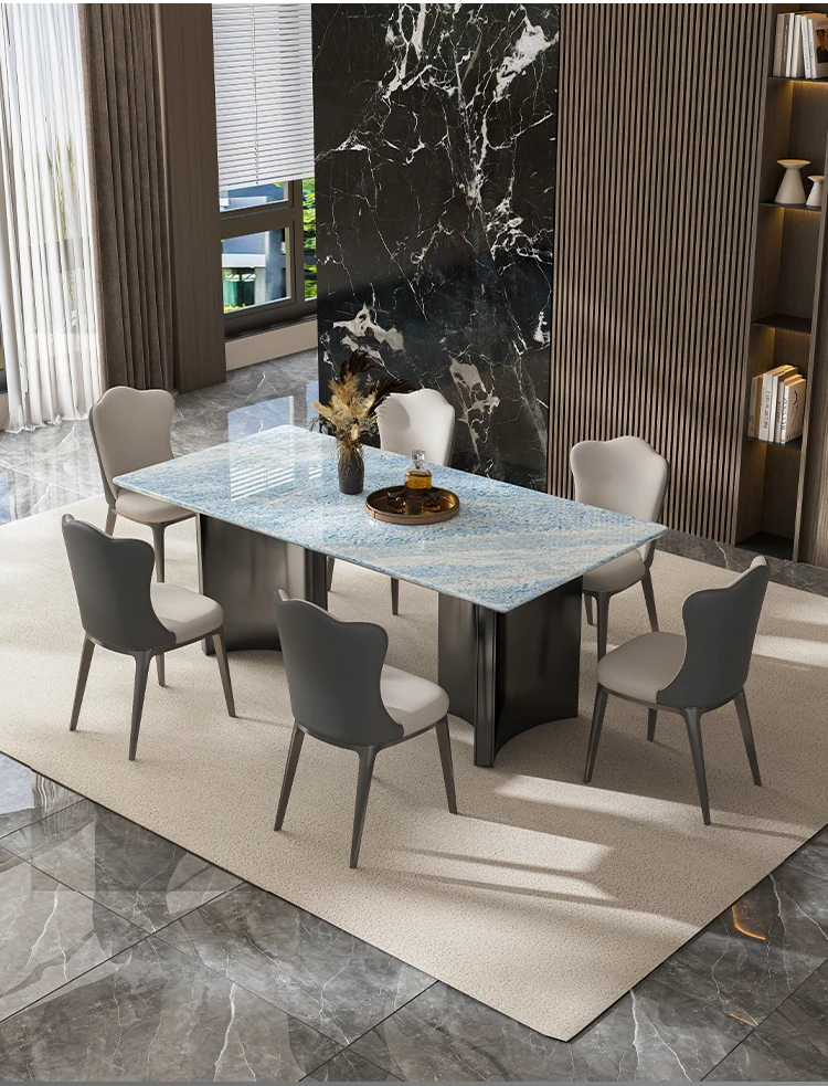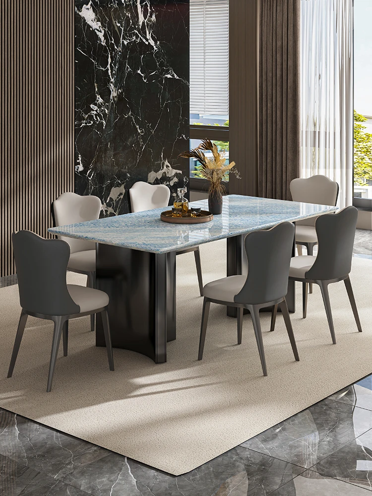 天然ブルークリスタル豪華石テーブル|高級デザインのダイニングテーブルセット|ラグジュアリーな別荘スタイルの長方形大理石テーブル&チェア|上品な食卓を演出します!