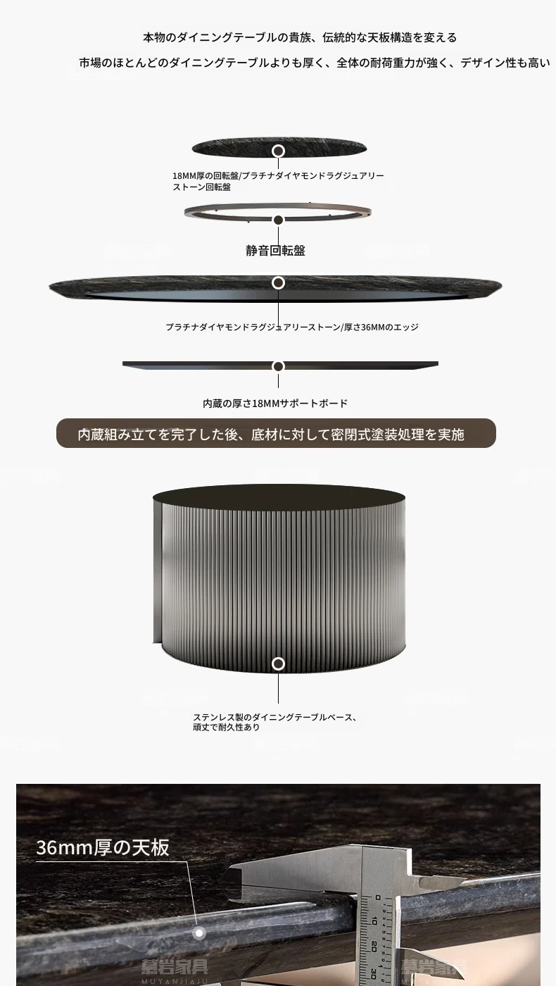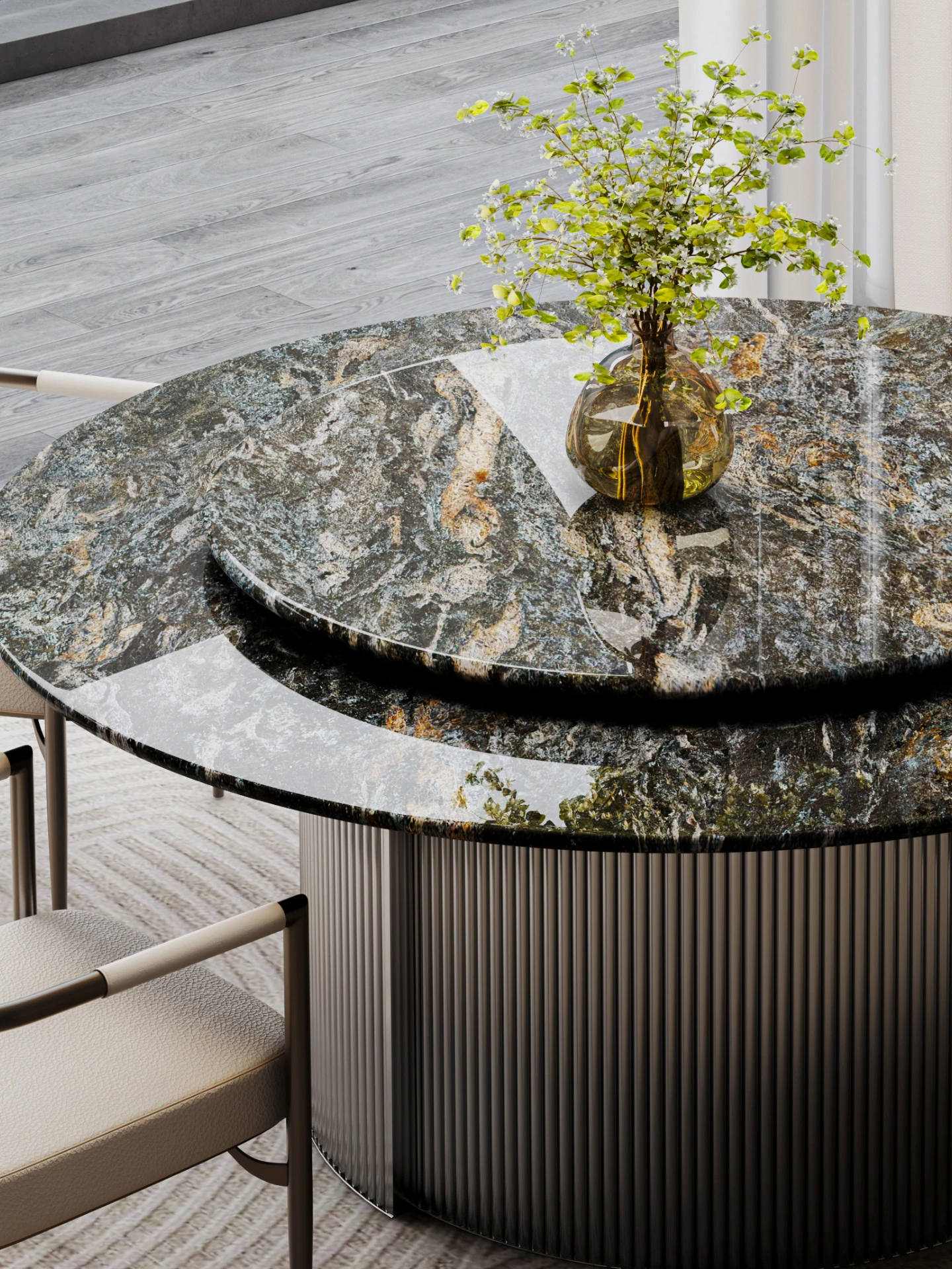 【S級】プラチナダイヤモンド・天然ラグジュアリーストーンラウンドダイニングテーブル