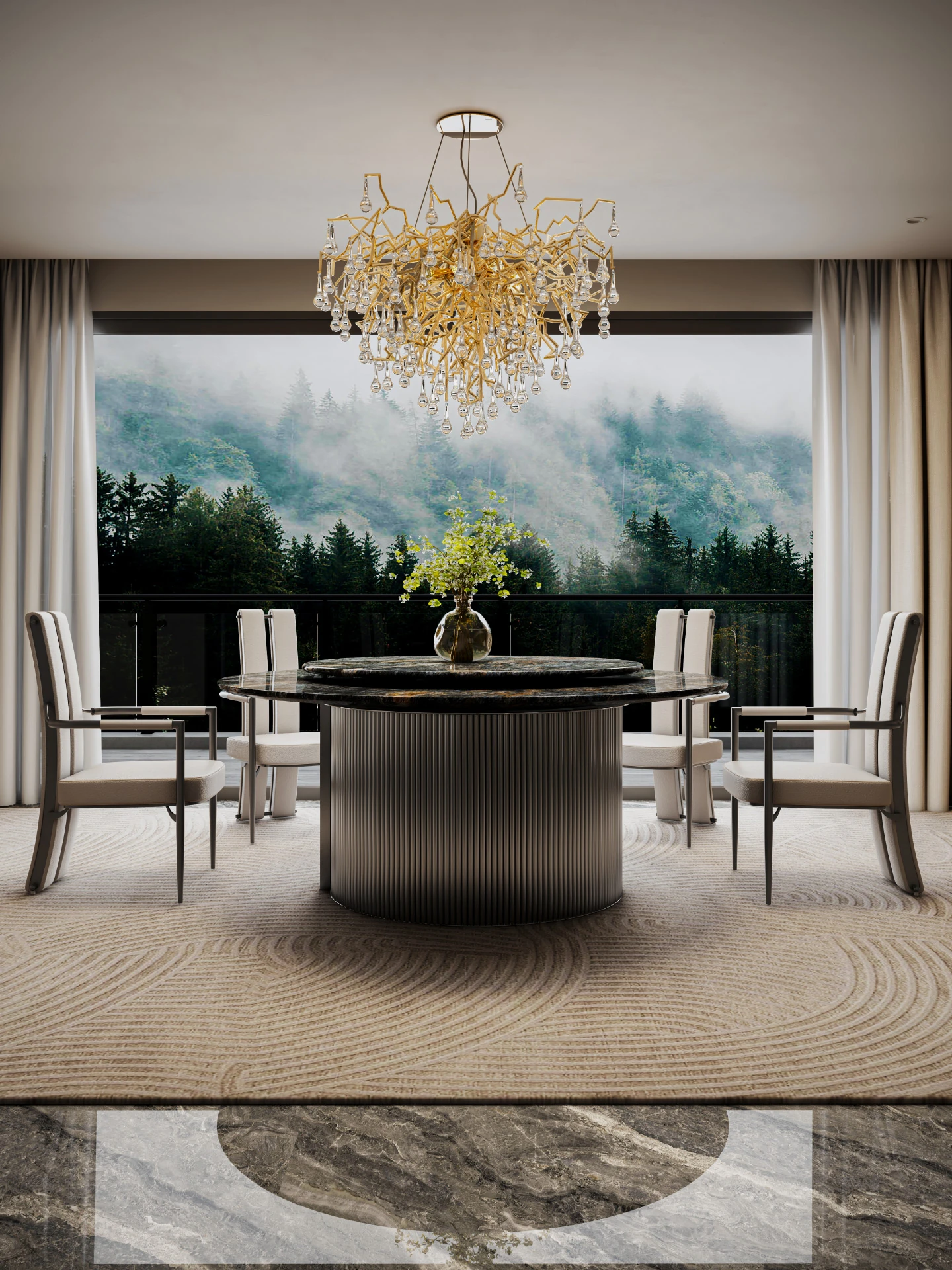 【S級】プラチナダイヤモンド・天然ラグジュアリーストーンラウンドダイニングテーブル+マスターチェア*4