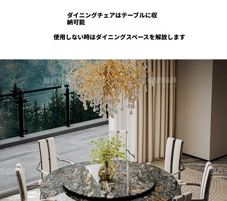 【S級】プラチナダイヤモンド・天然ラグジュアリーストーンラウンドダイニングテーブル【回転盤付き】+マスターチェア*8