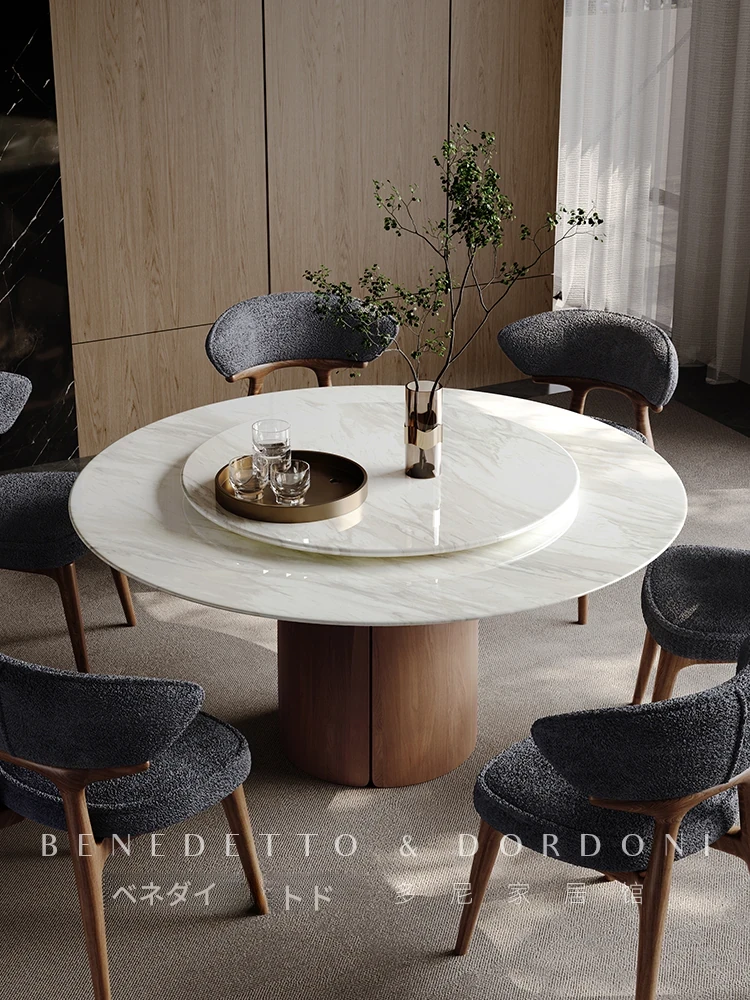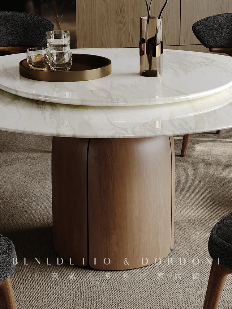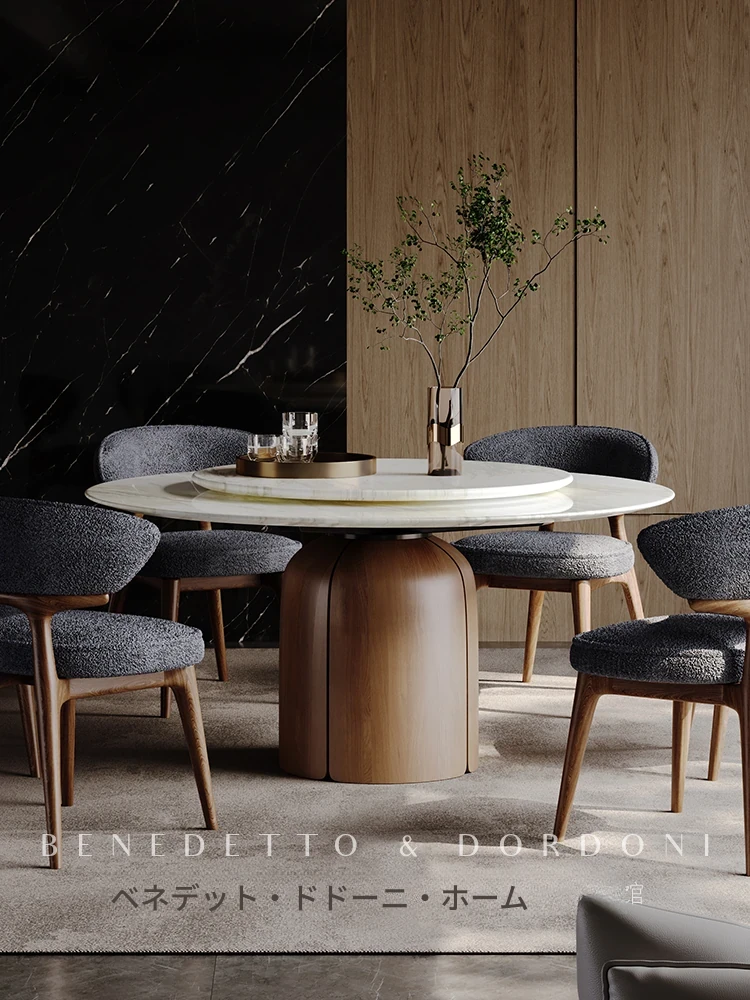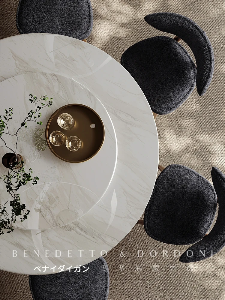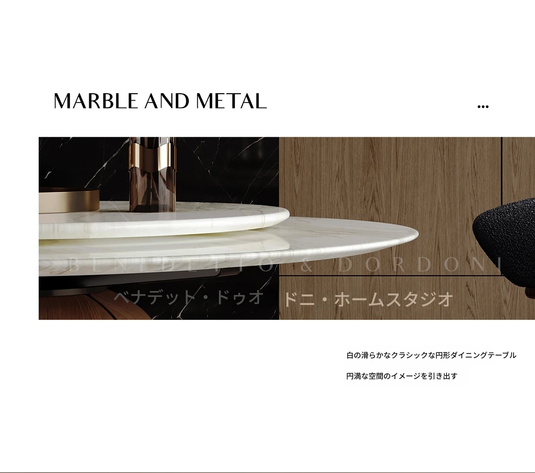 高級感溢れる大理石ダイニングテーブル|モダンなラウンドデザインの転回式|侘寂の美しさを体現した無垢材使用|イタリアンミニマリズムの極み、あなたの食卓を格上げする特別な一品!