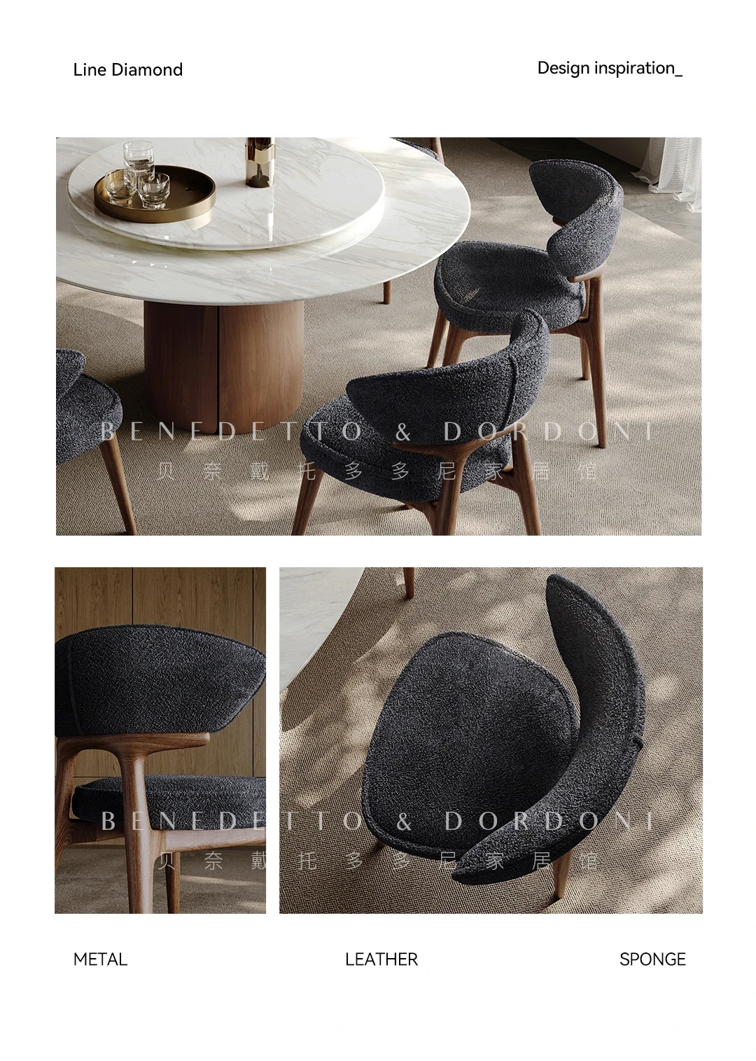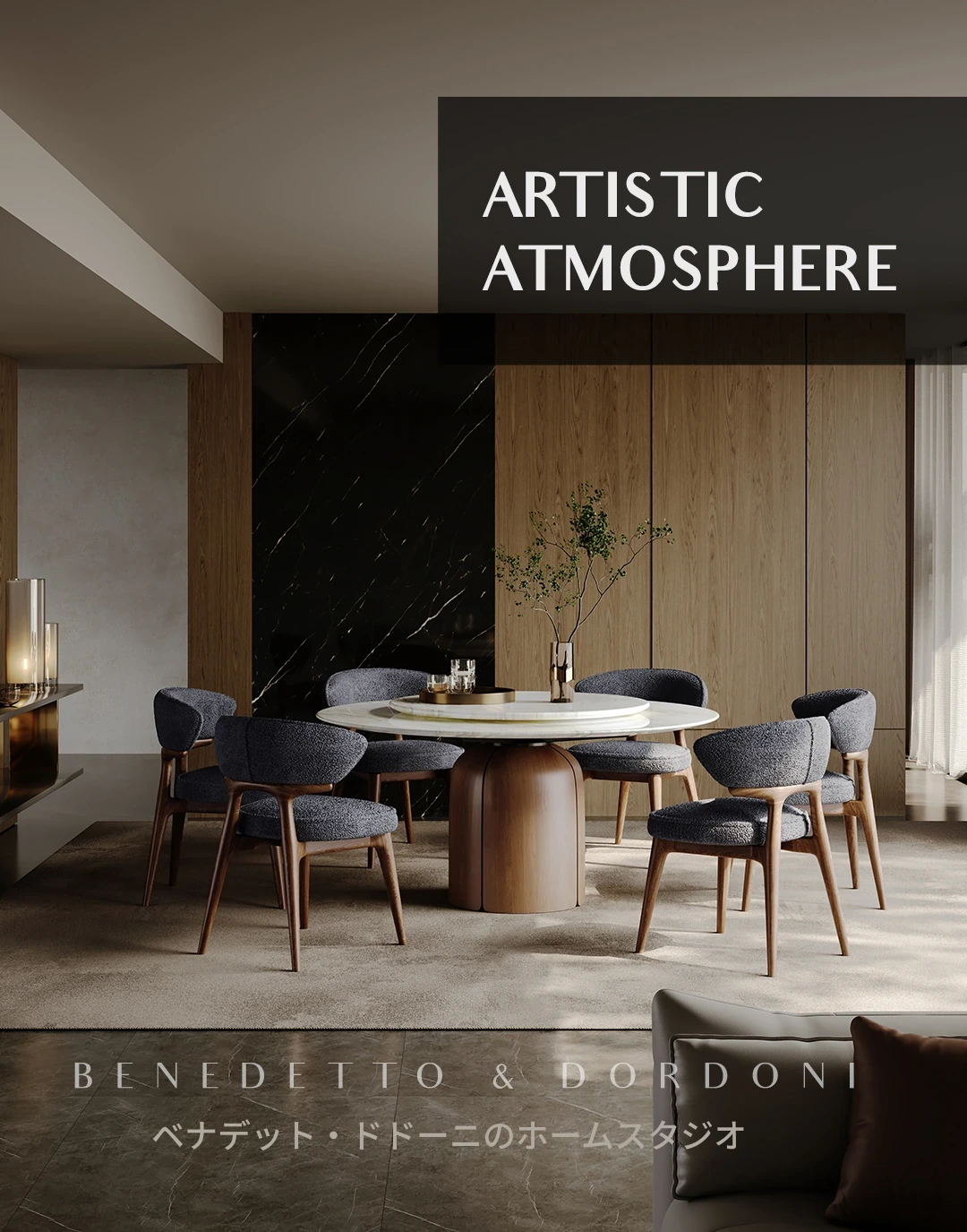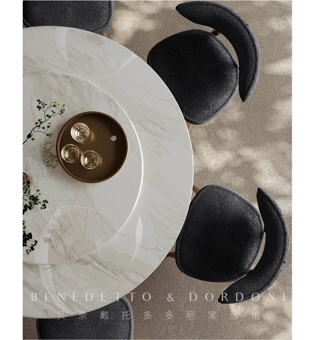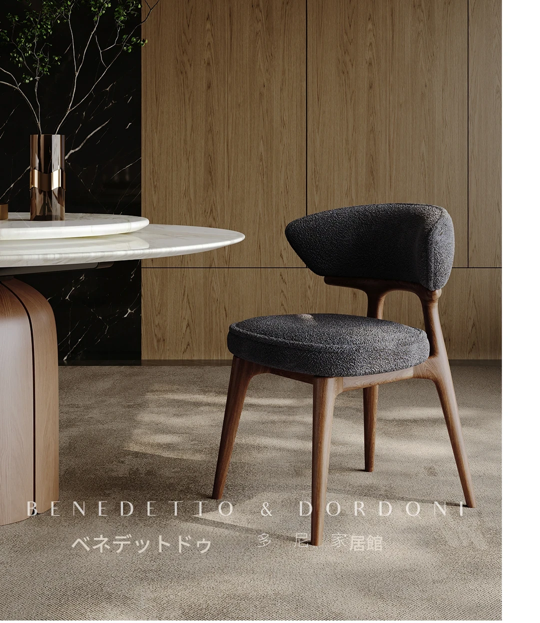 高級感溢れる大理石ダイニングテーブル|モダンなラウンドデザインの転回式|侘寂の美しさを体現した無垢材使用|イタリアンミニマリズムの極み、あなたの食卓を格上げする特別な一品!