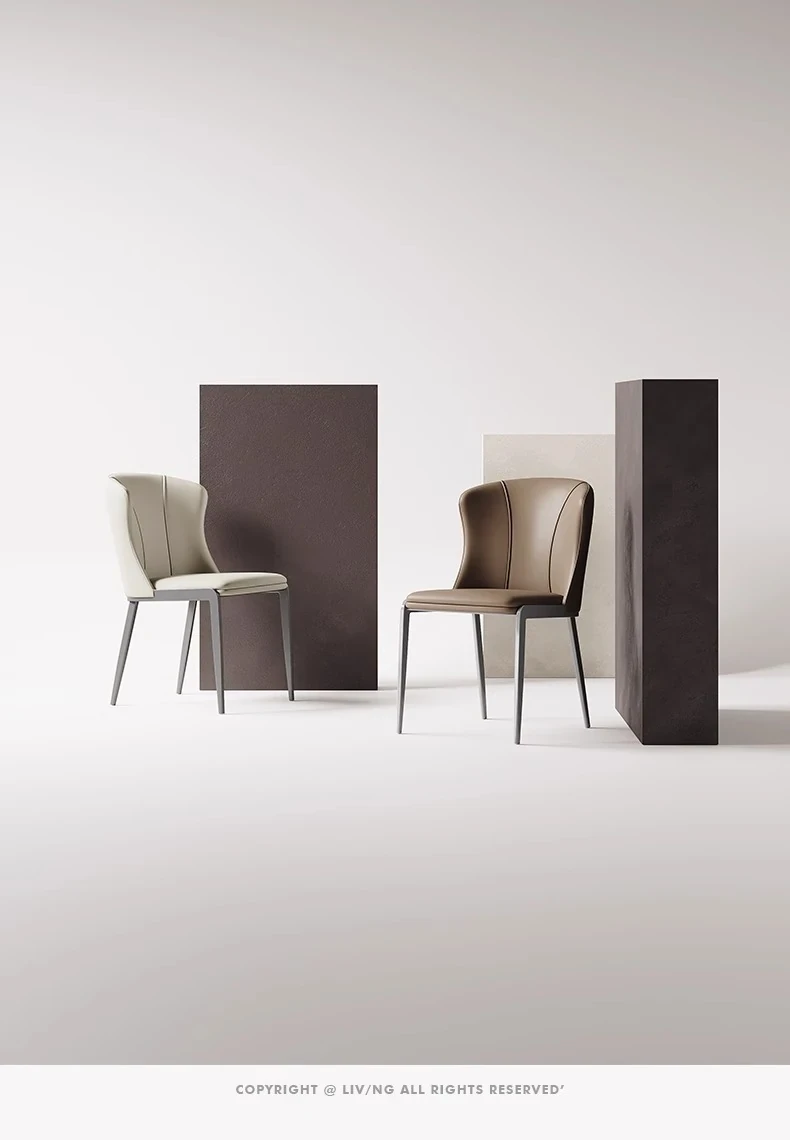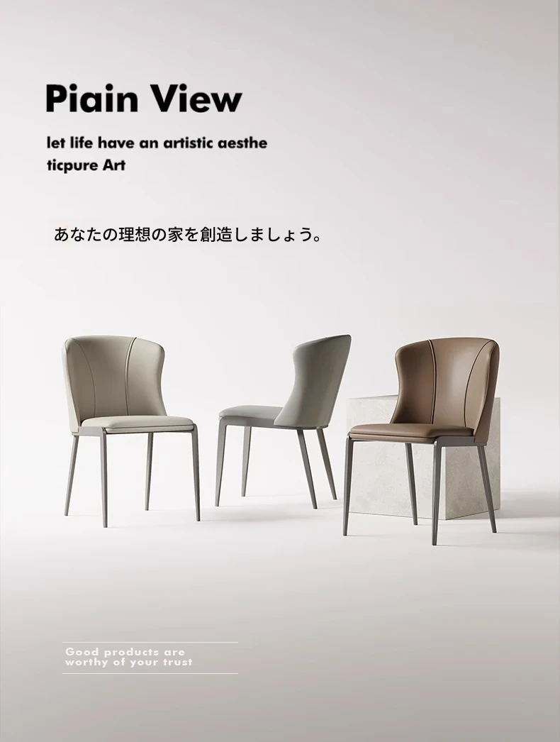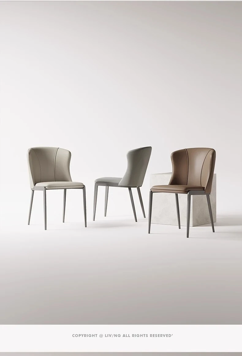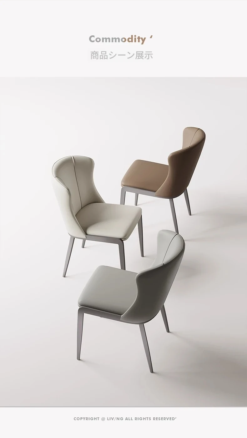 シンプルでモダンなデザインの本革ダイニングチェア - 北欧スタイルの軽やかな高級感を演出するイタリアンミニマリズムの背もたれ付き椅子。あなたの食卓をスタイリッシュに彩ります!
