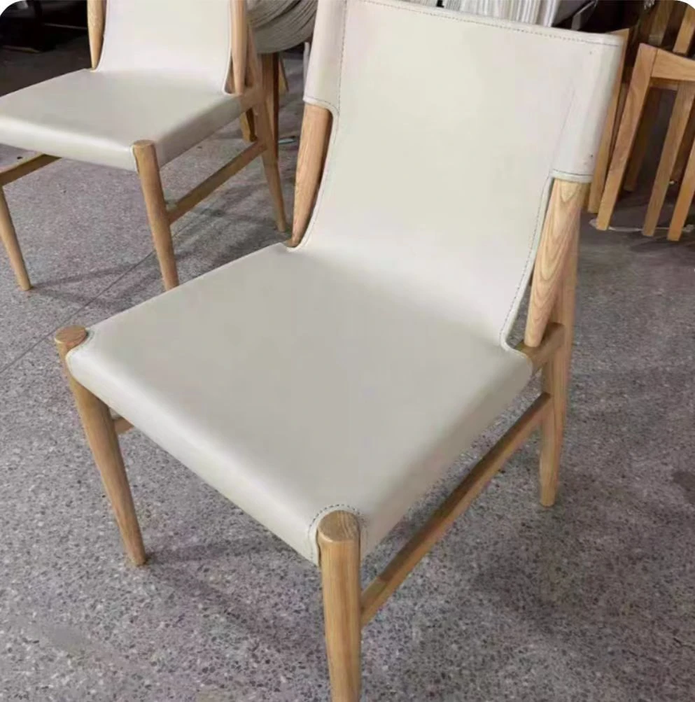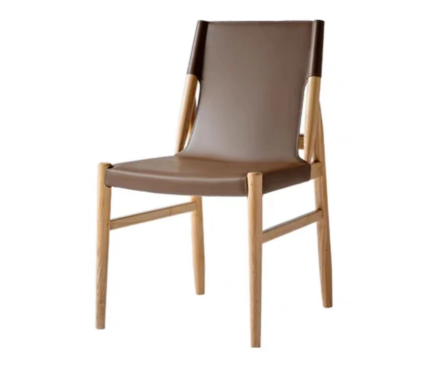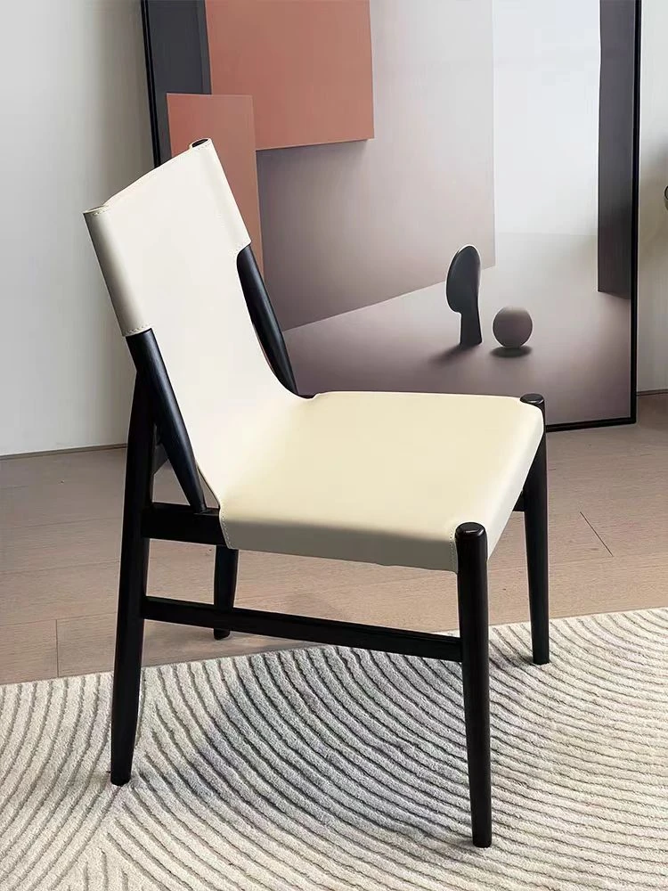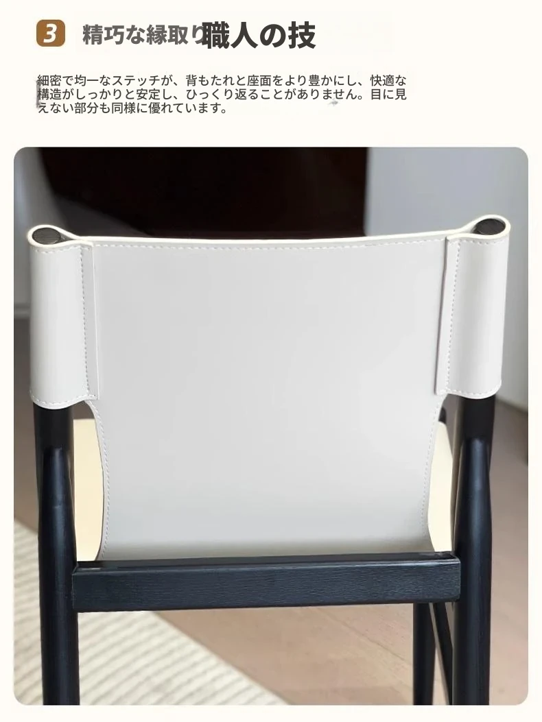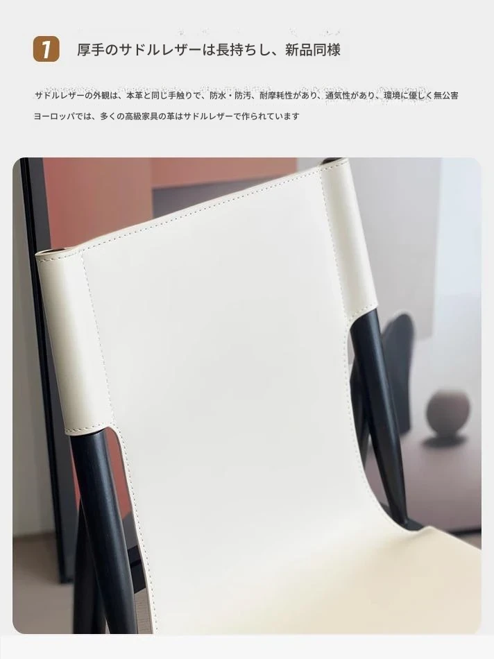 モダンなサドルレザーのダイニングチェア、シンプルで贅沢なデザイン!家庭用に最適な背もたれ付き、高級ホテルや会議にもぴったりなリラックスチェア。インフルエンサーも注目のスタイリッシュな椅子です。