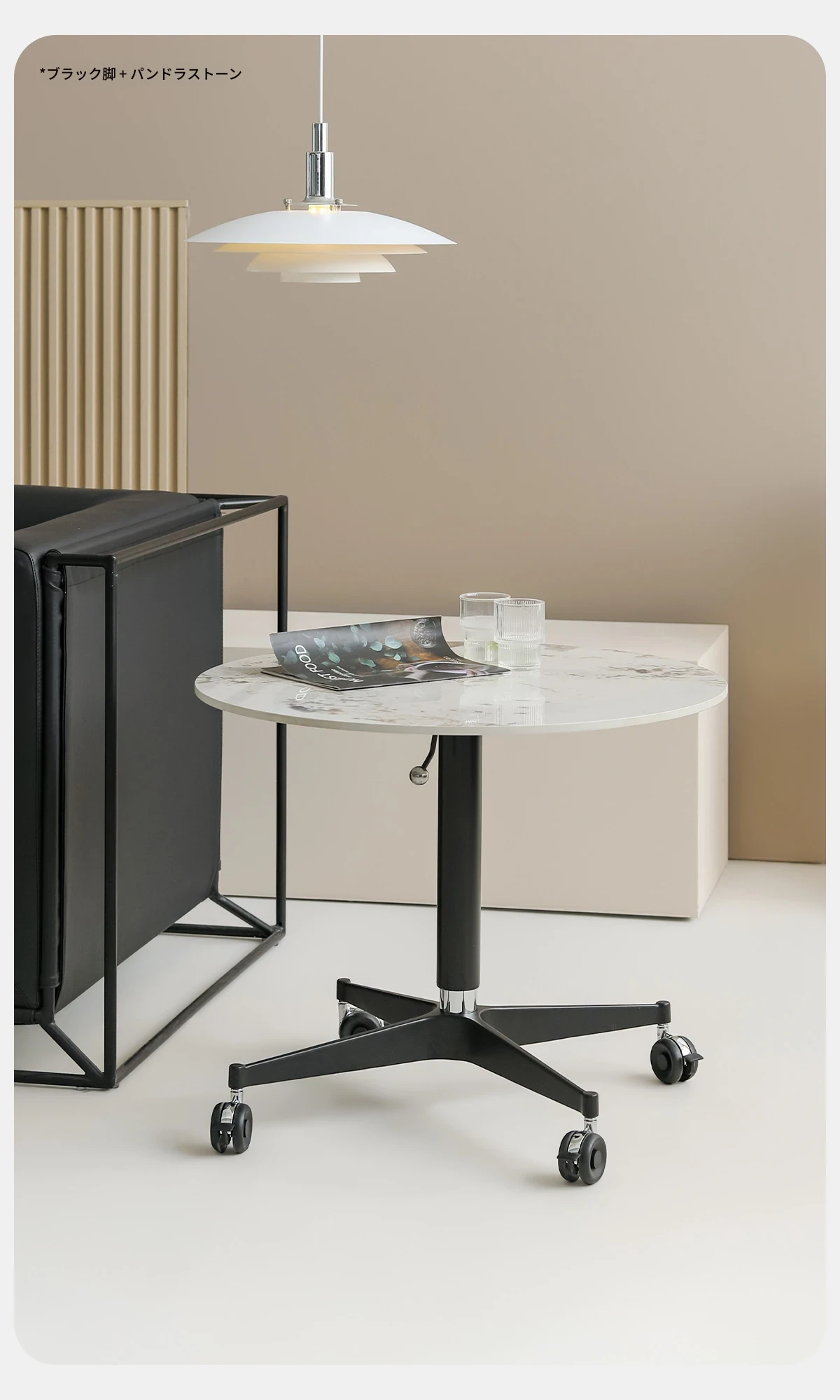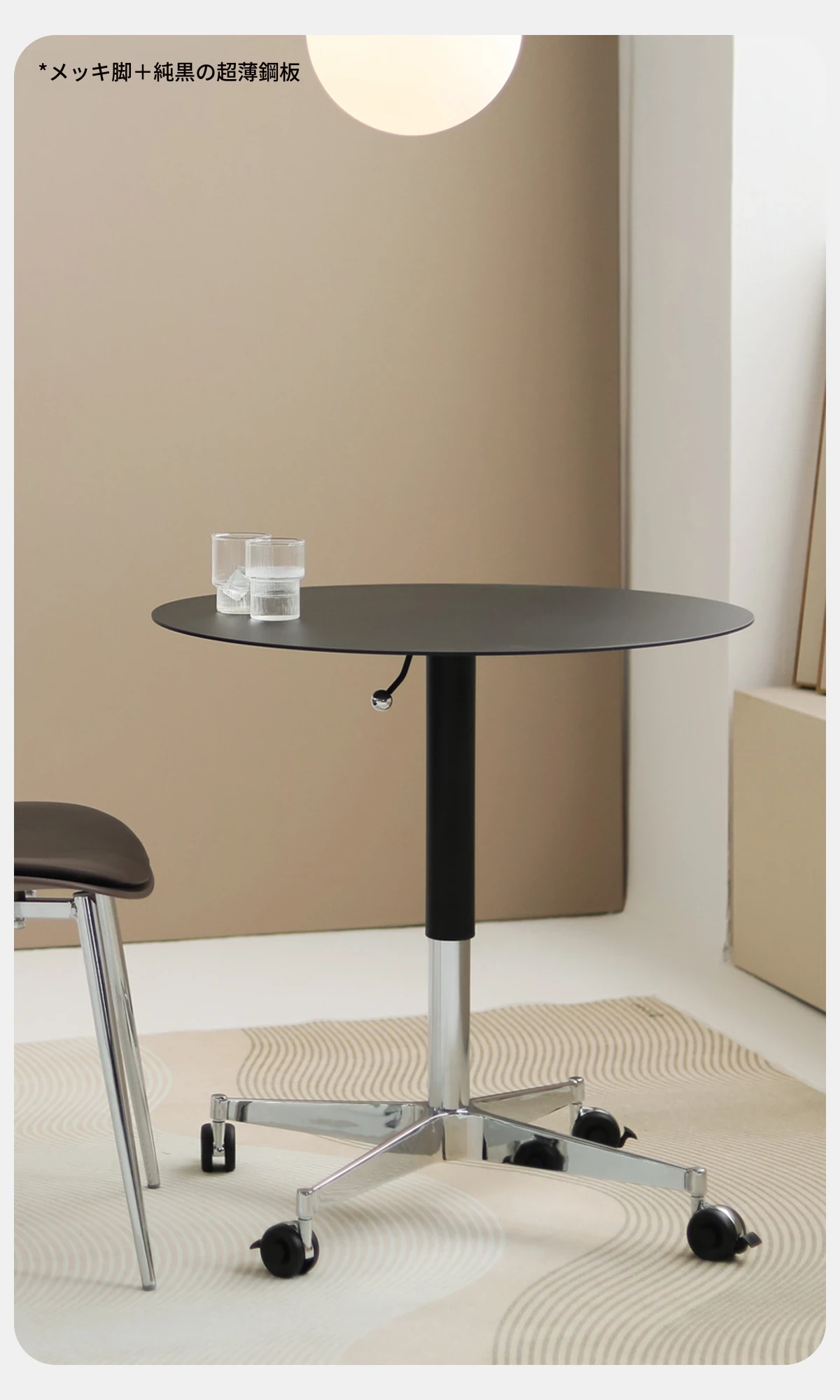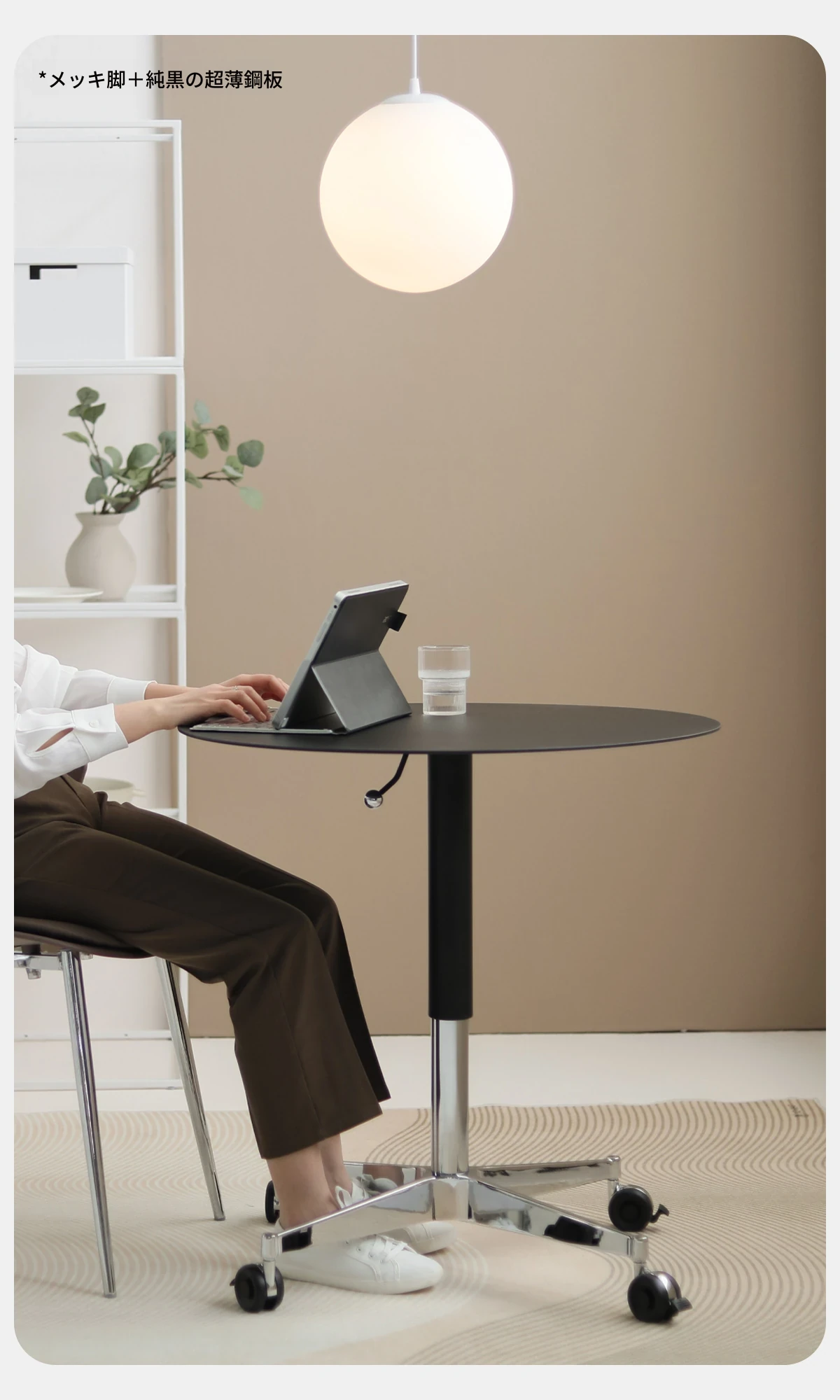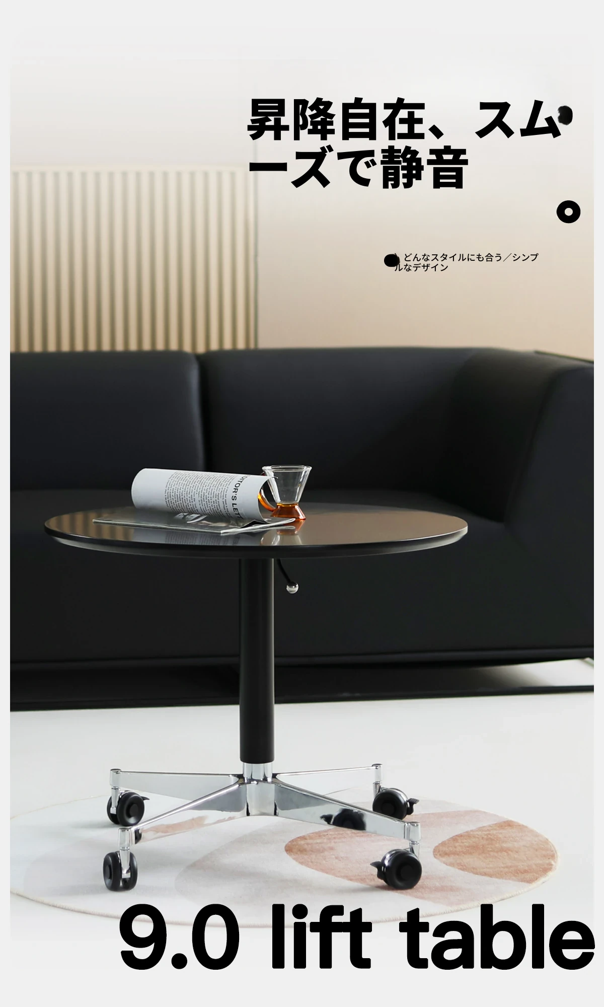 シンプルでモダンな昇降式ラウンドテーブル|多機能コーヒーテーブル・サイドテーブル|バルコニーやリビングに最適!お洒落で使いやすいデザインで、どんな空間にもフィットします。