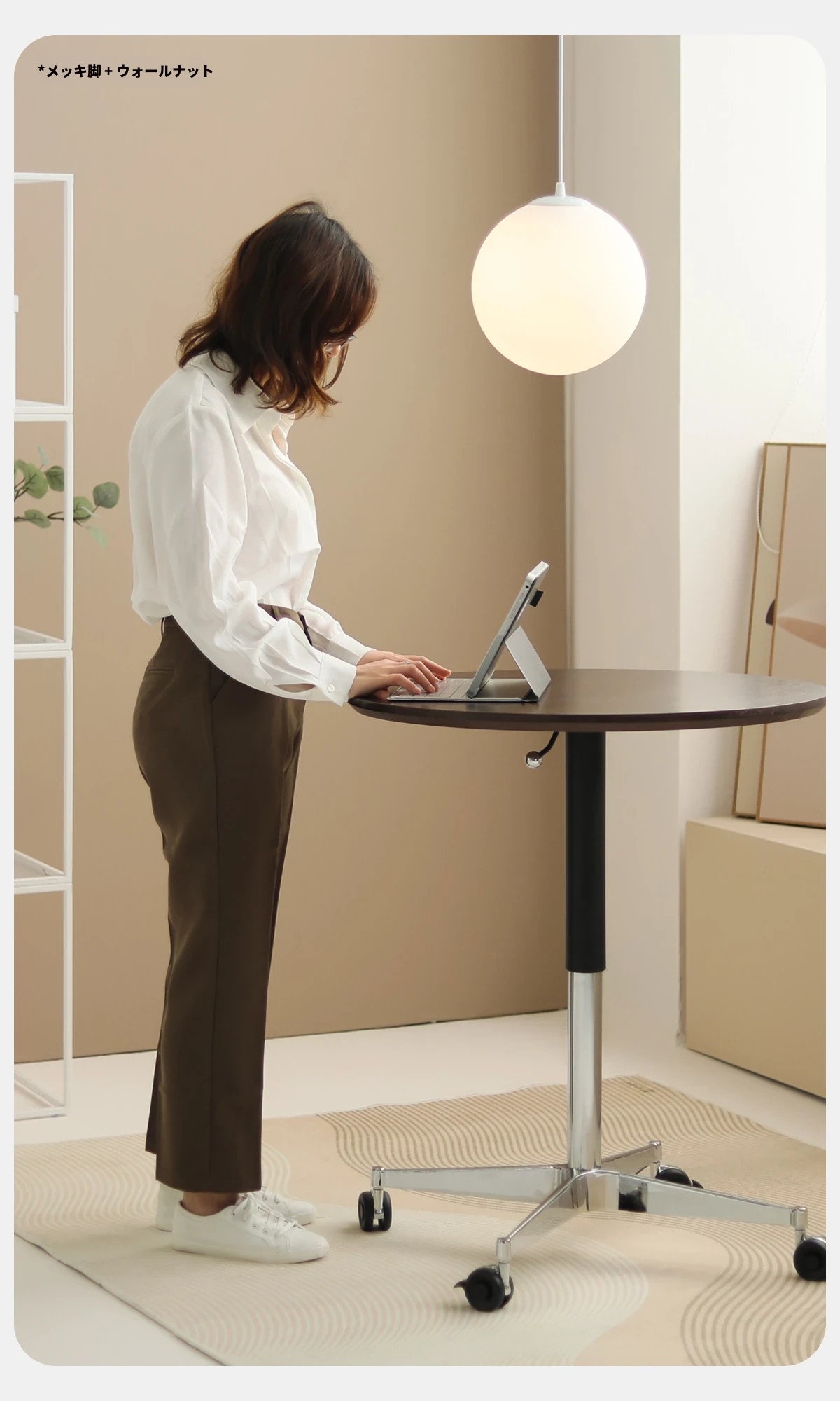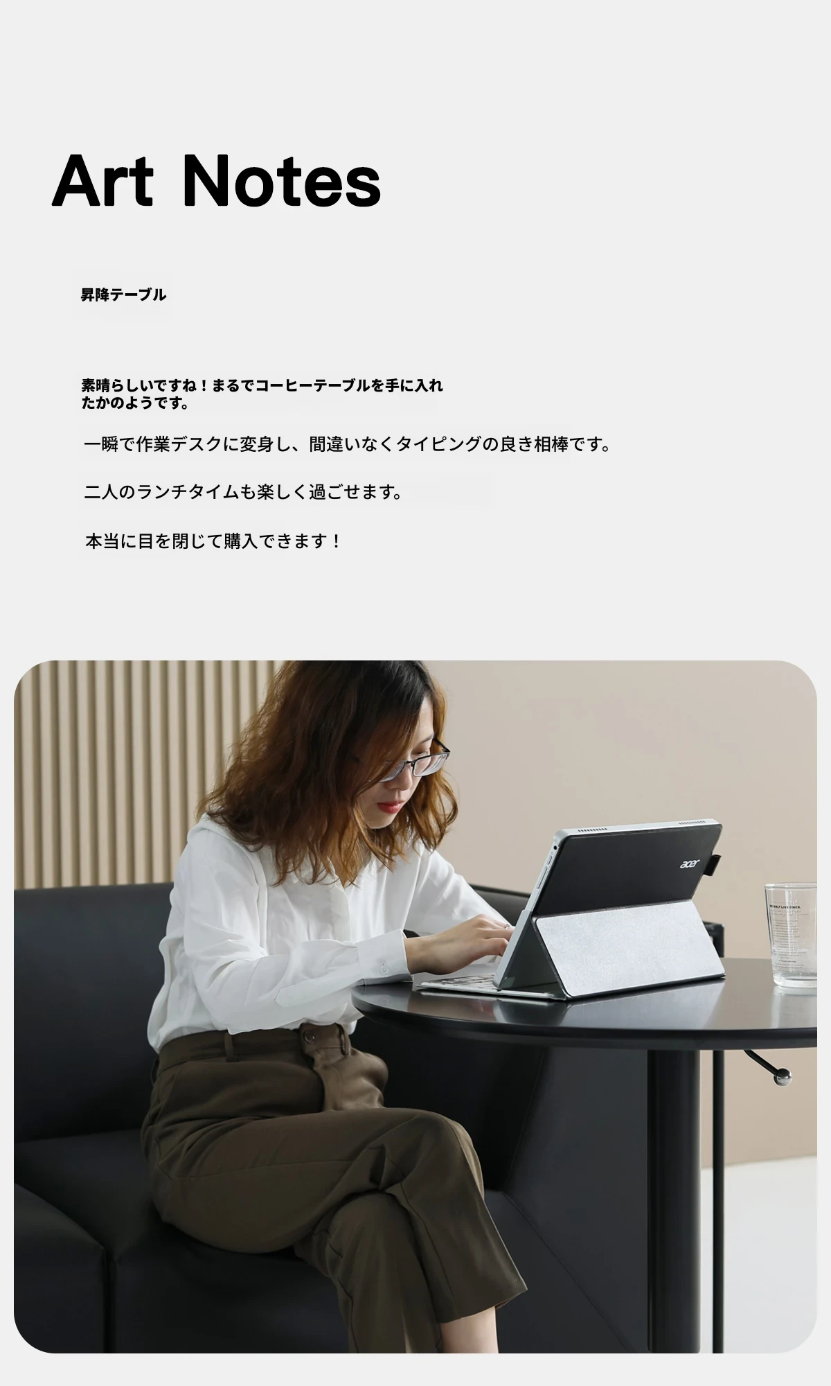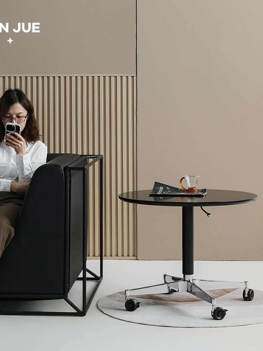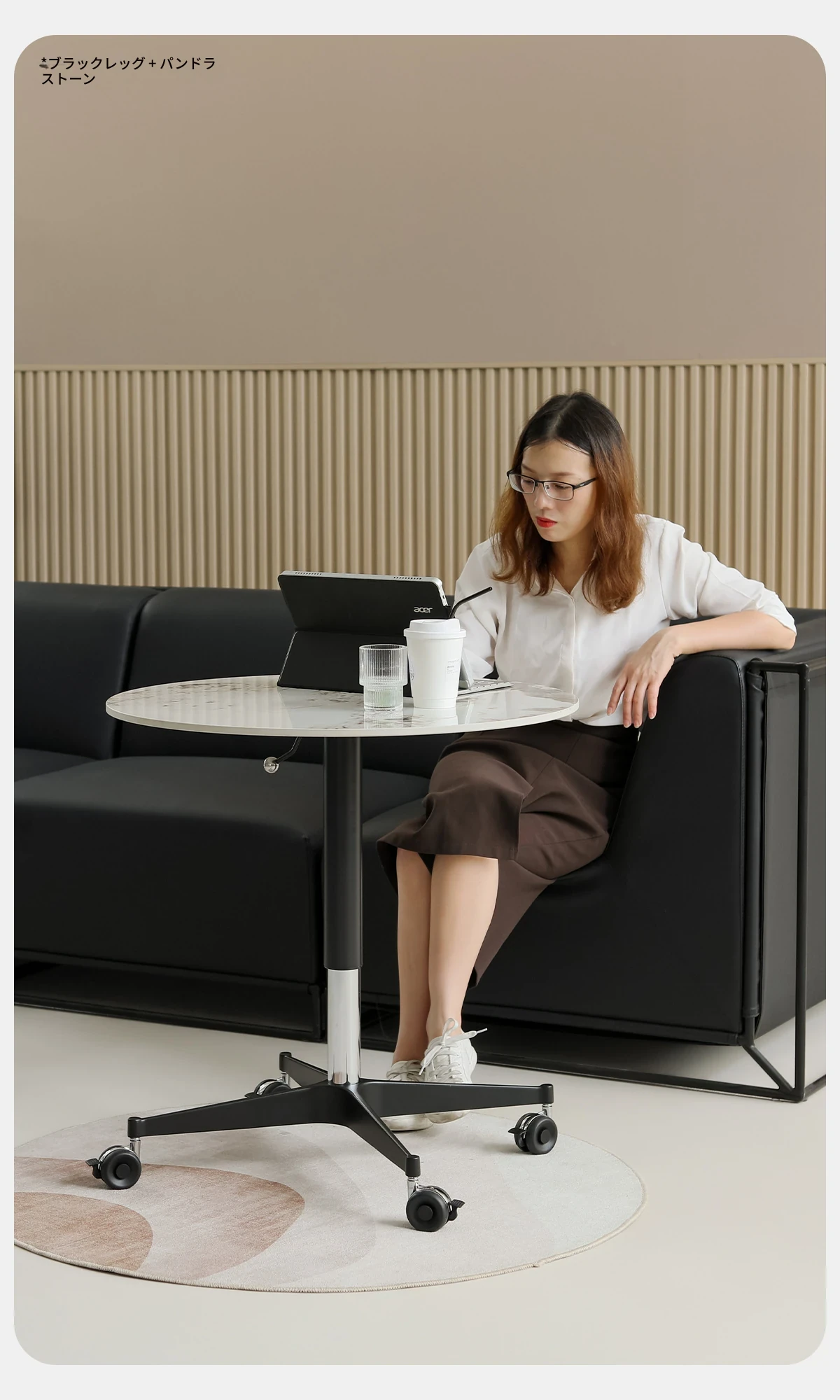 シンプルでモダンな昇降式ラウンドテーブル|多機能コーヒーテーブル・サイドテーブル|バルコニーやリビングに最適!お洒落で使いやすいデザインで、どんな空間にもフィットします。