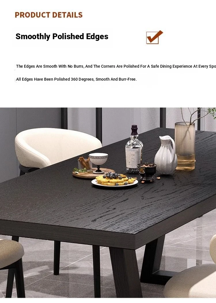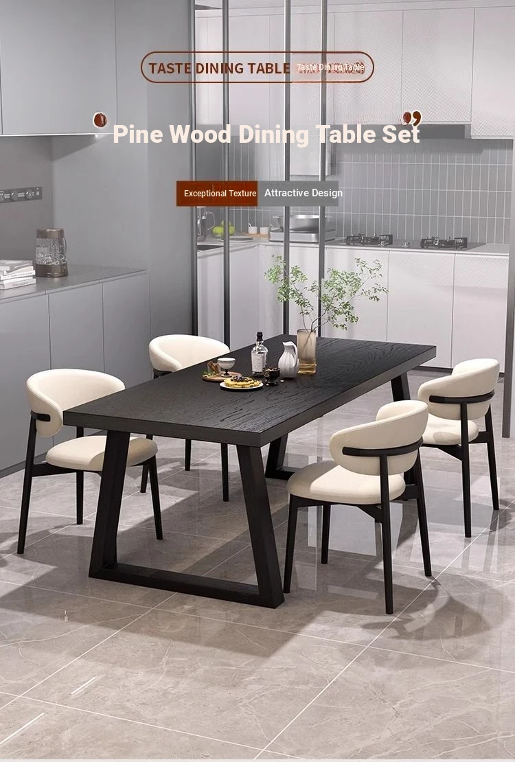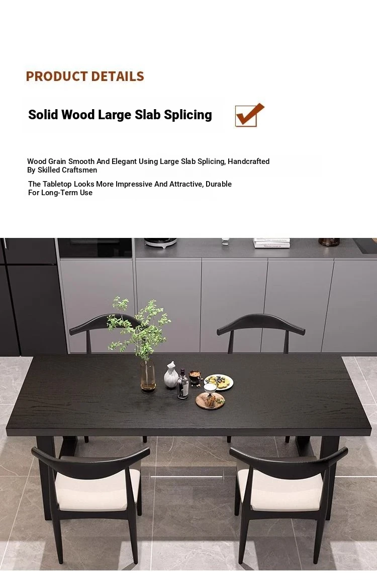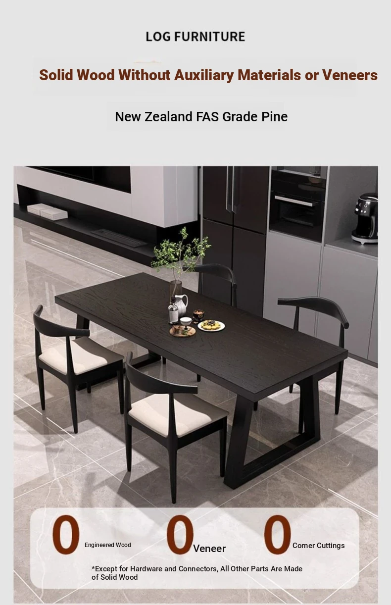 Modern Minimalist Carbonized Black Solid Wood Dining and Office Table Set - Rectangular Design for Home Use, Perfect for Dining or Work Spaces