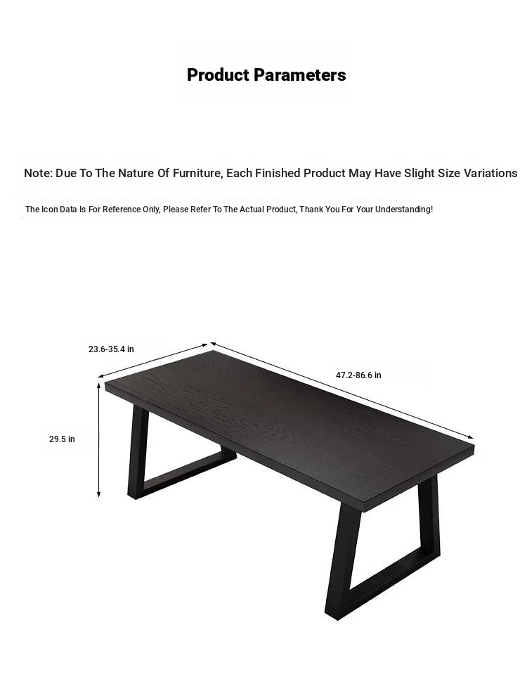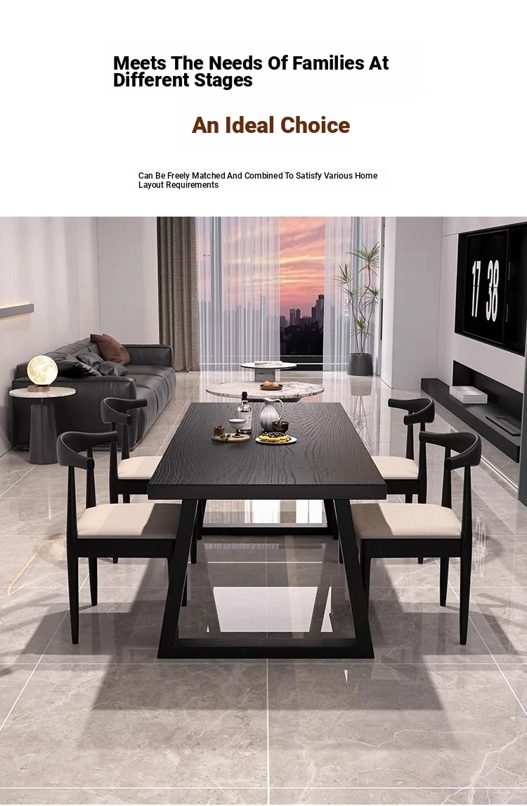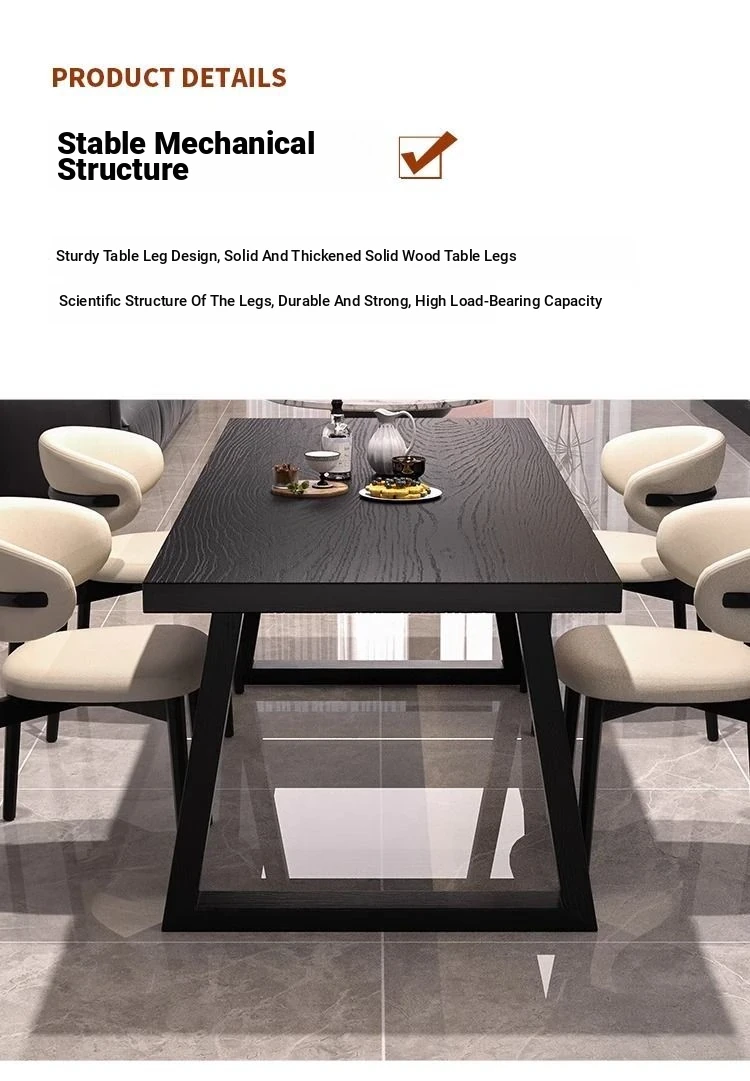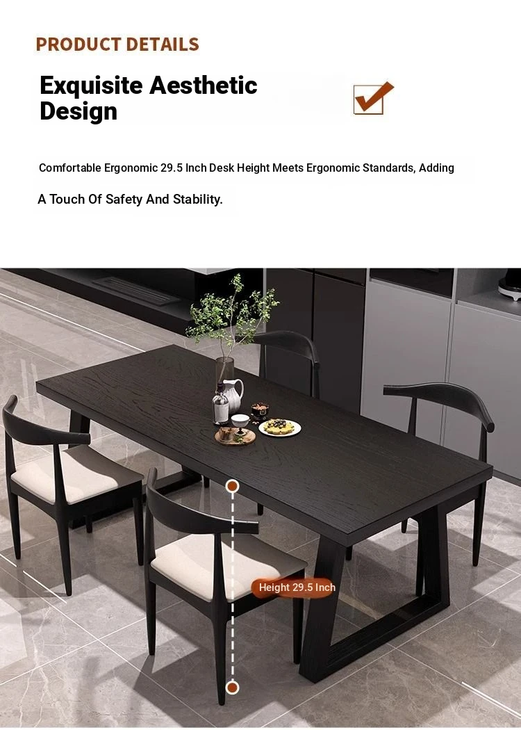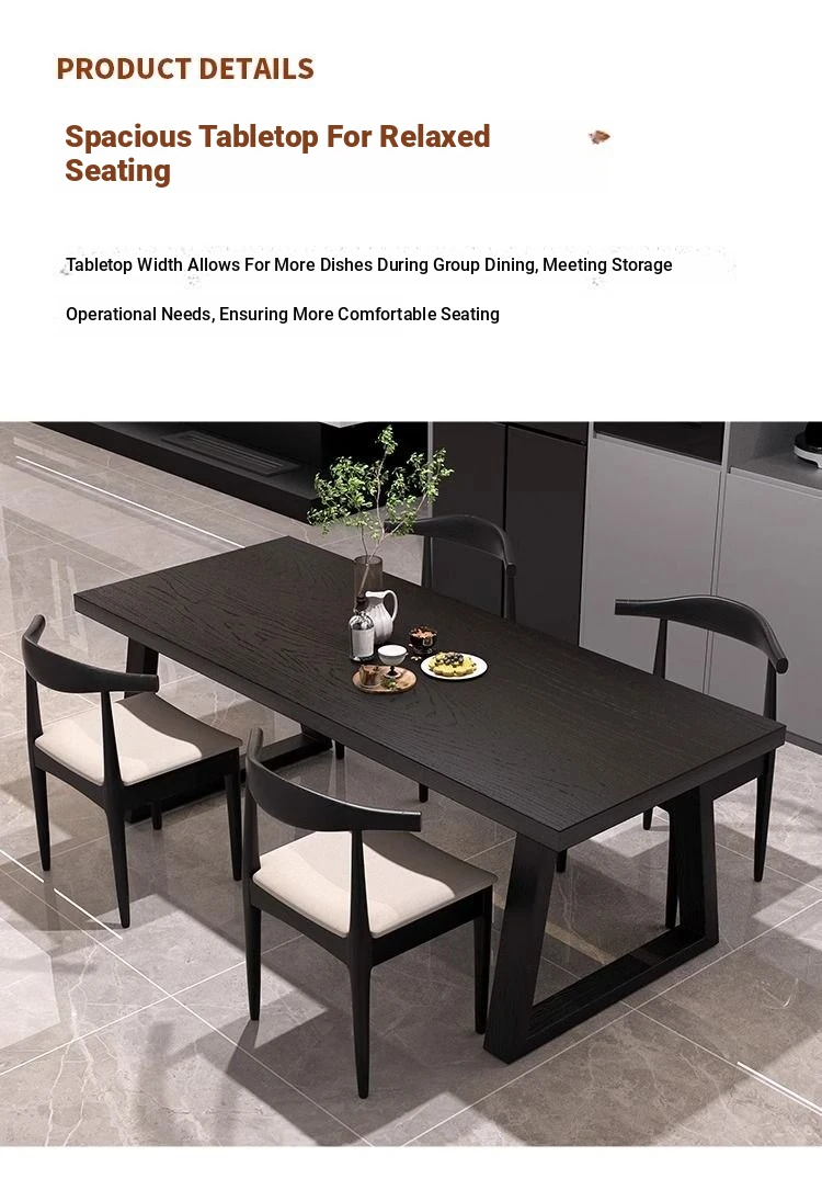 Modern Minimalist Carbonized Black Solid Wood Dining and Office Table Set - Rectangular Design for Home Use, Perfect for Dining or Work Spaces
