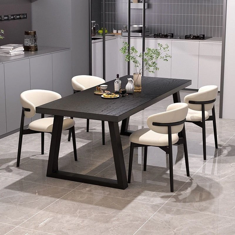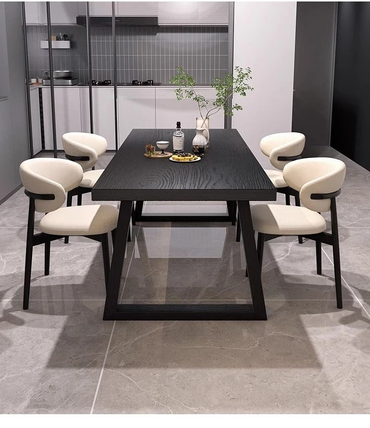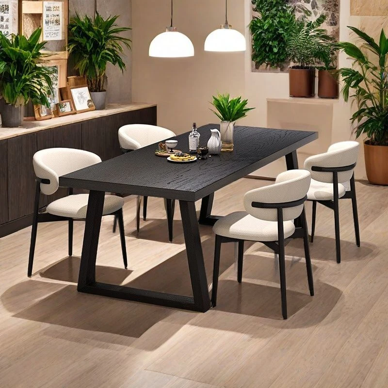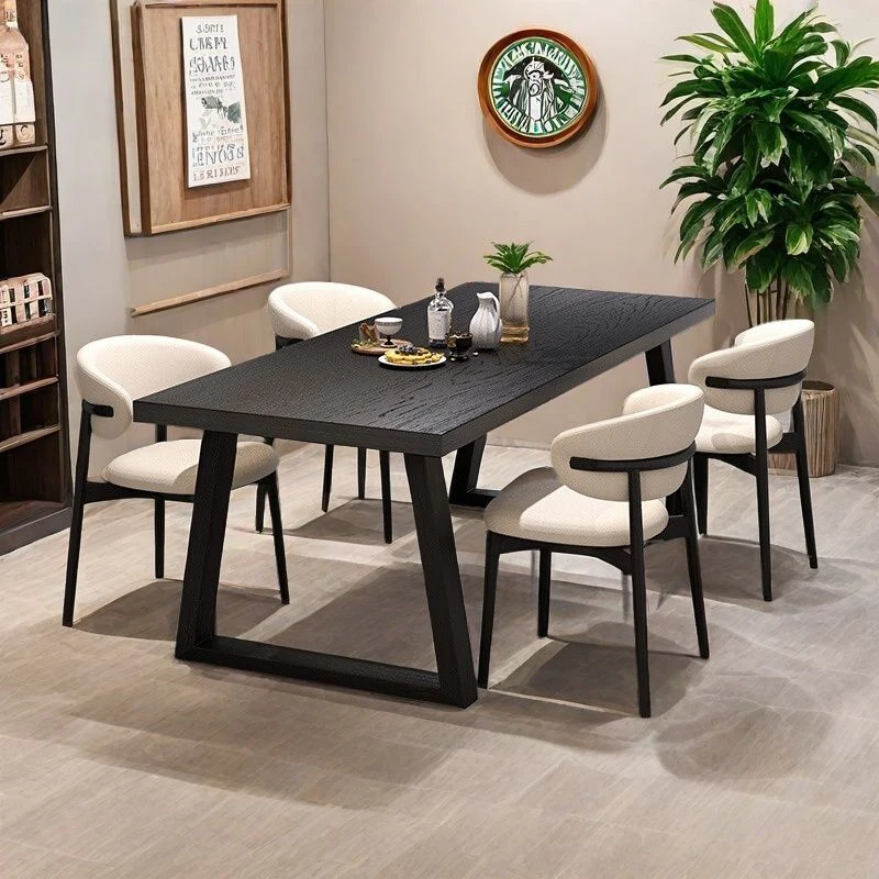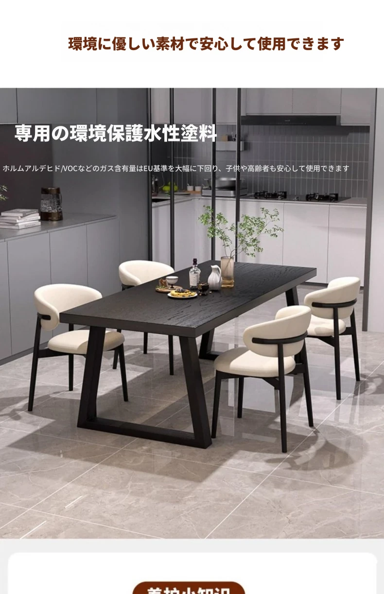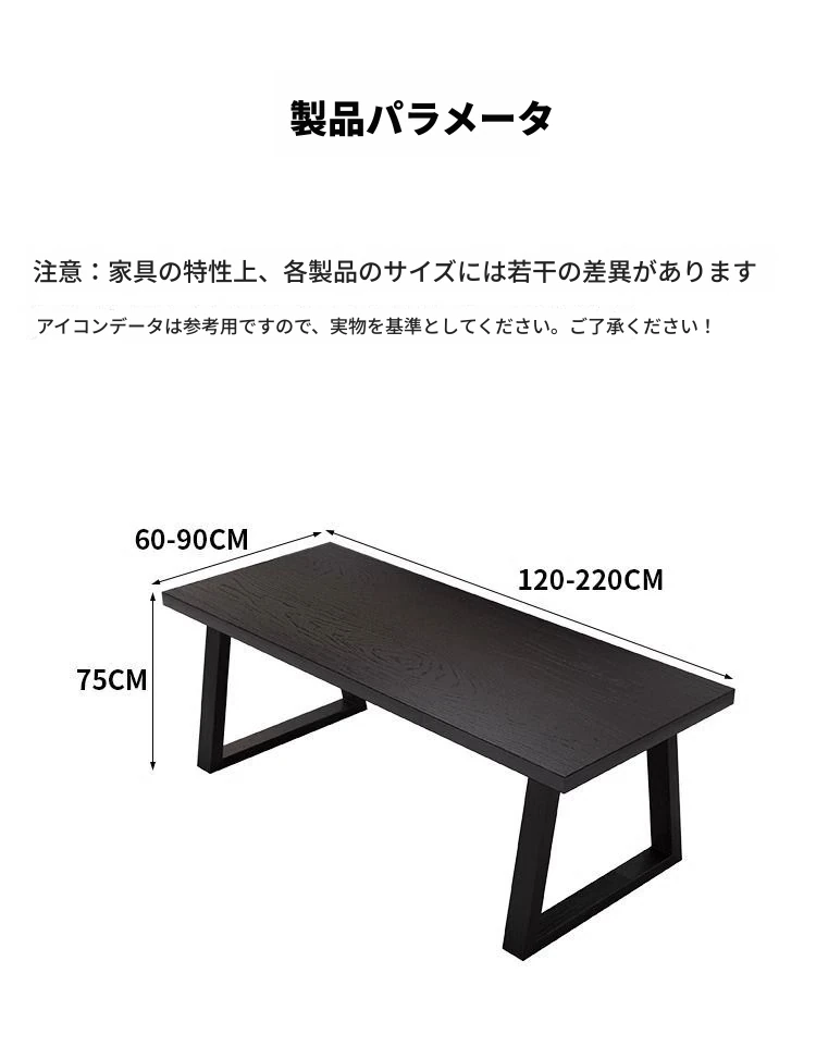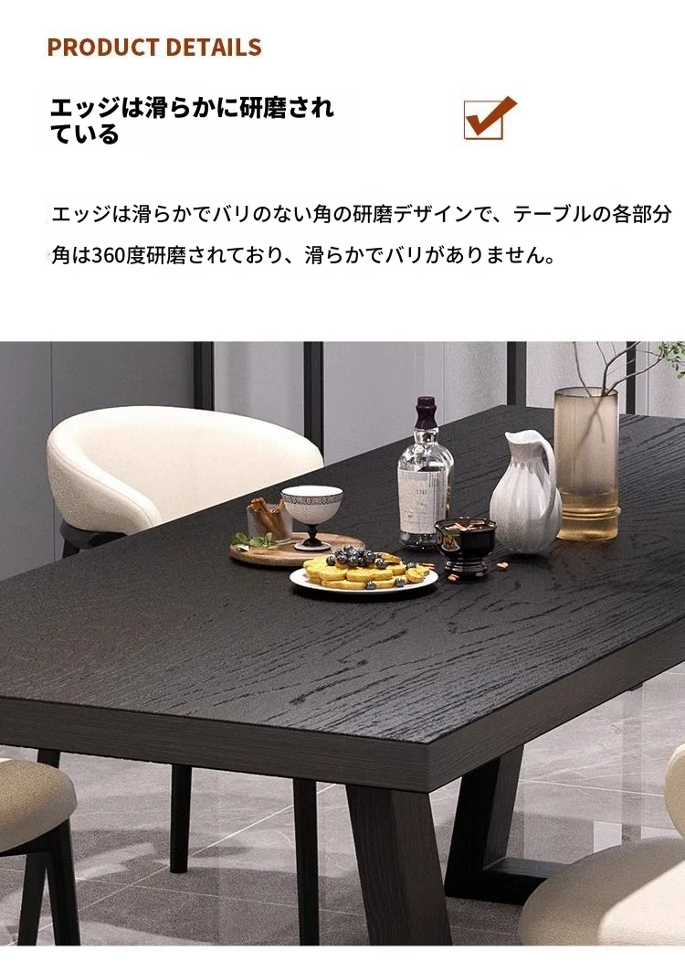 シンプルでスタイリッシュな炭化ブラック無垢材ダイニングテーブル&デスクセット - 現代的な長方形デザインで、家庭やオフィスに最適!快適な食事と作業空間を演出します。
