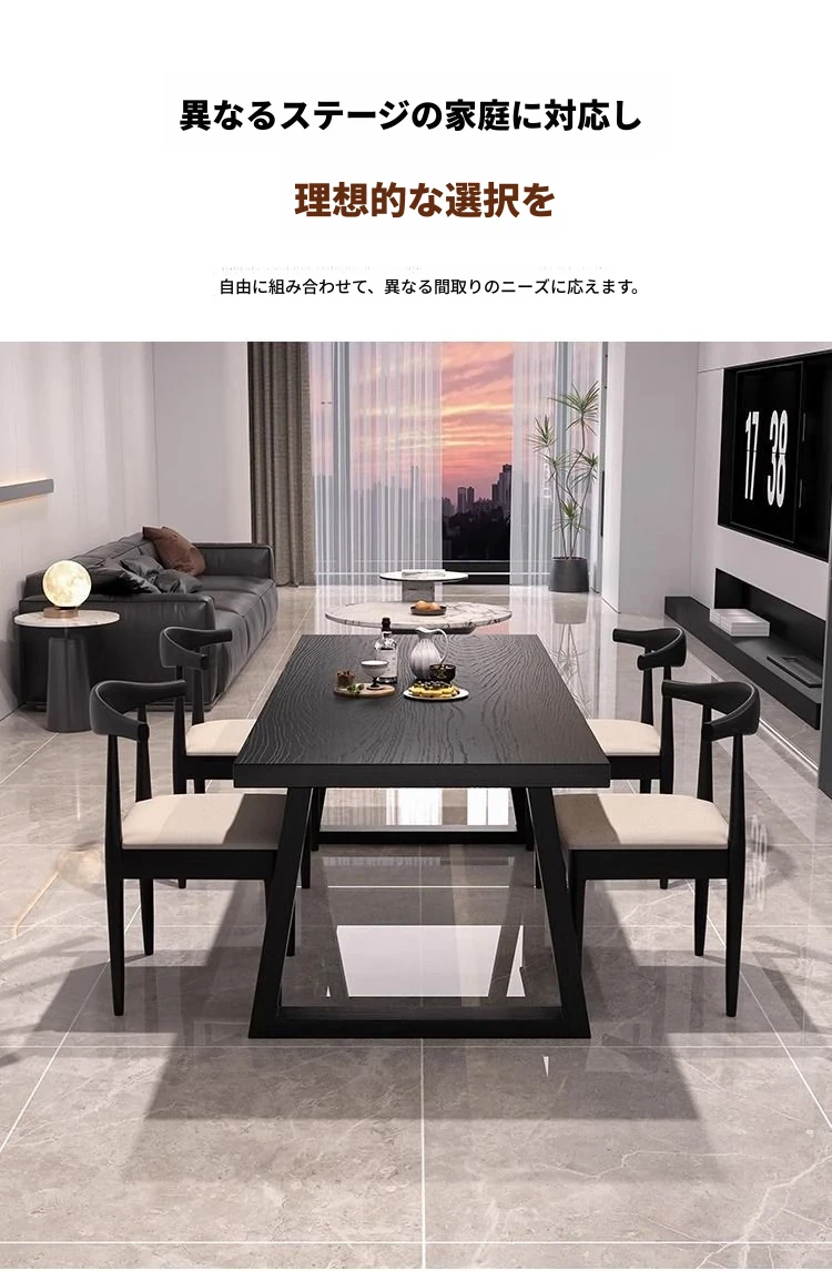 インフルエンサー同款:180テーブル*カウホーンチェア*4-デフォルトは黒色発送
