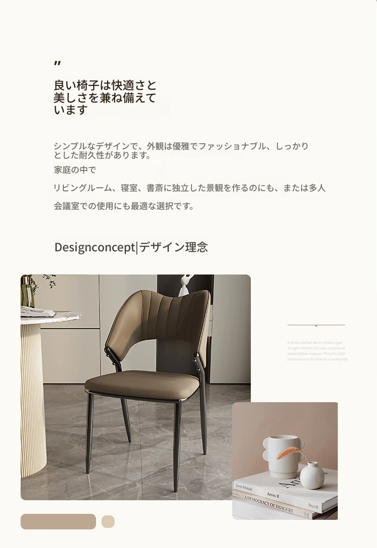 モダンでラグジュアリーな背もたれ付きイタリアンミニマリストダイニングチェア - デザイナー仕様の接客・会議用椅子、レストランやカフェに最適!スタイリッシュで快適な座り心地を実現。