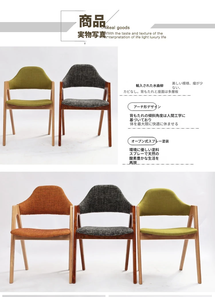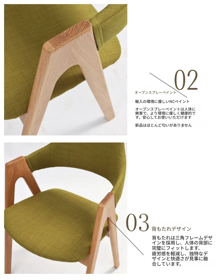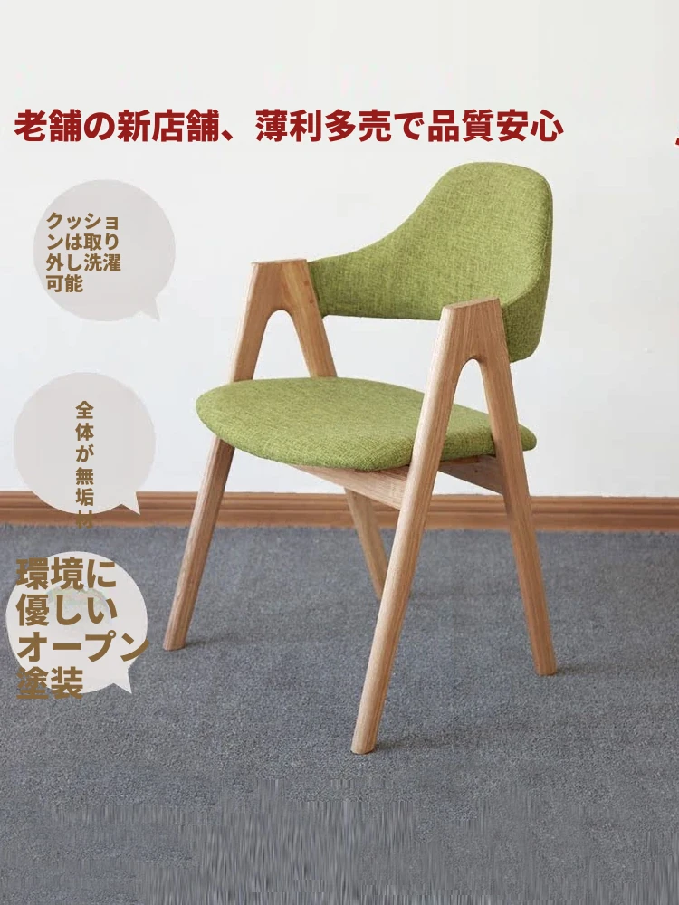 現代的なシンプルな日本風の無垢材ダイニングチェアー 高級感あふれる背もたれ付きアームチェア タイ風デザイン カフェや家庭にぴったりの天然素材使用