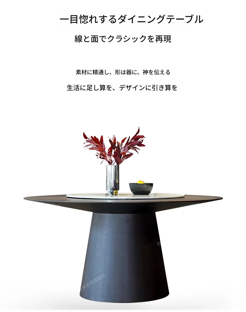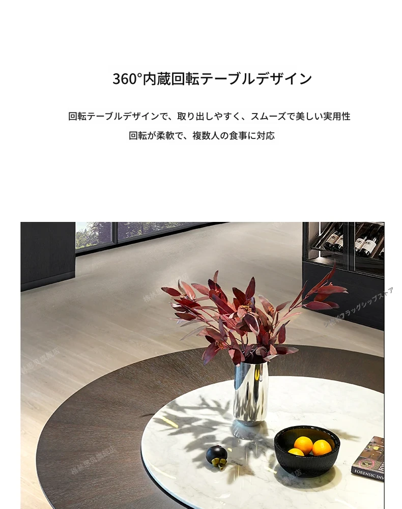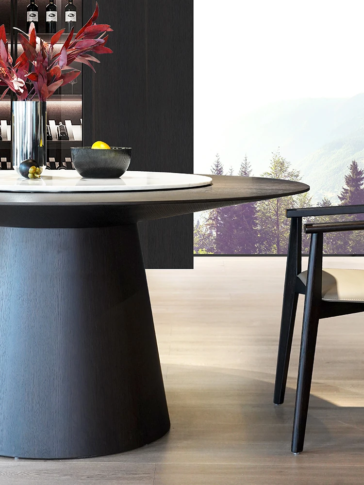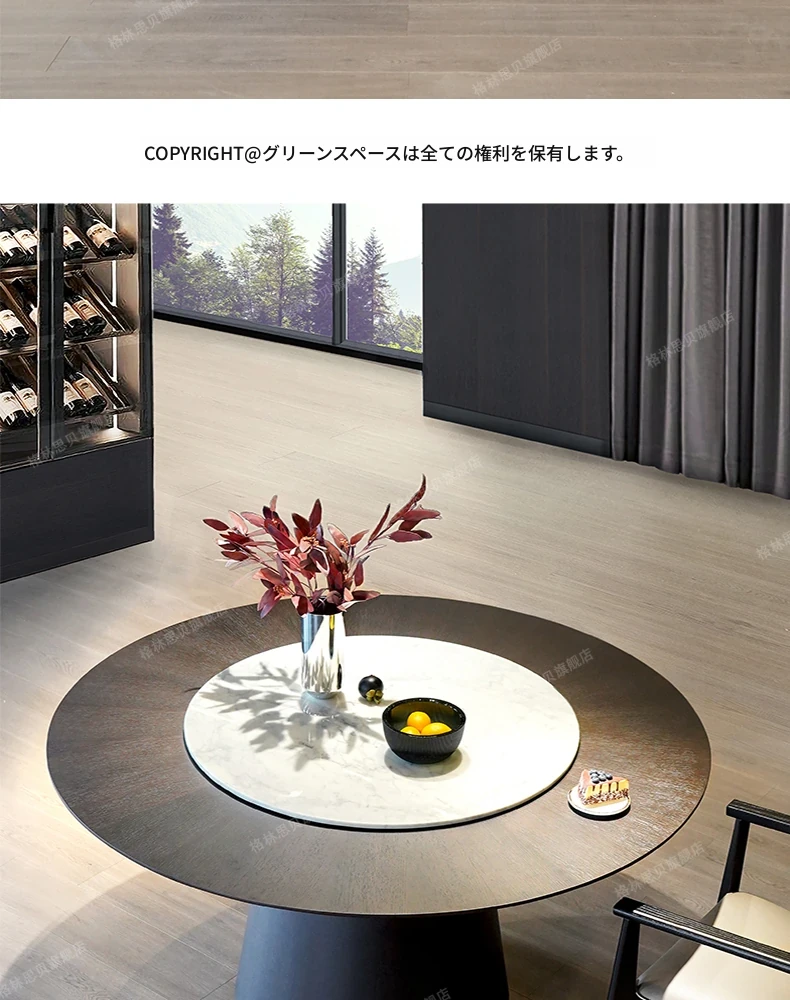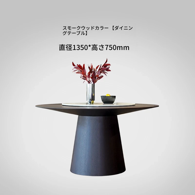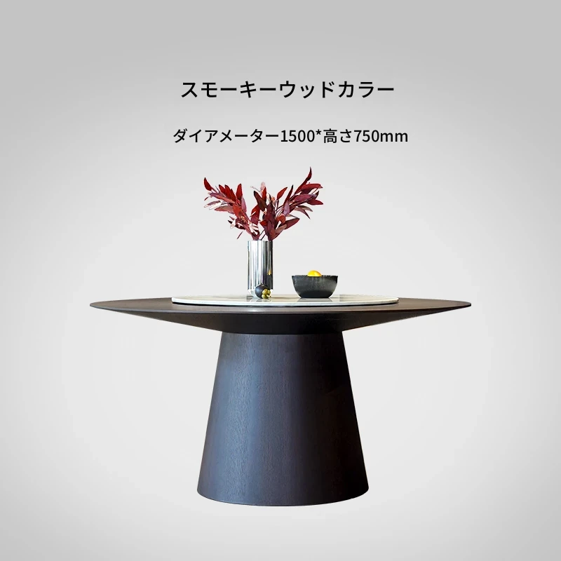 イタリアンラグジュアリー現代ミニマリスト円形回転ダイニングテーブル - シンプルで洗練されたスモーキーオーク仕上げ、家庭の食卓に最適!