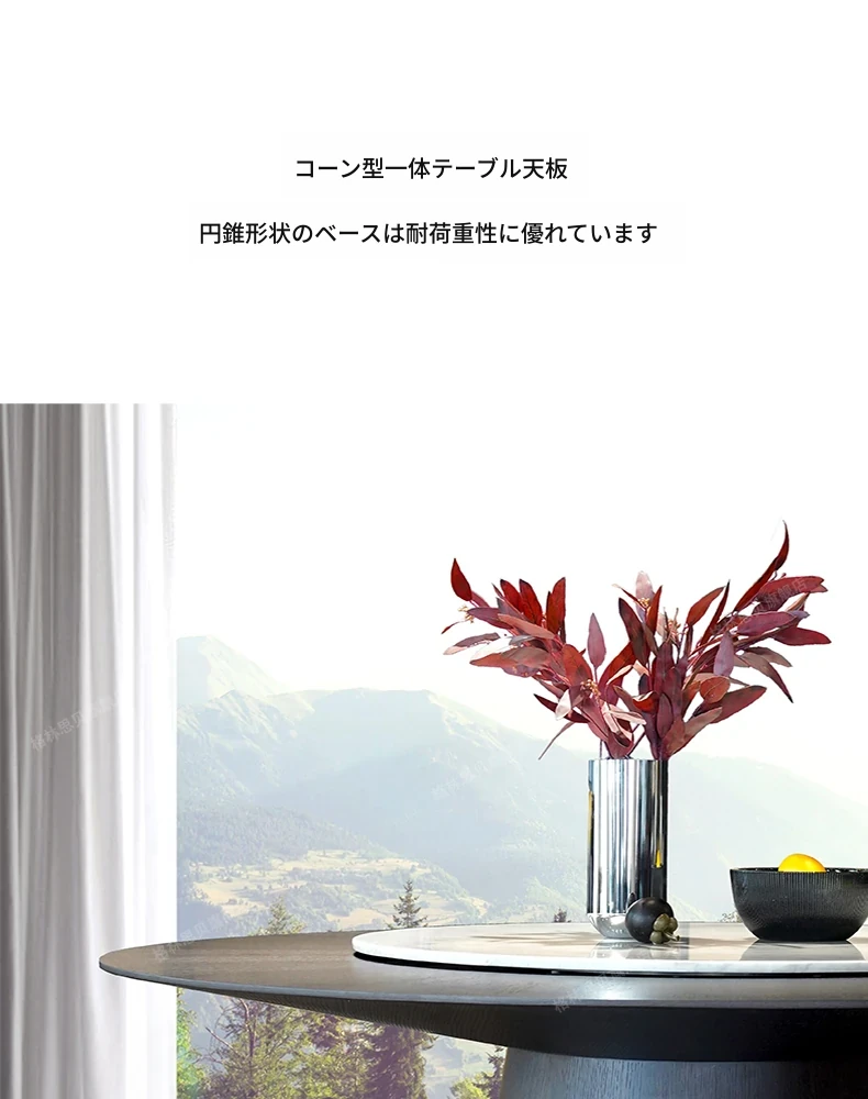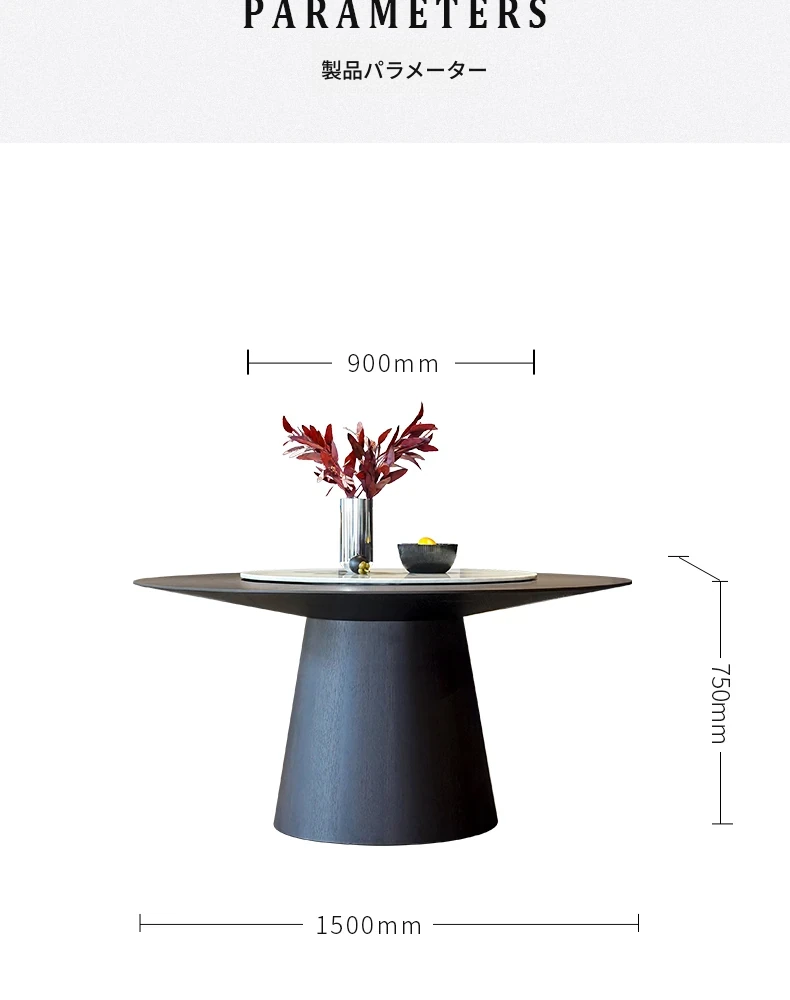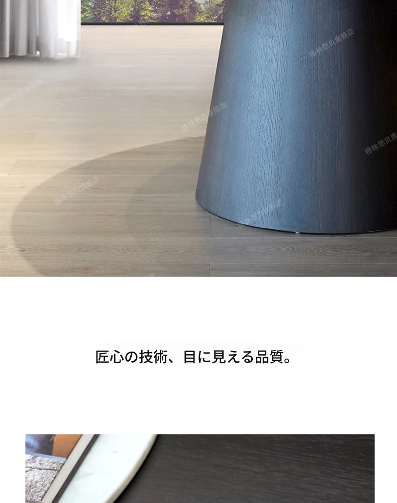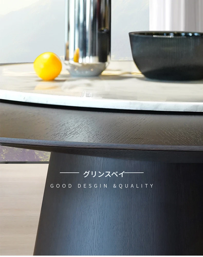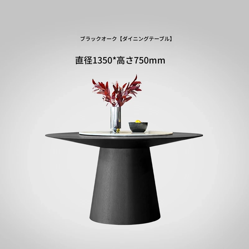 イタリアンラグジュアリー現代ミニマリスト円形回転ダイニングテーブル - シンプルで洗練されたスモーキーオーク仕上げ、家庭の食卓に最適!