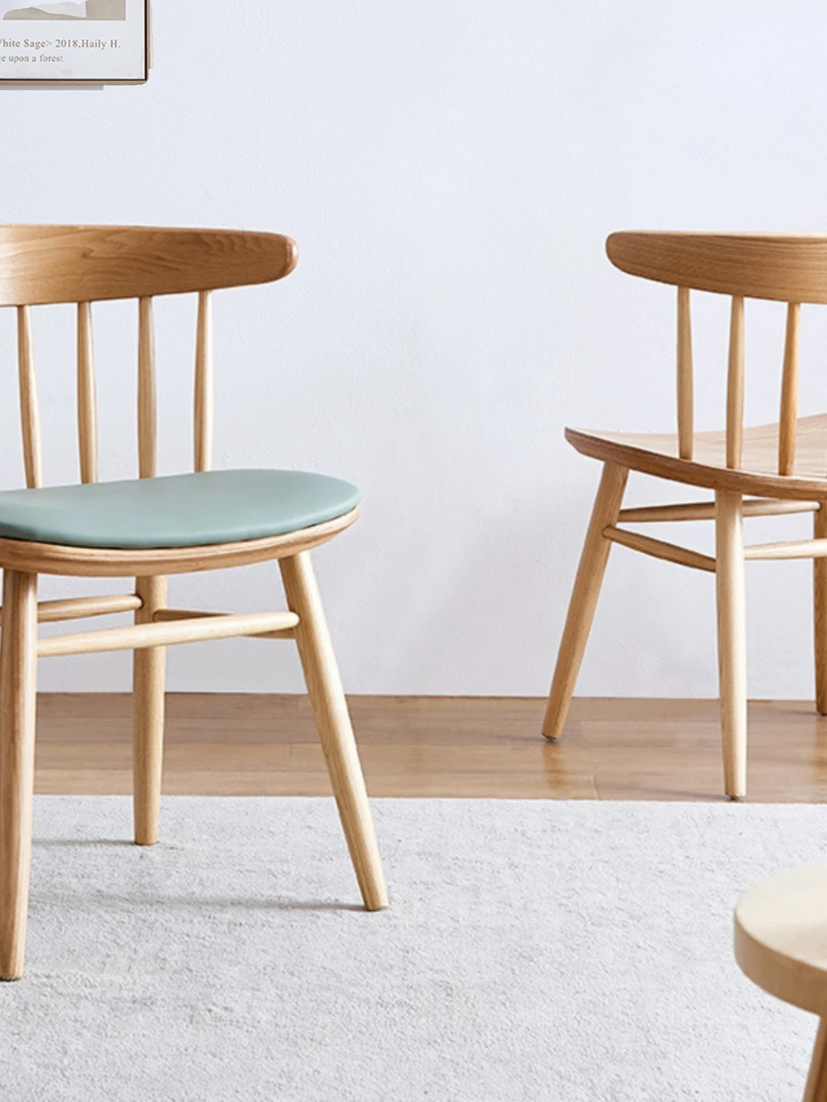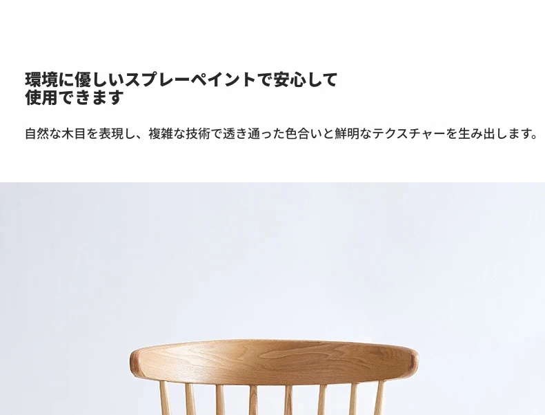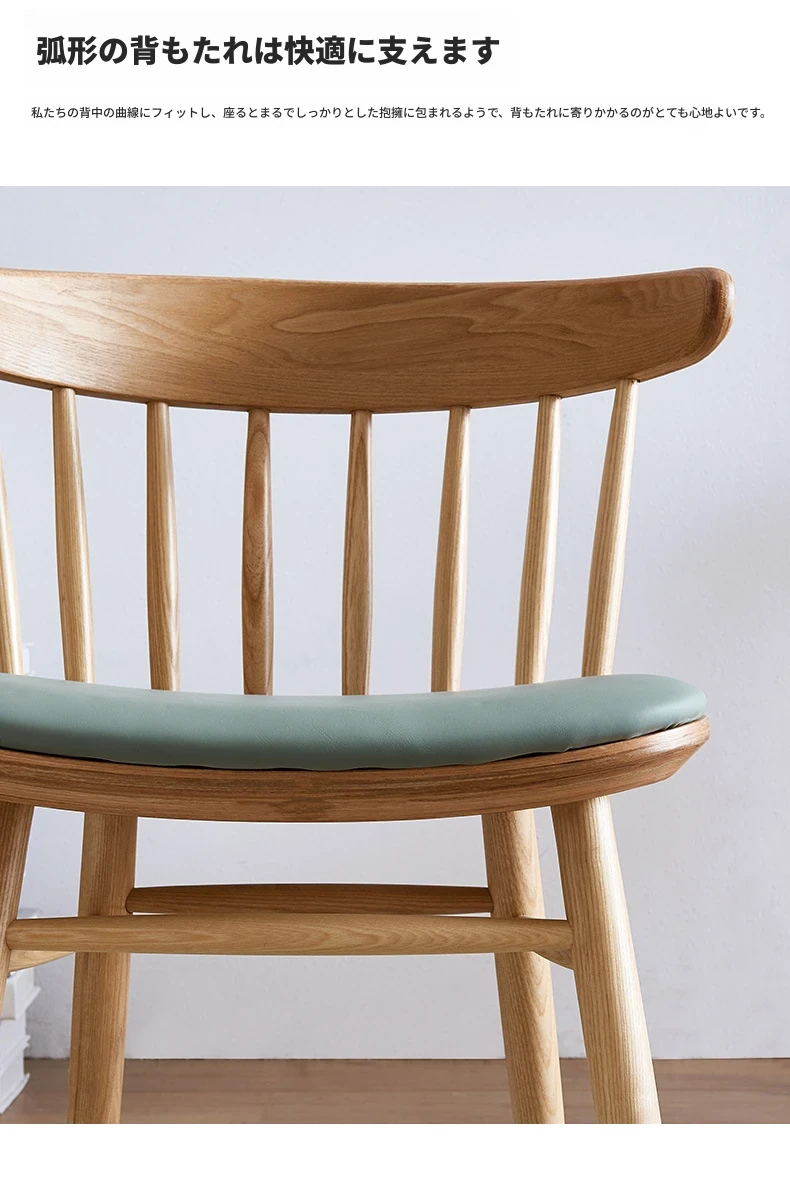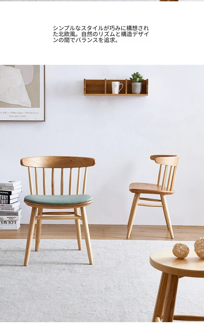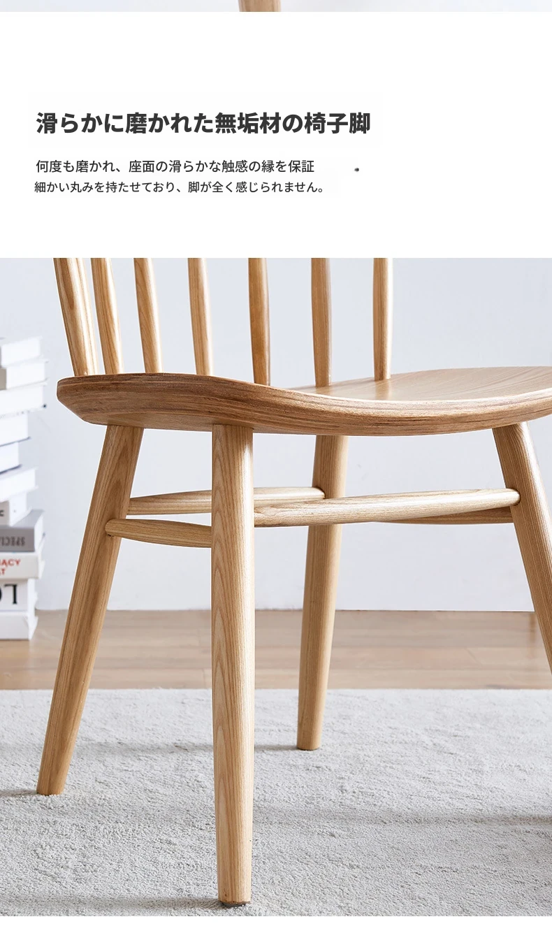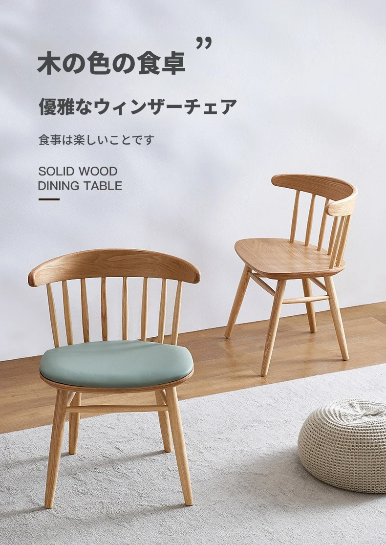 天然木材使用!シンプルでモダンなデザインの和風ダイニングチェア。北欧スタイルの背もたれ付きで、ウィンザー椅子の快適さを兼ね備えた一品。家庭や書斎に最適な逸品です。