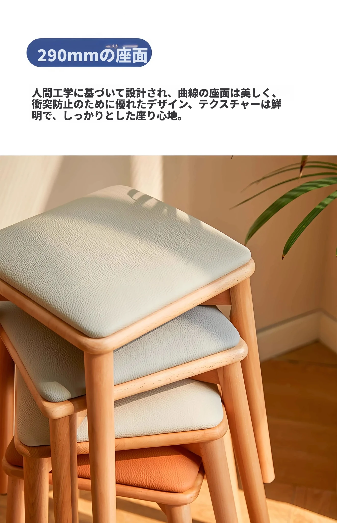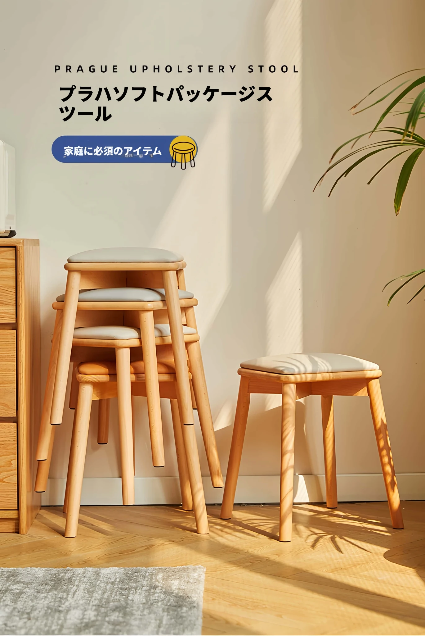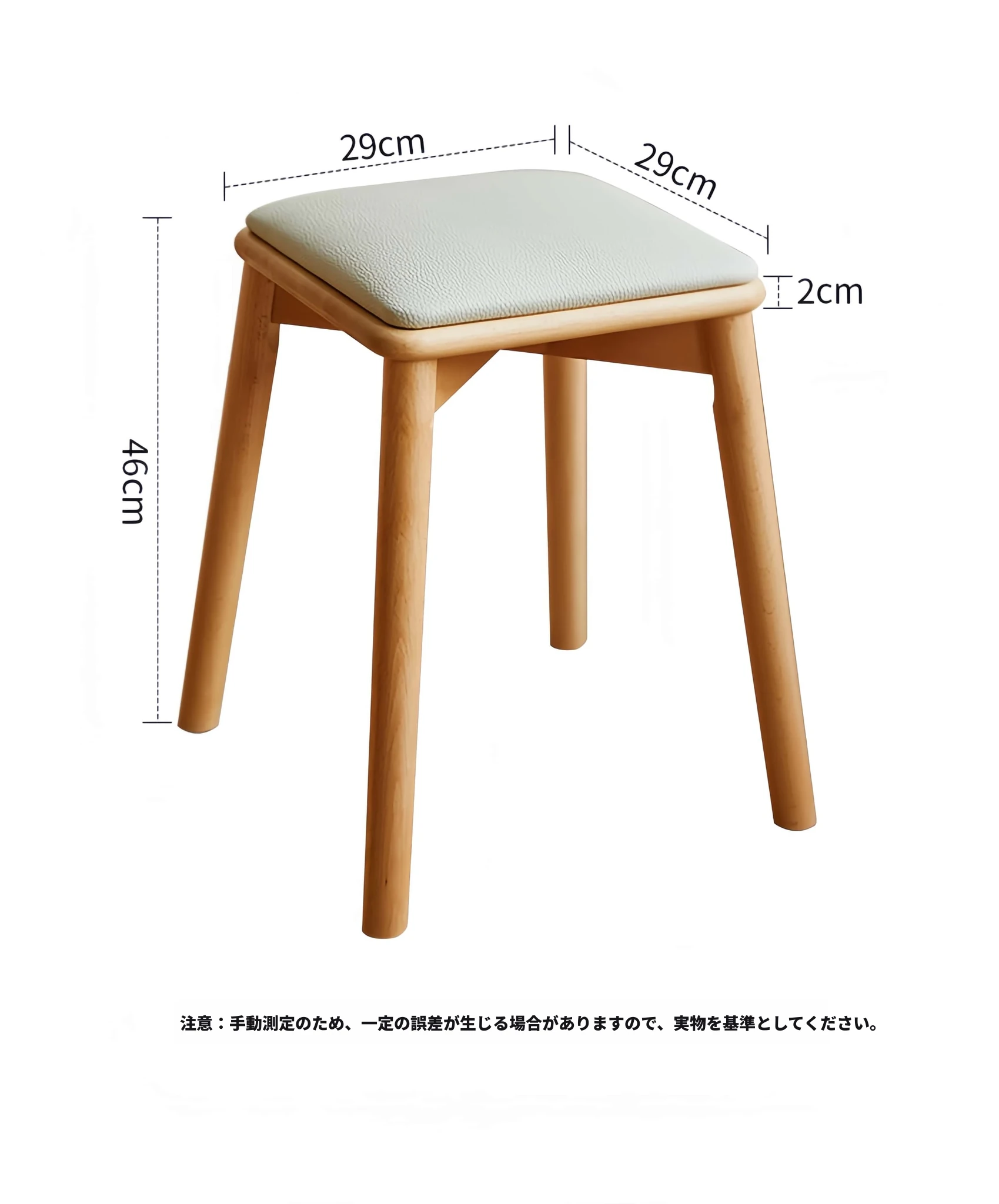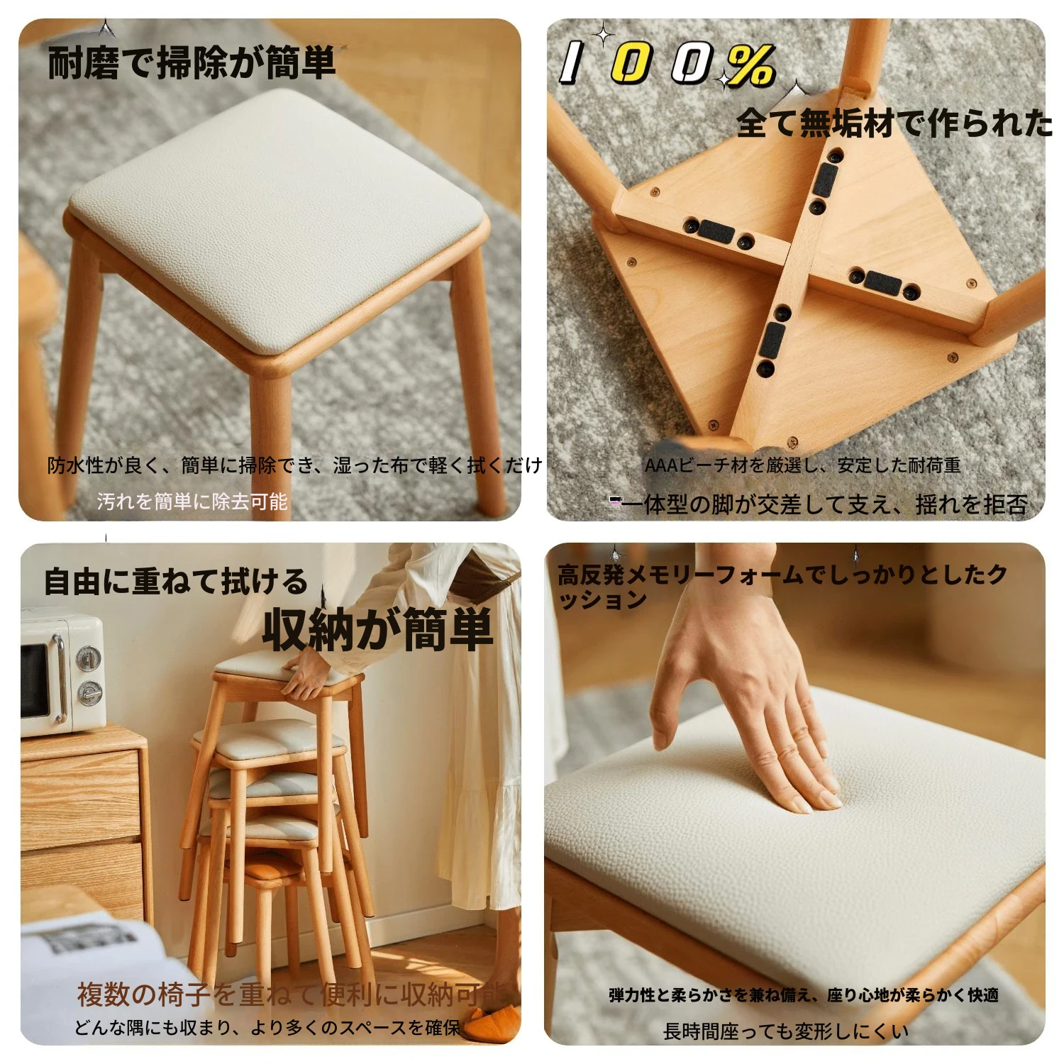 天然木製の化粧スツール - おしゃれなクリーム風デザインのダイニングスツール、現代的でシンプルな家用予備スツール、スタッキング可能なソフトスクエアスツール、ドレッサー用にも最適!