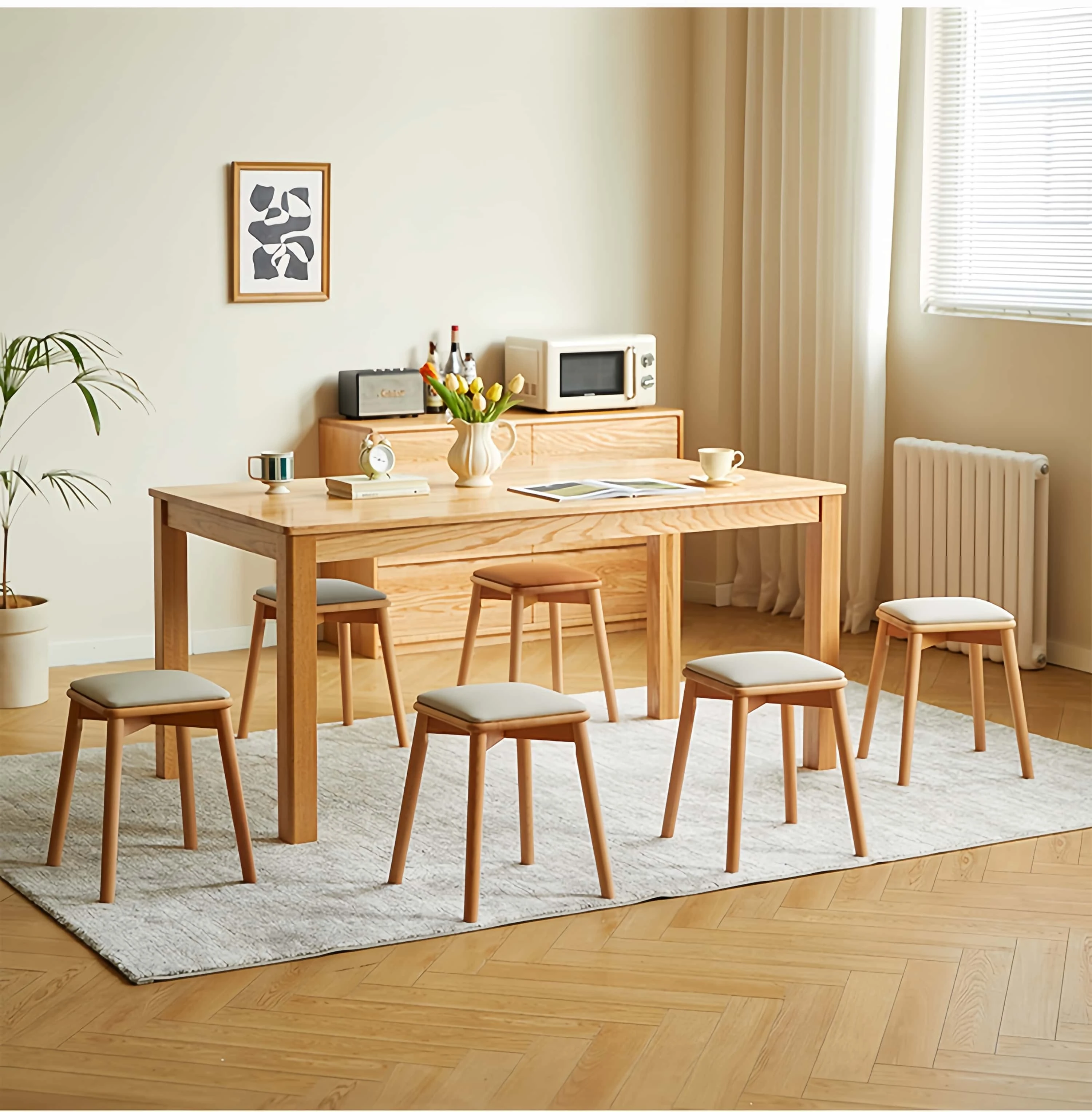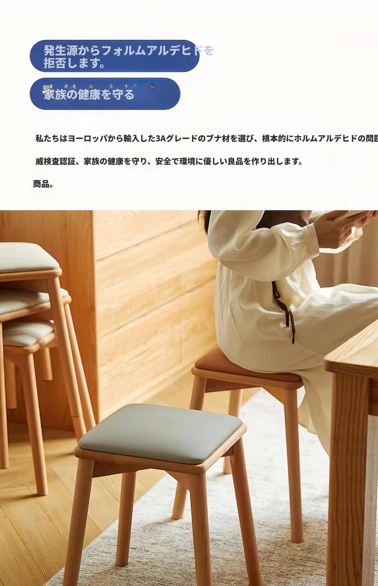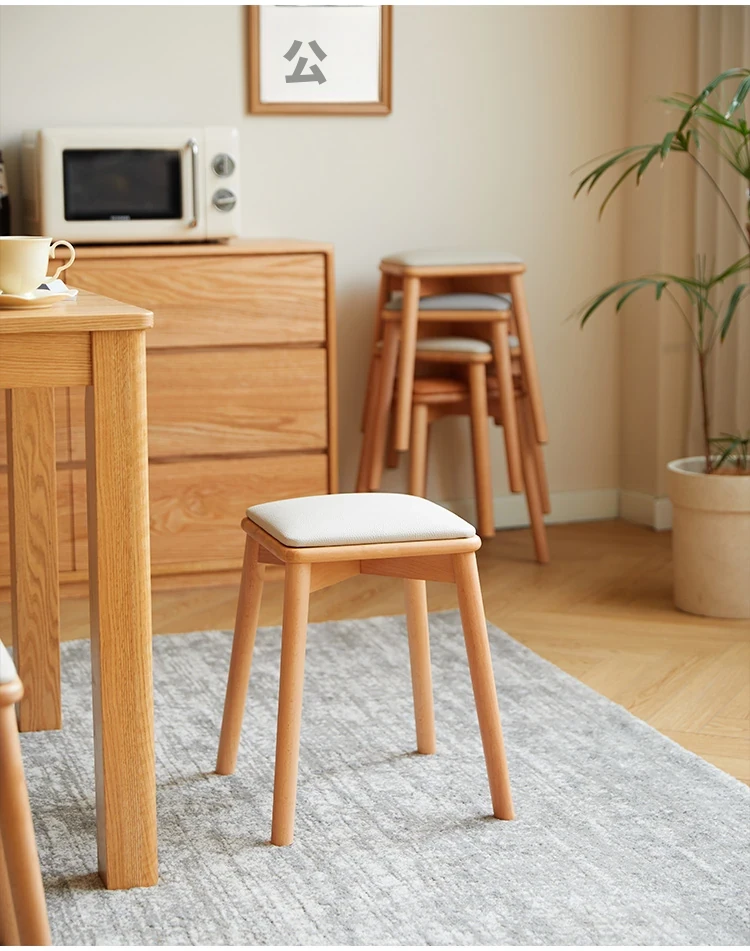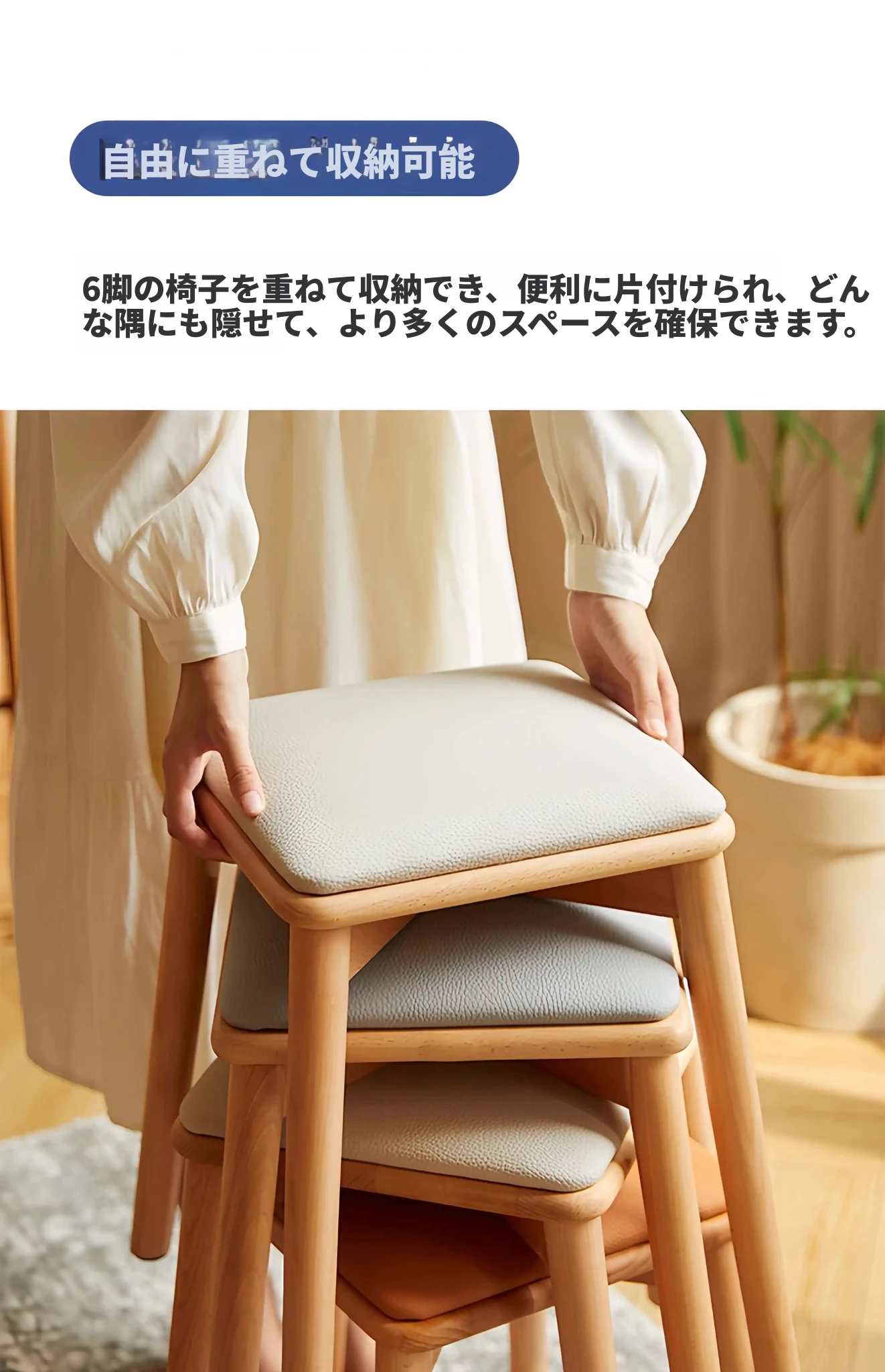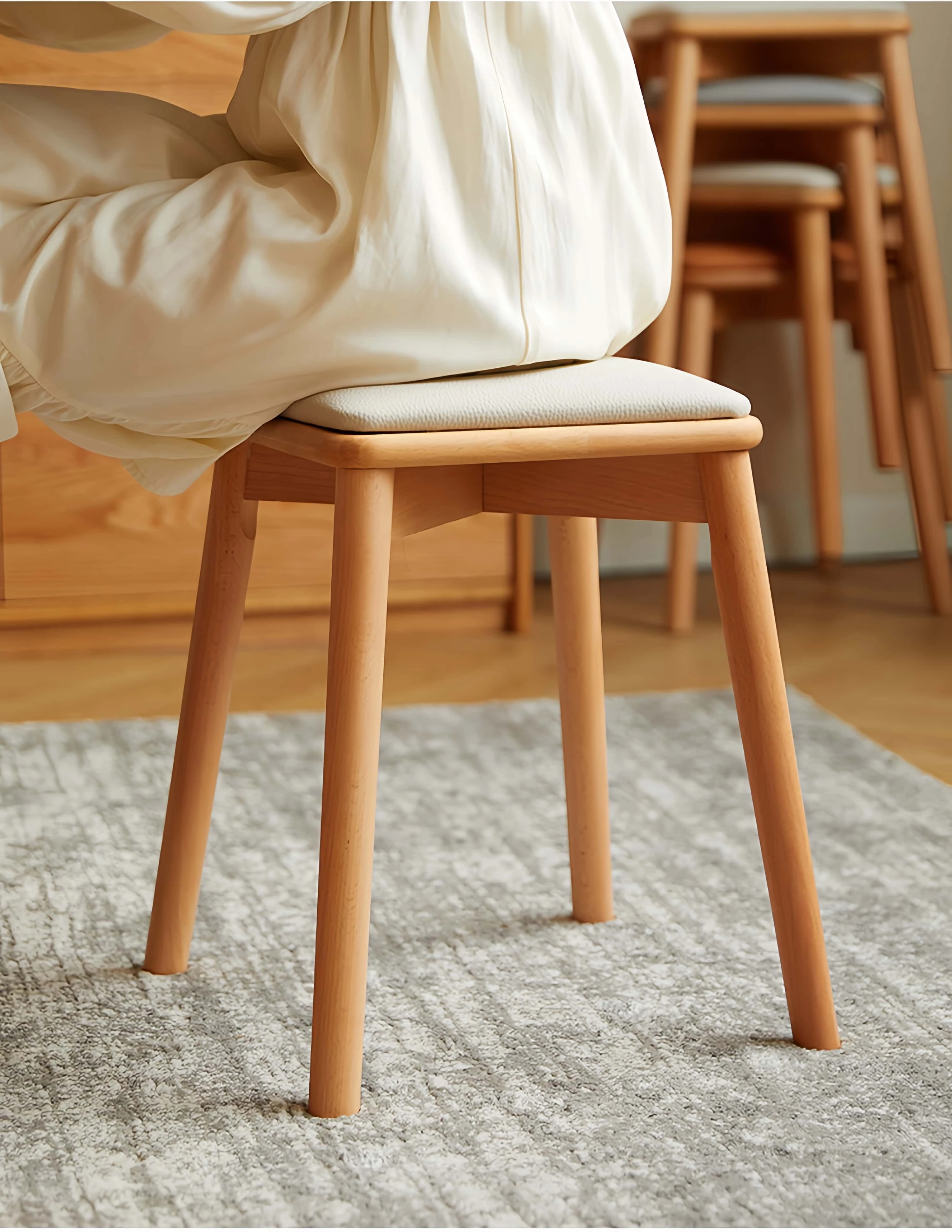 天然木製の化粧スツール - おしゃれなクリーム風デザインのダイニングスツール、現代的でシンプルな家用予備スツール、スタッキング可能なソフトスクエアスツール、ドレッサー用にも最適!