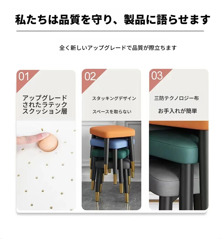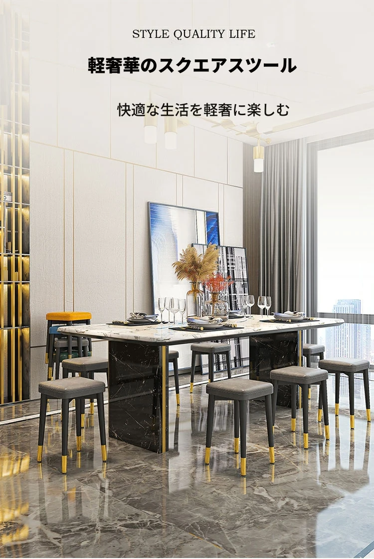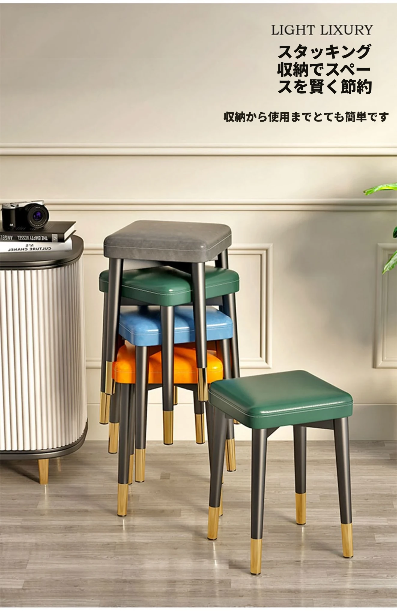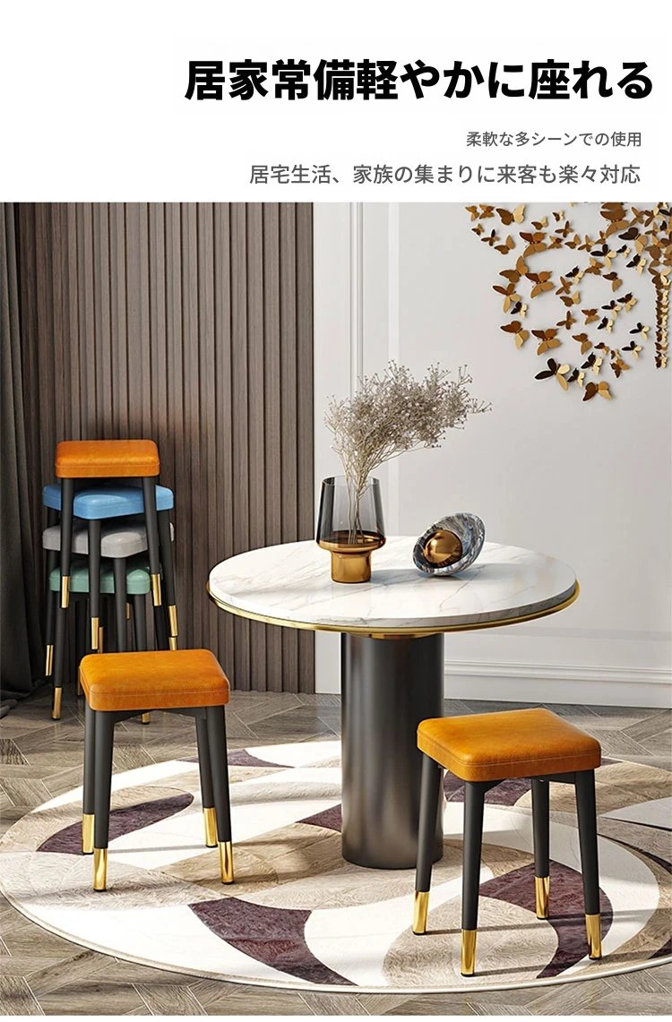 モダンでシンプルな家用四角スツール - 軽やかなラグジュアリー感のあるリビングやダイニングにぴったり!人気の丸型デザイン、折りたたみ可能で収納も簡単、創造的なビジュアルでおしゃれなメイク台にも最適です。