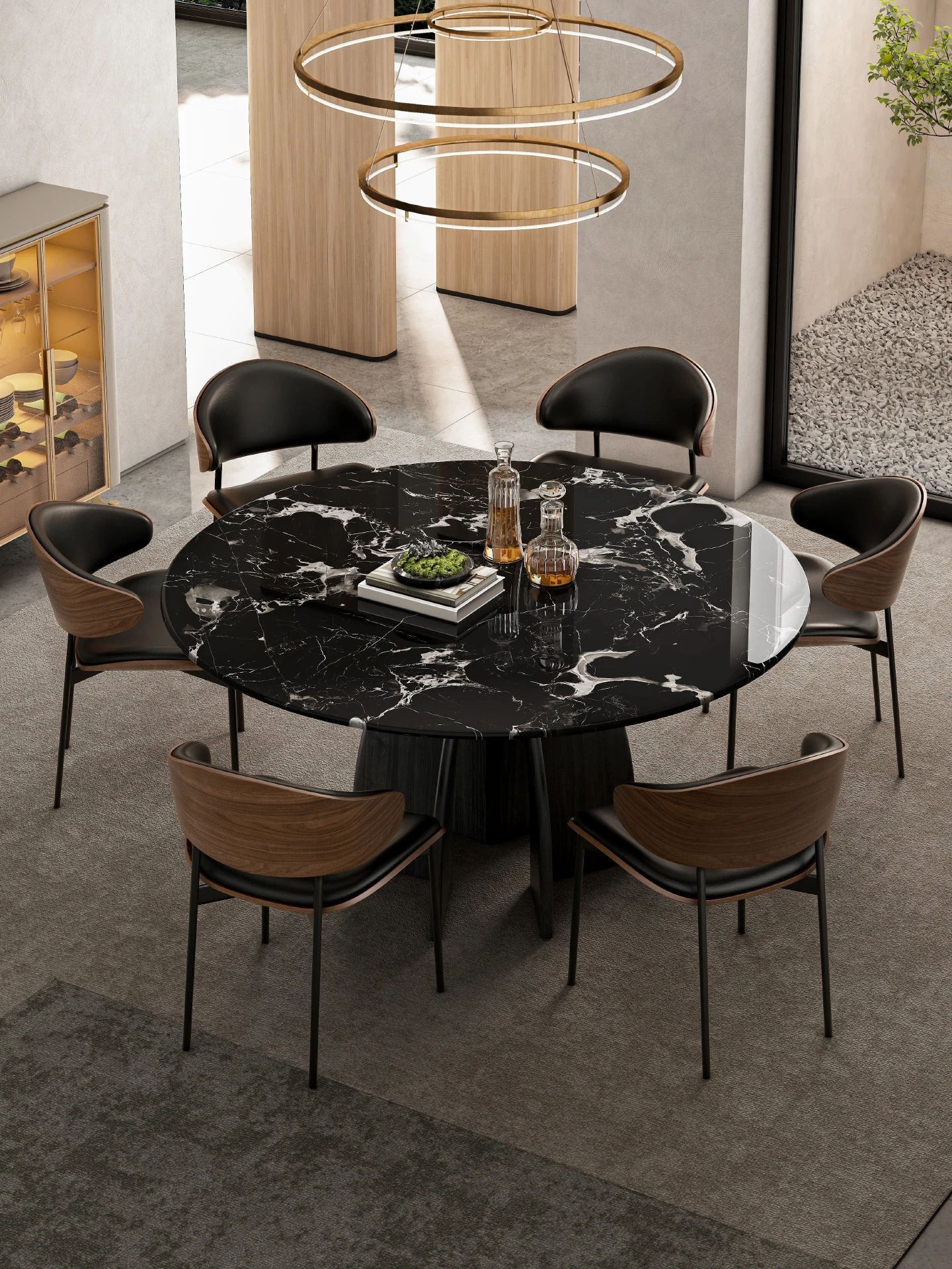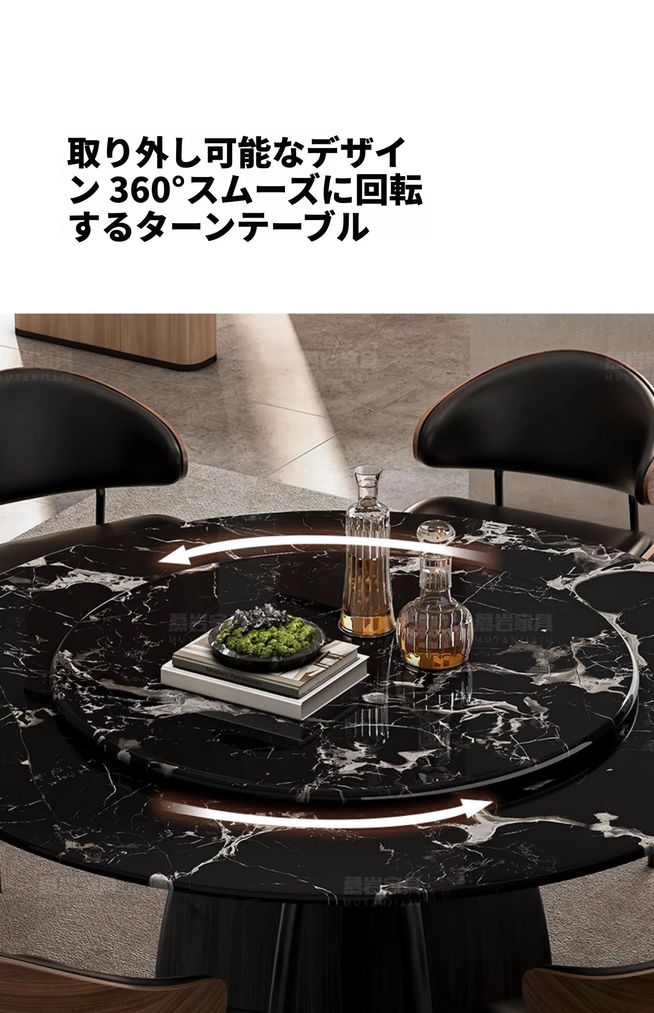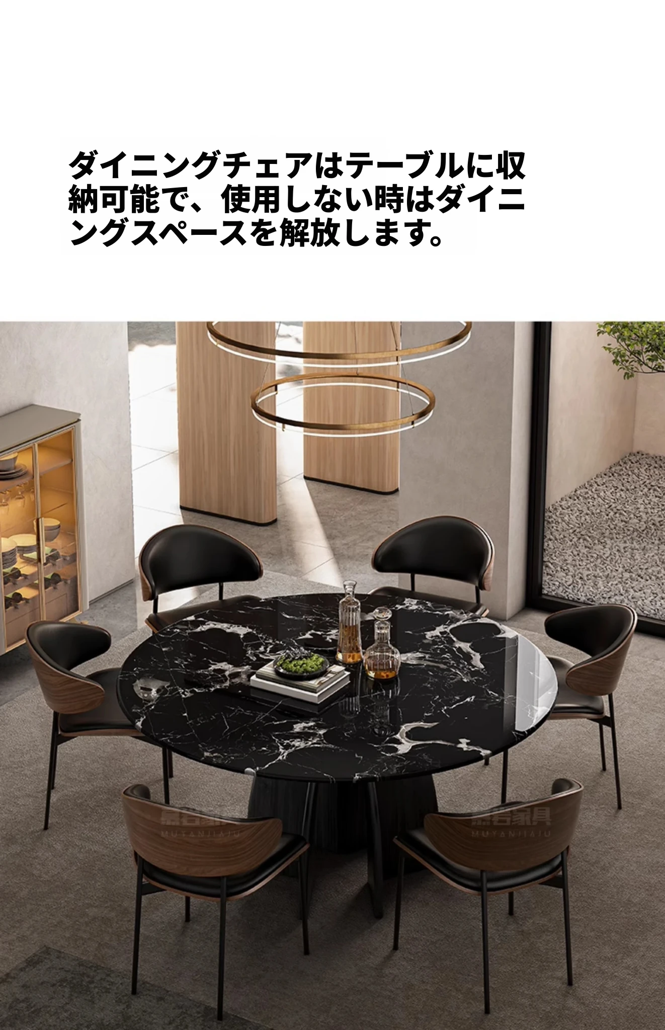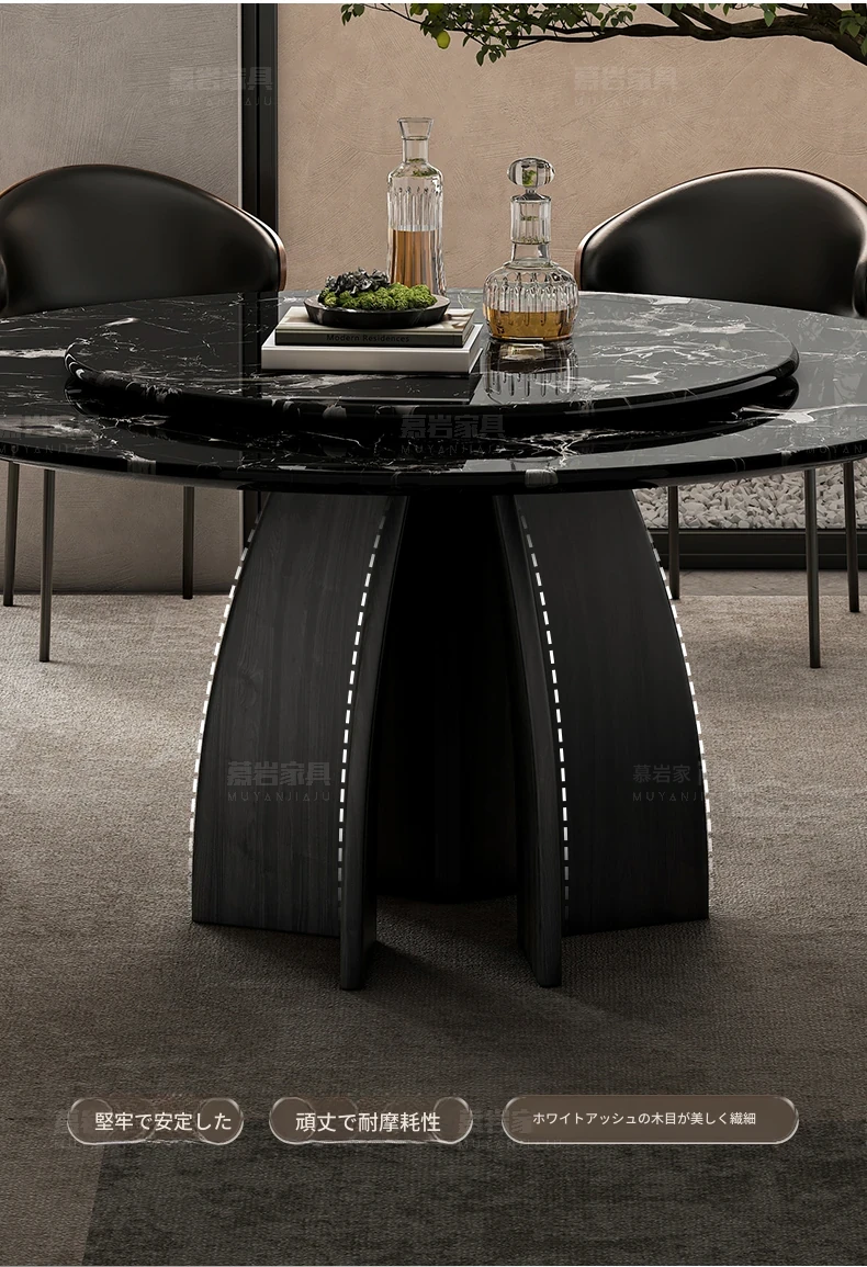天然黒バラ豪華石丸テーブル|イタリアンミニマルデザインのブラック無垢材と大理石の円形ダイニングテーブル&チェアセットで、洗練された空間を演出!