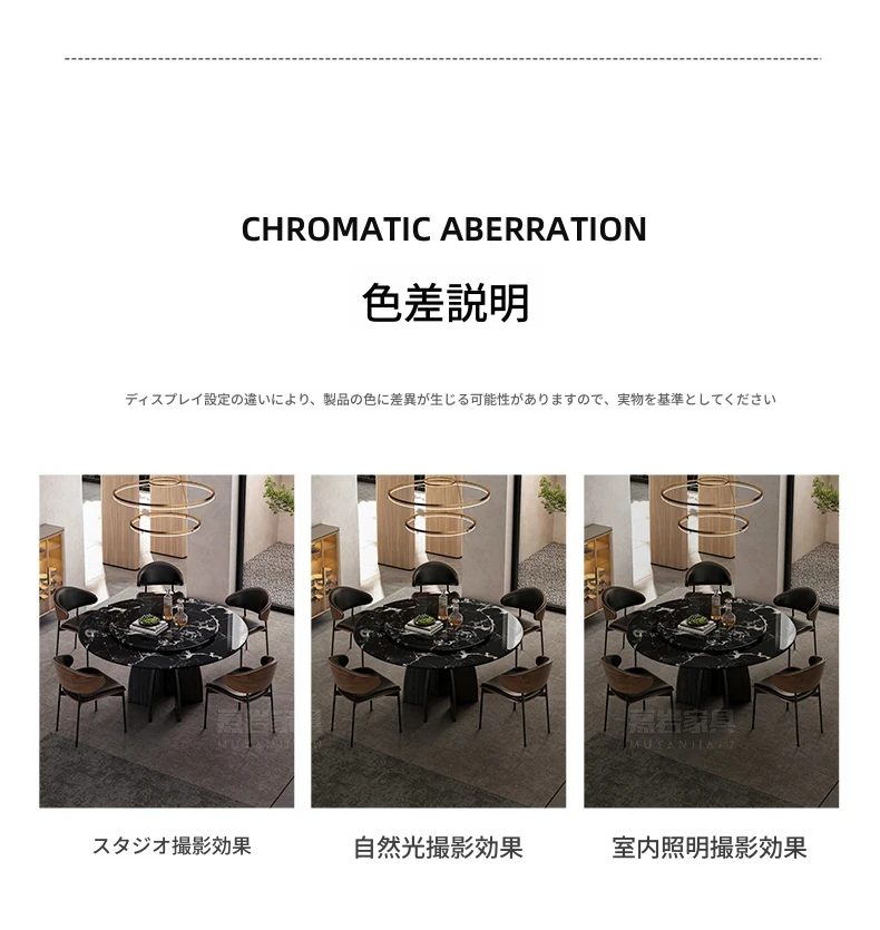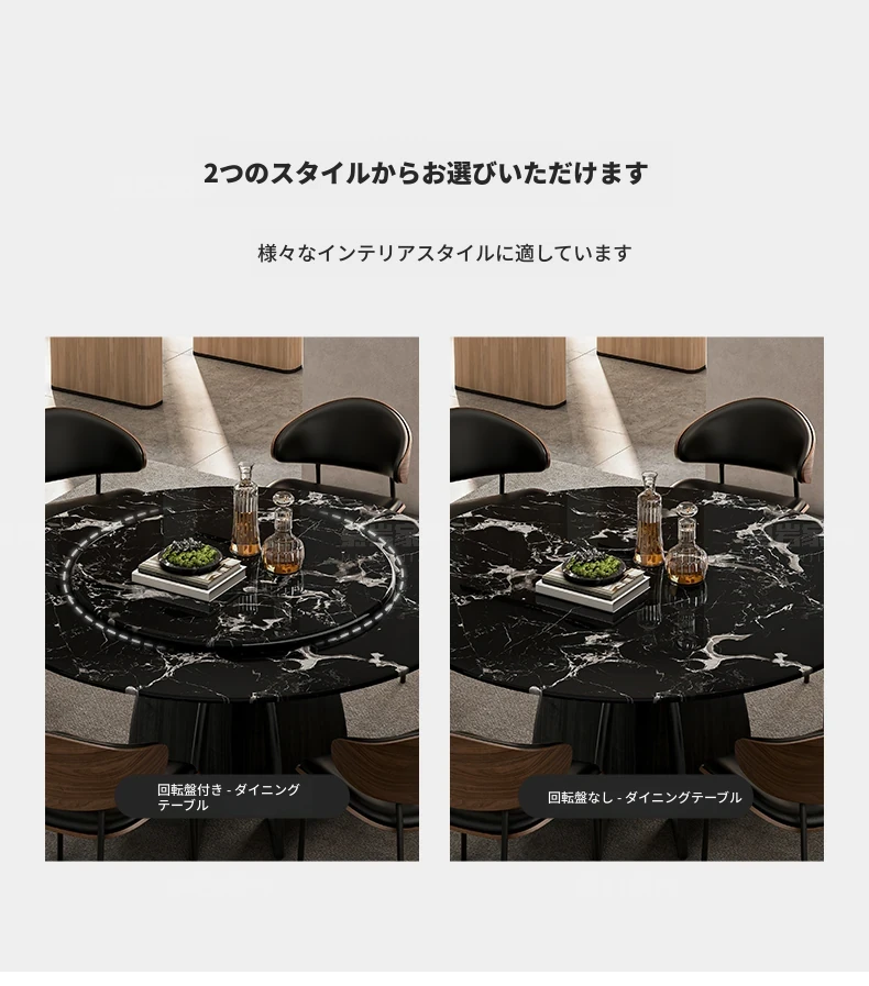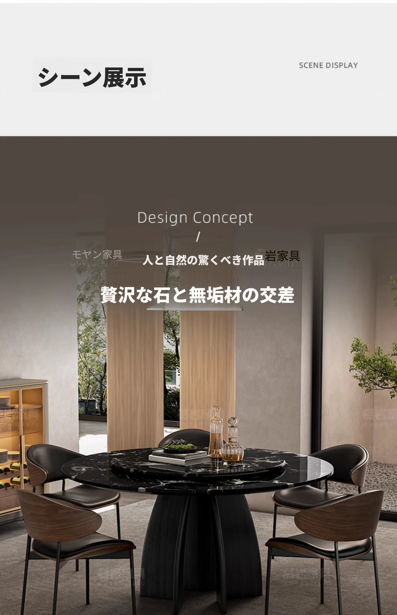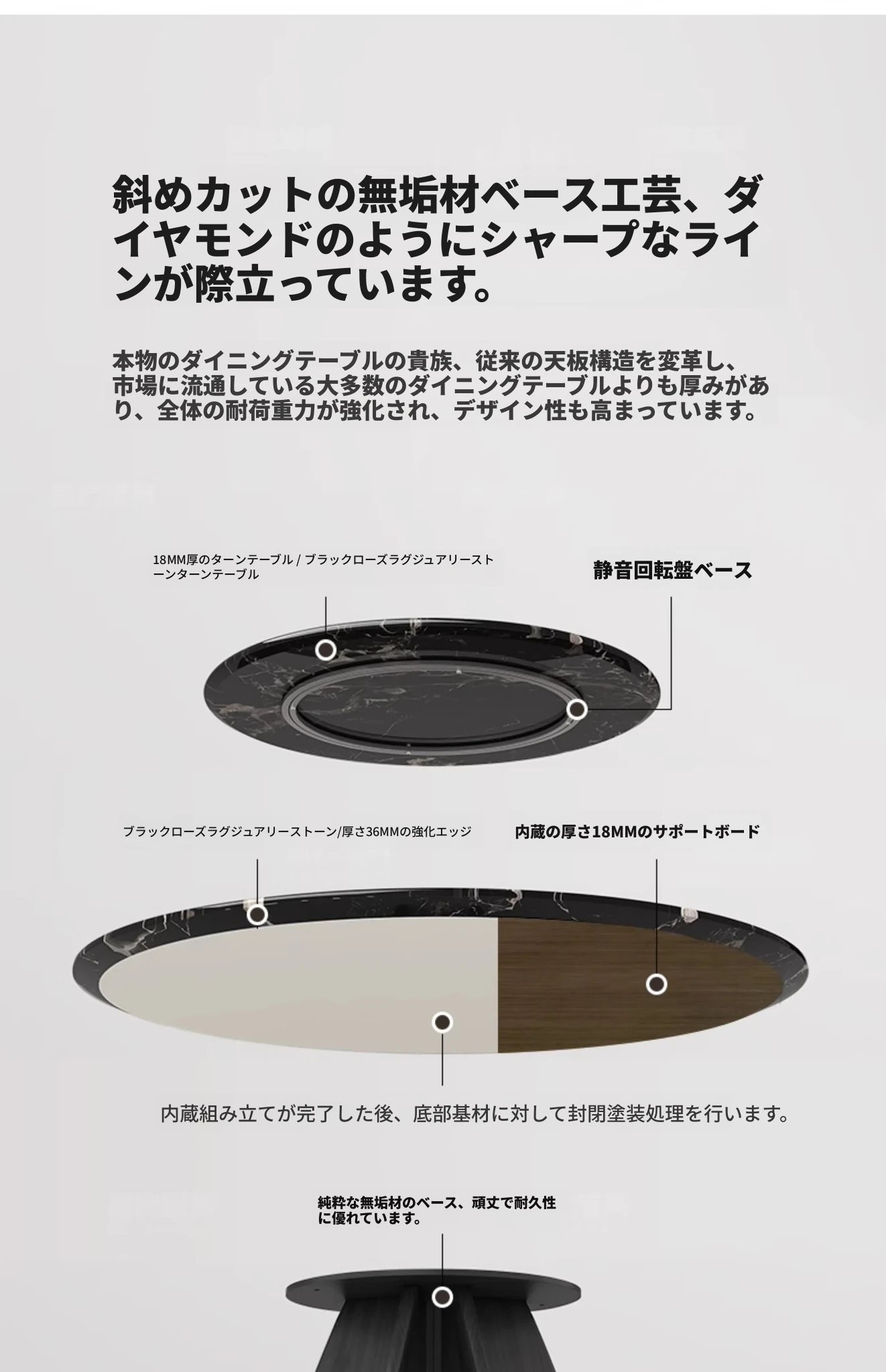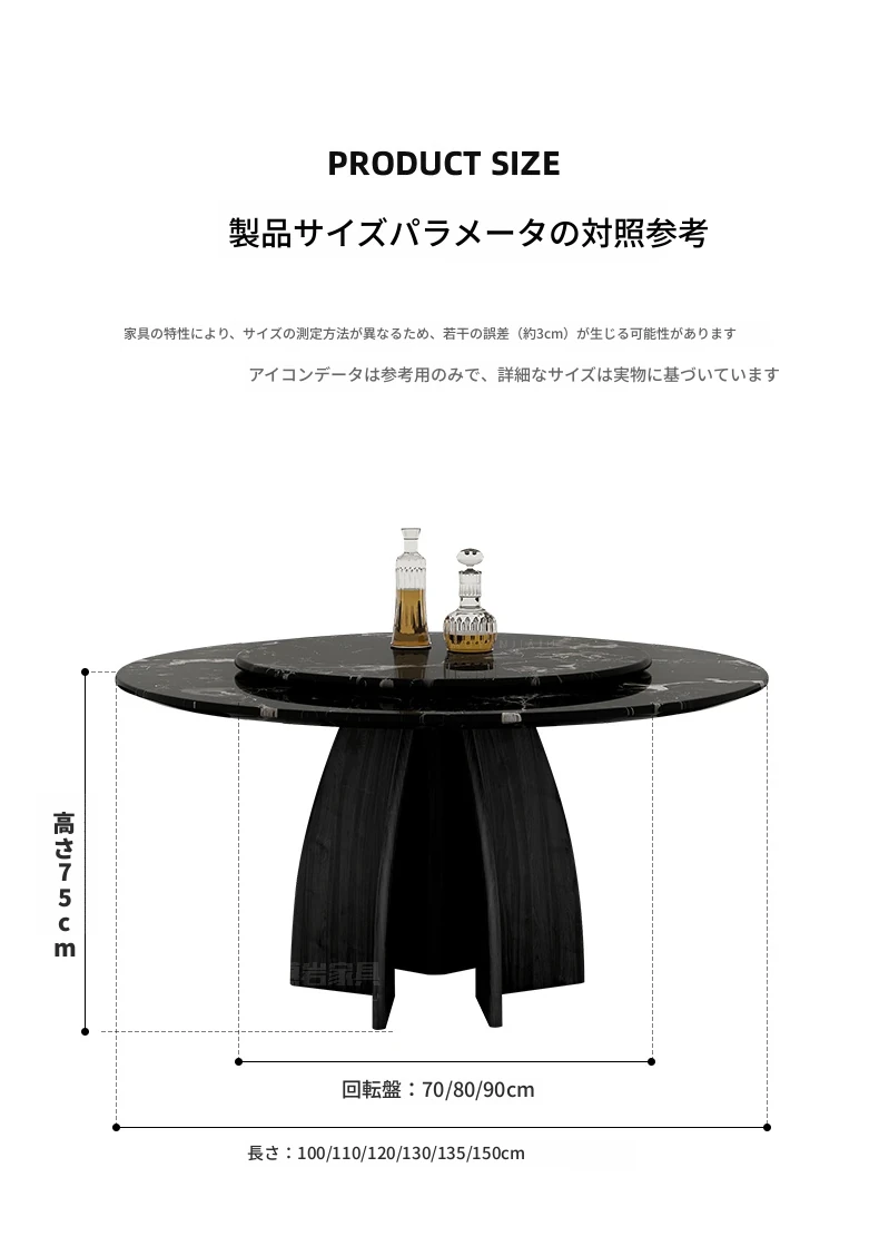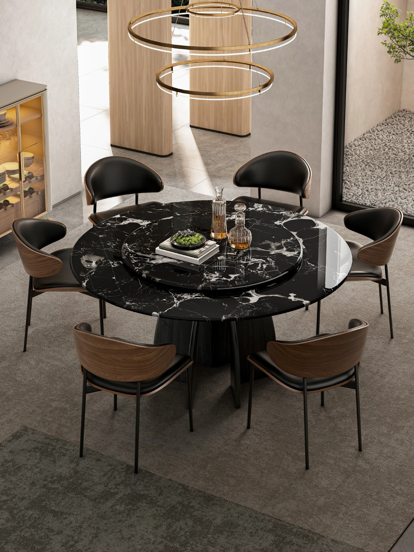 天然黒バラ豪華石丸テーブル|イタリアンミニマルデザインのブラック無垢材と大理石の円形ダイニングテーブル&チェアセットで、洗練された空間を演出!