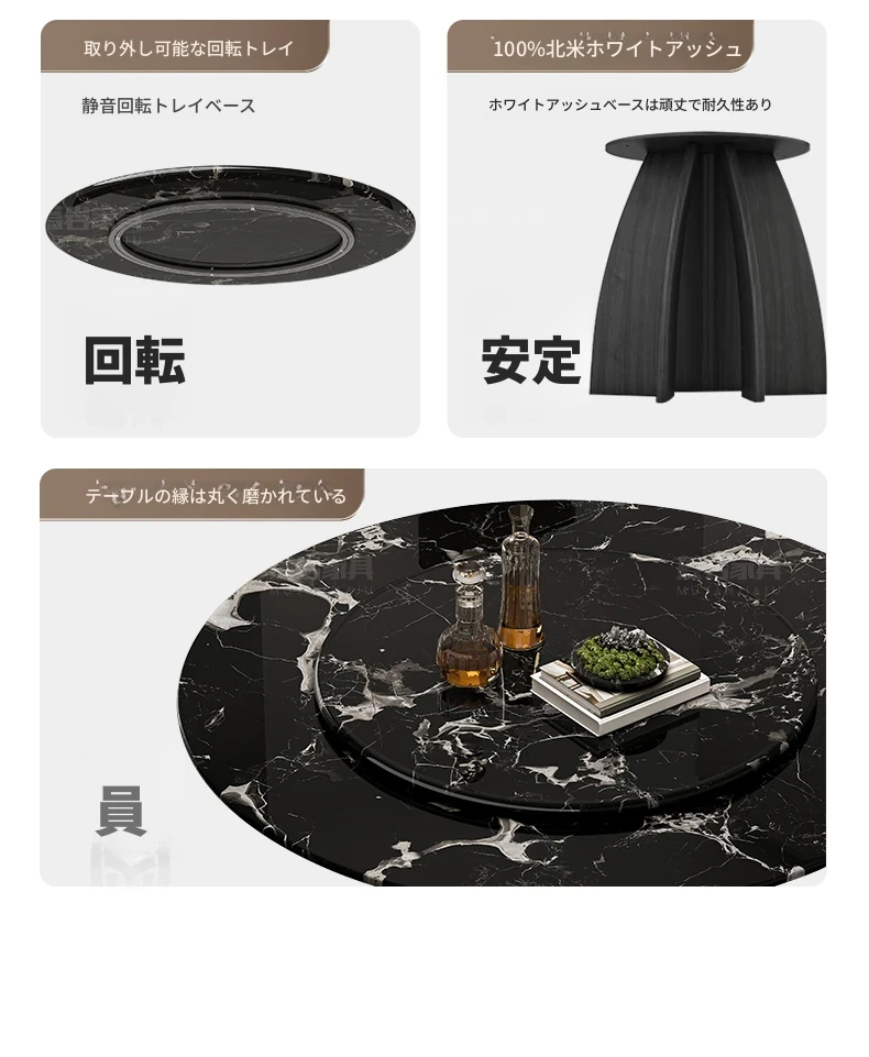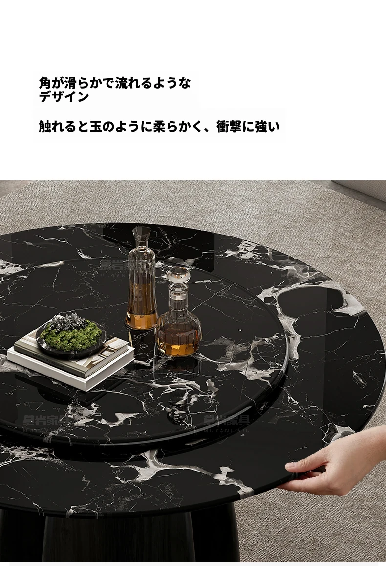 【S級】ブラックローズ・天然ラグジュアリー石丸テーブル【回転盤付き】