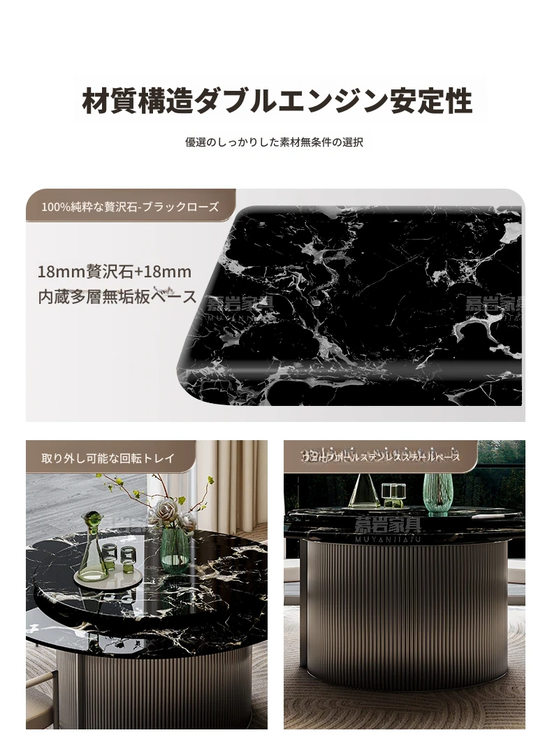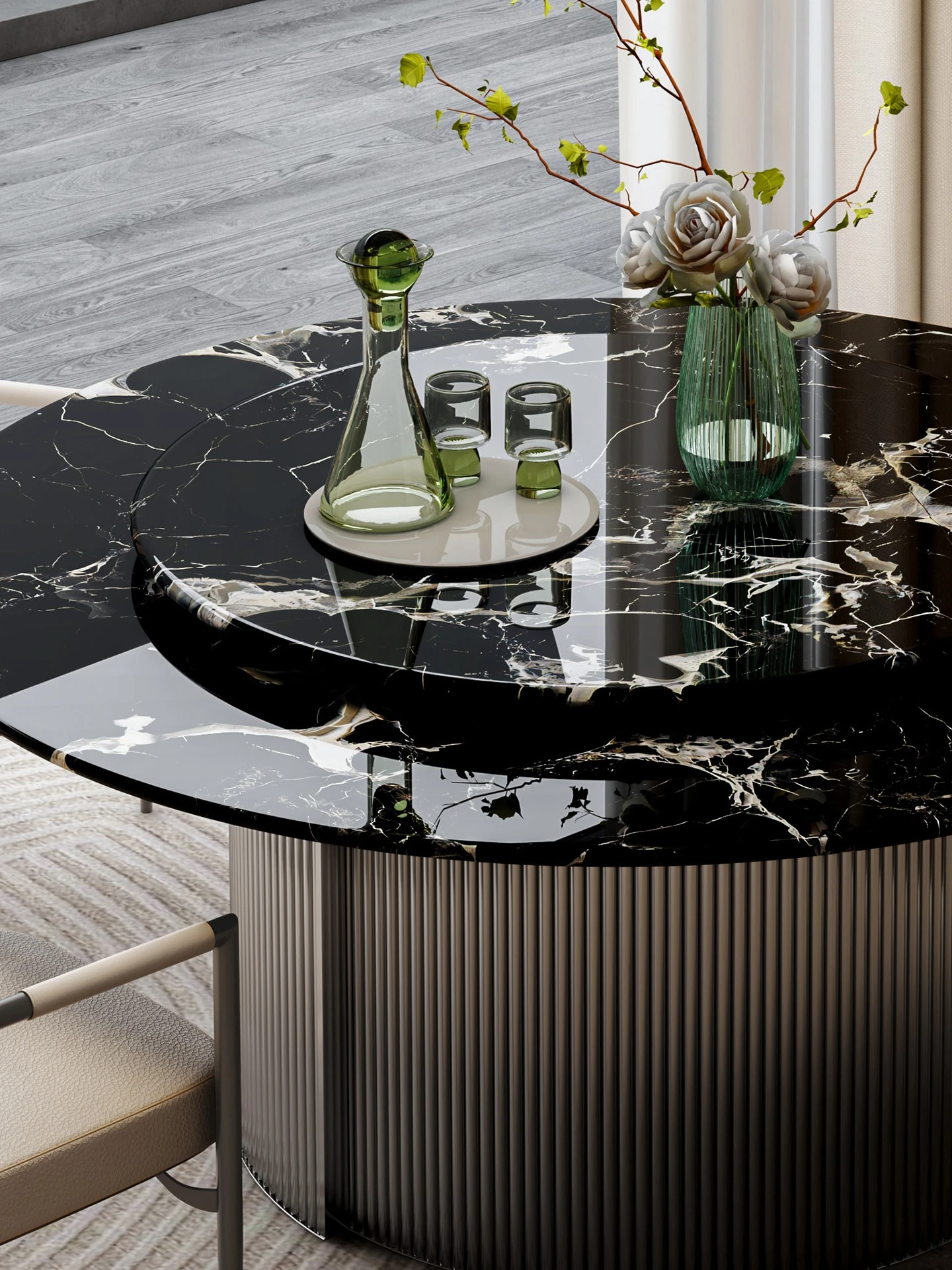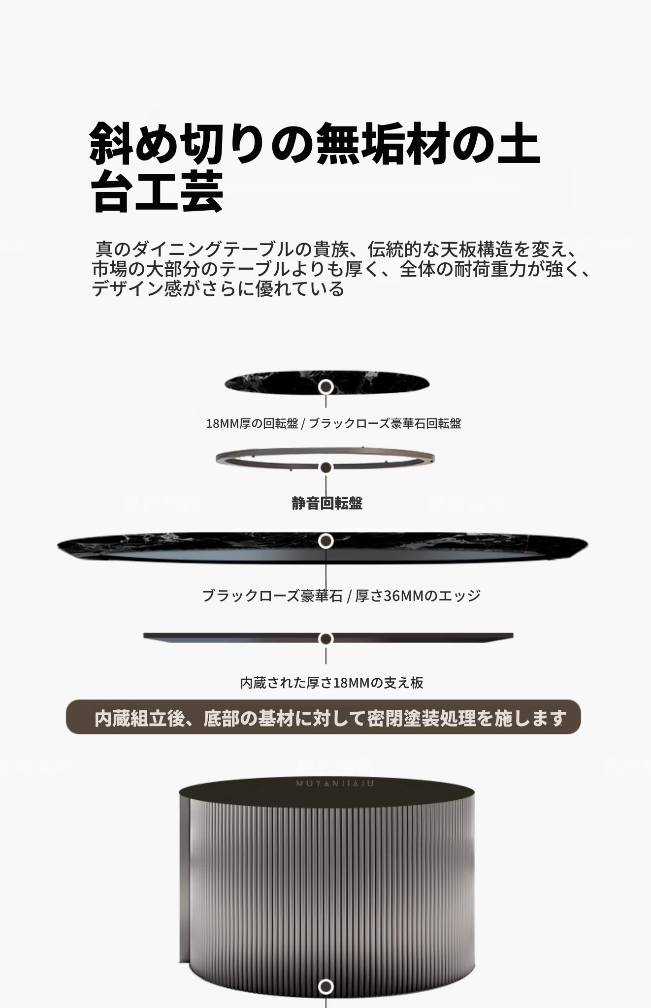 【S級】ブラックローズ・天然の贅沢石製円形ダイニングテーブル【回転盤付き】
