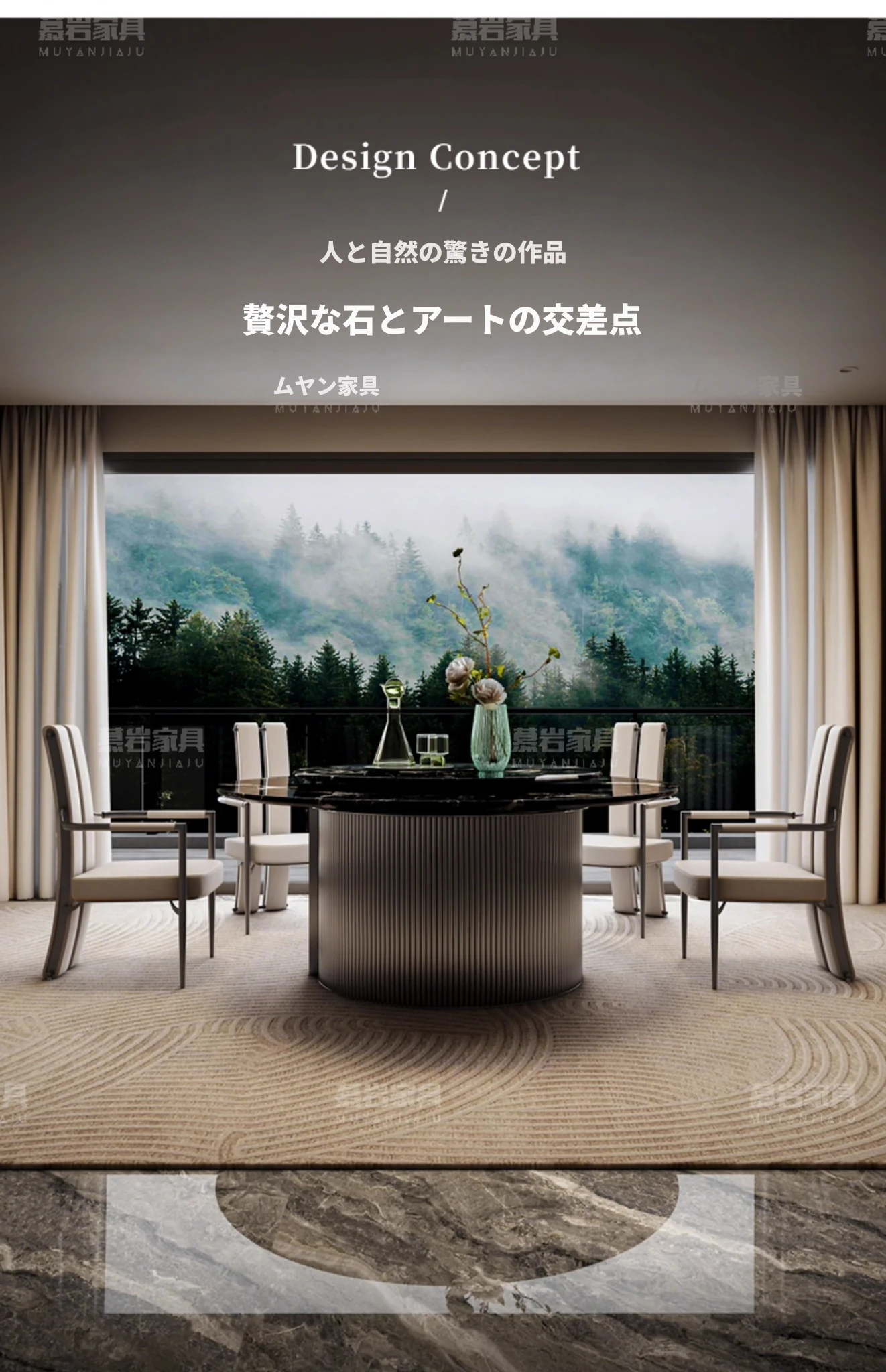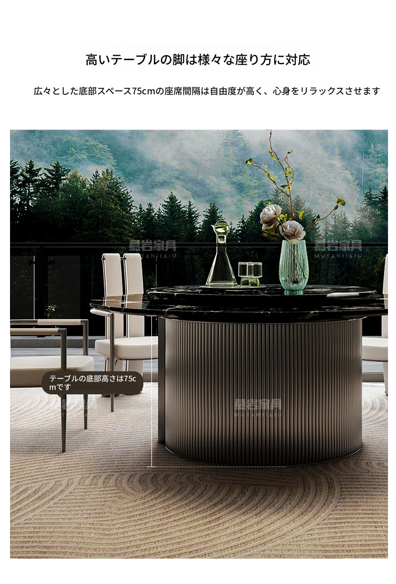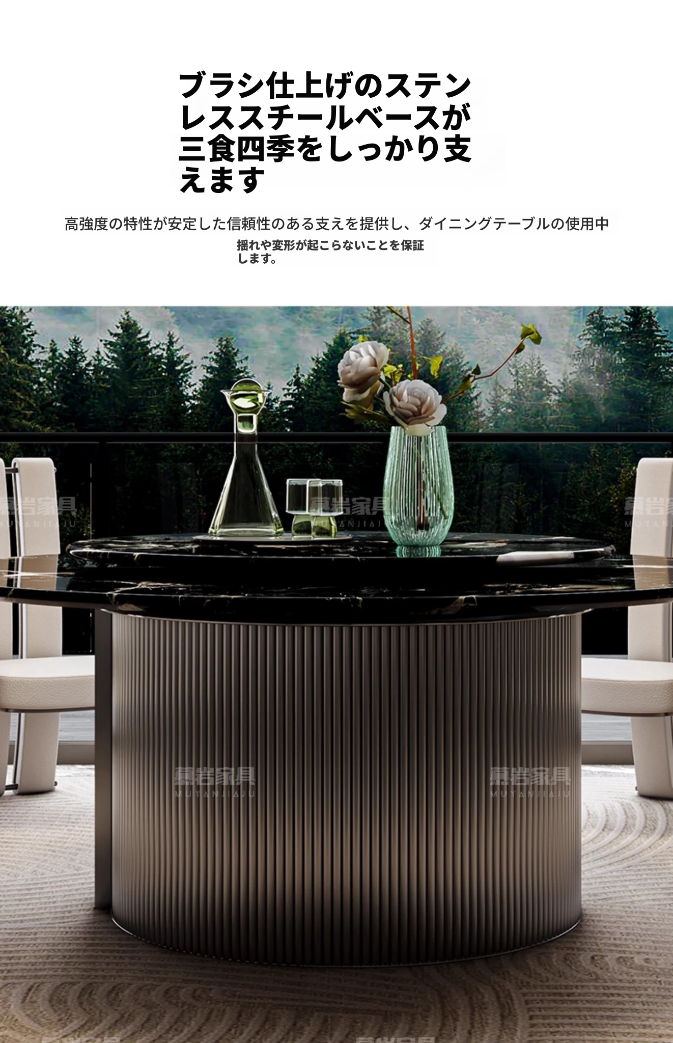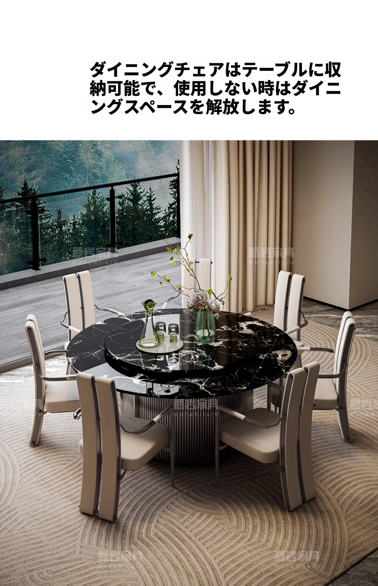 【S級】ブラックローズ・天然の贅沢石製円形ダイニングテーブル+マスター椅子*8