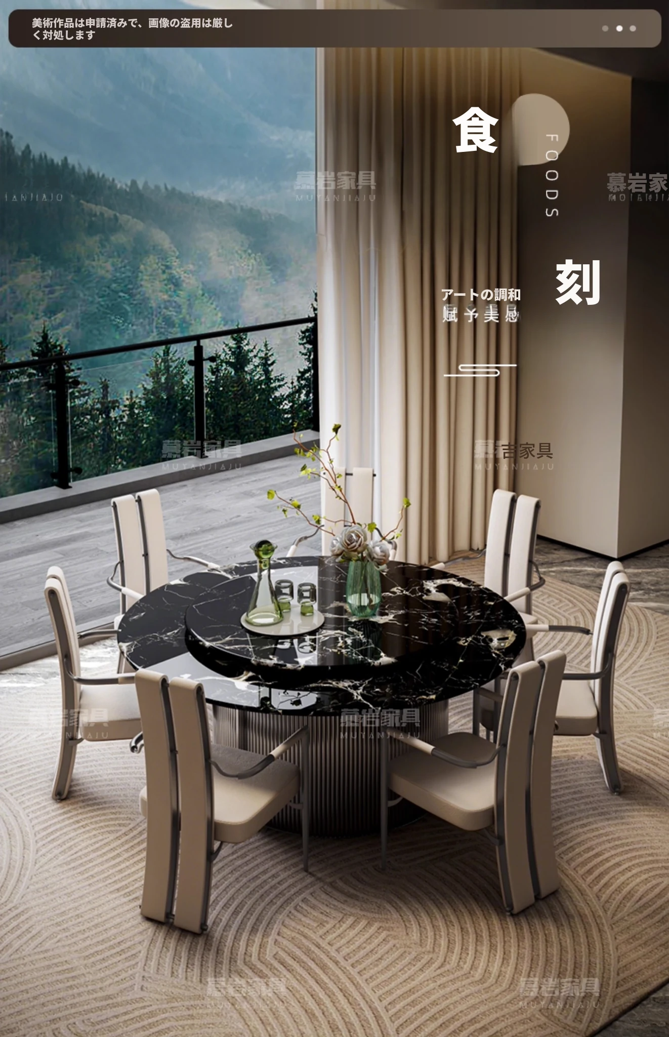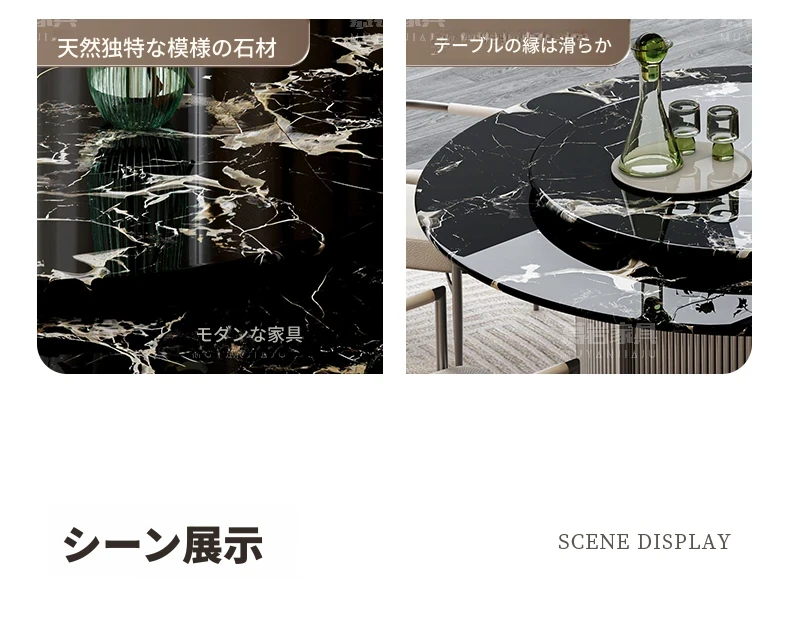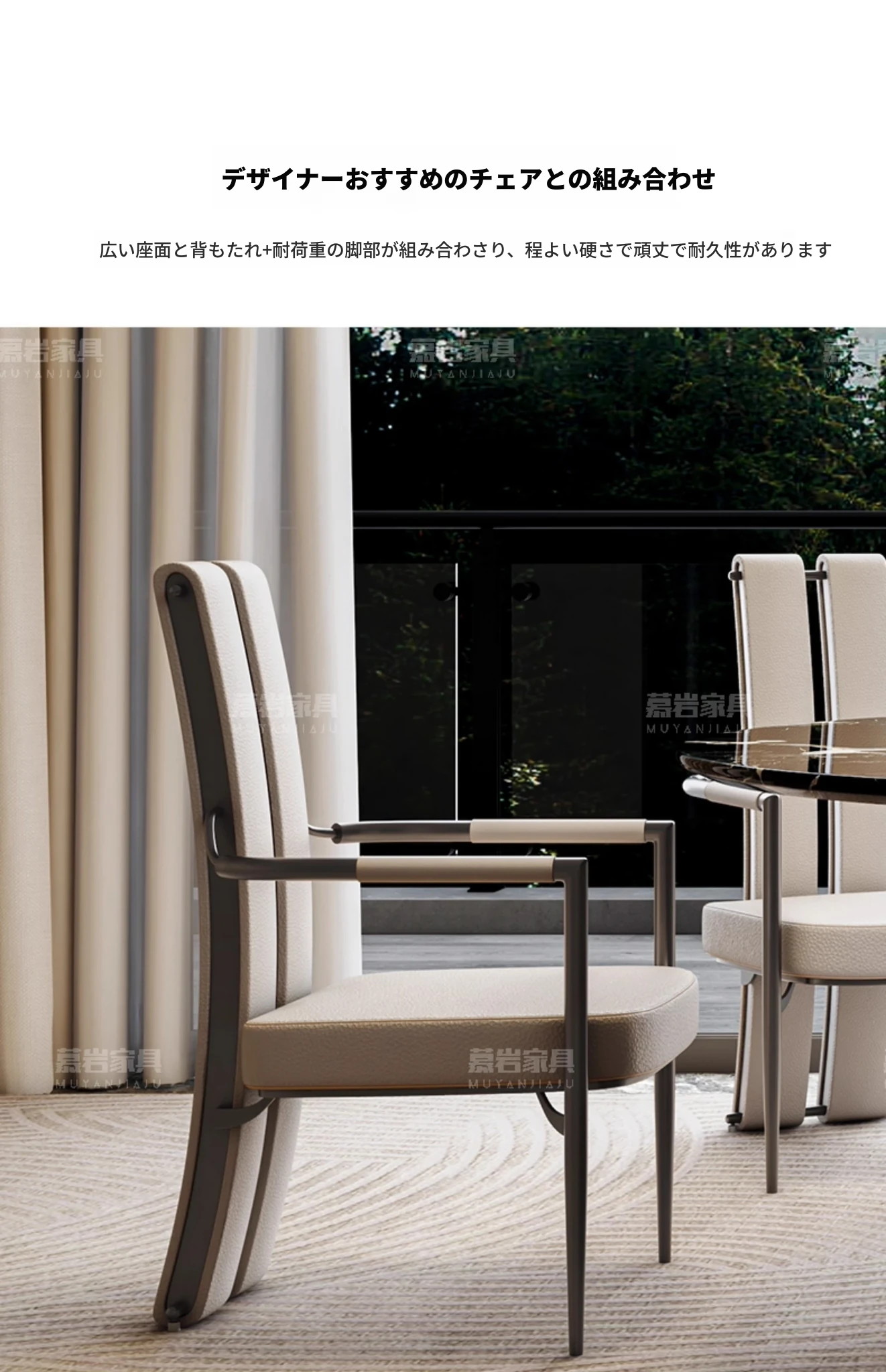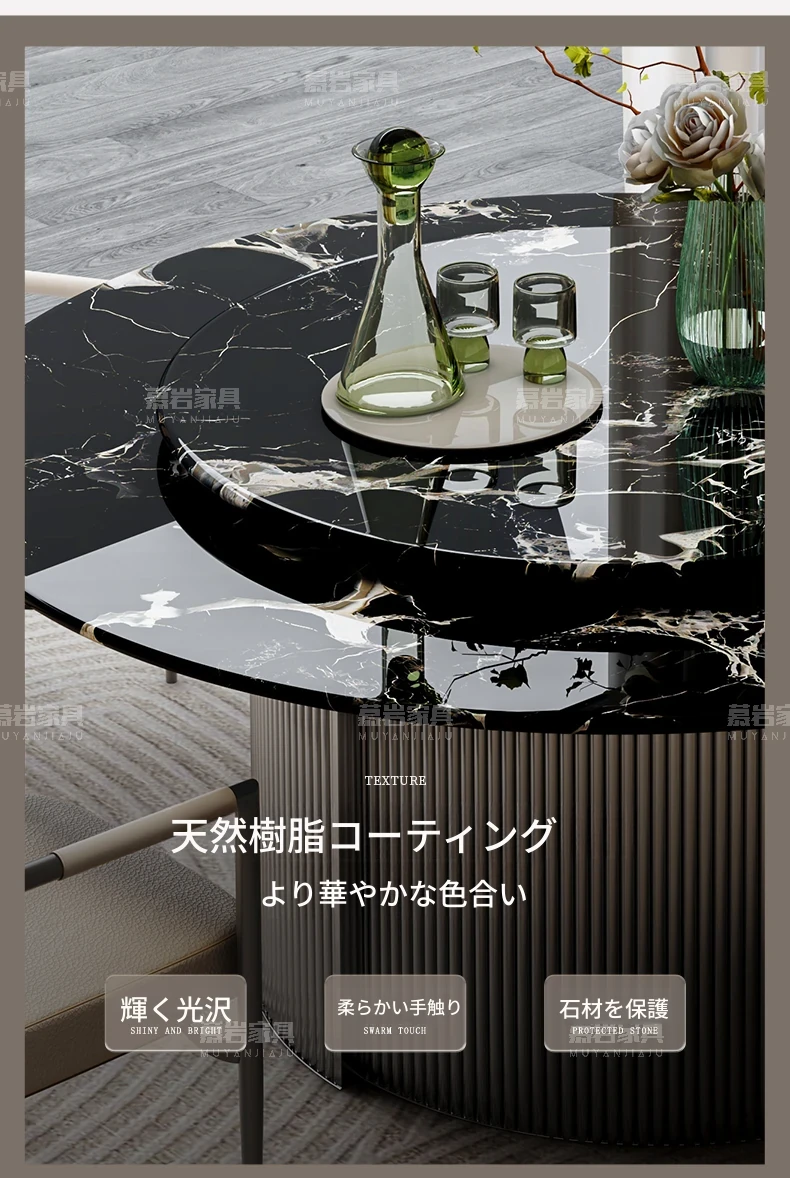 【S級】ブラックローズ・天然の贅沢石製円形ダイニングテーブル+マスター椅子*8