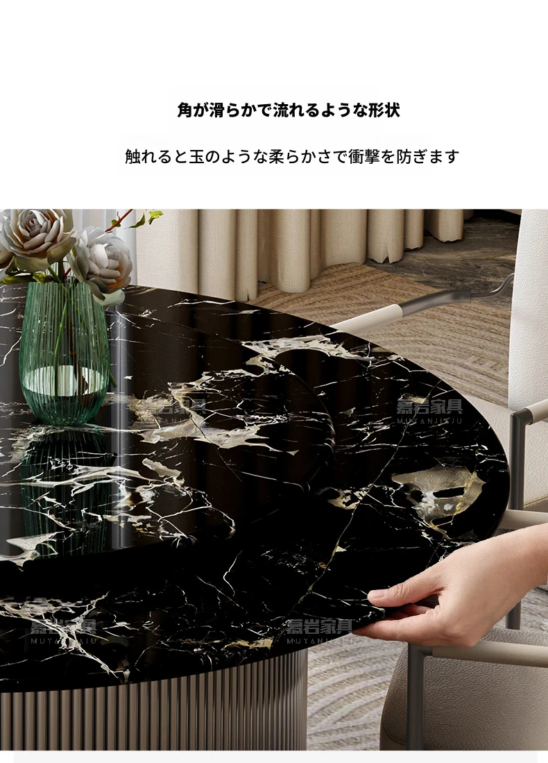 【S級】ブラックローズ・天然の贅沢石製円形ダイニングテーブル