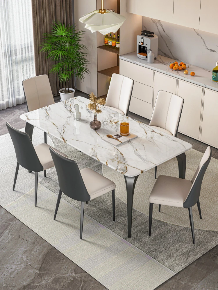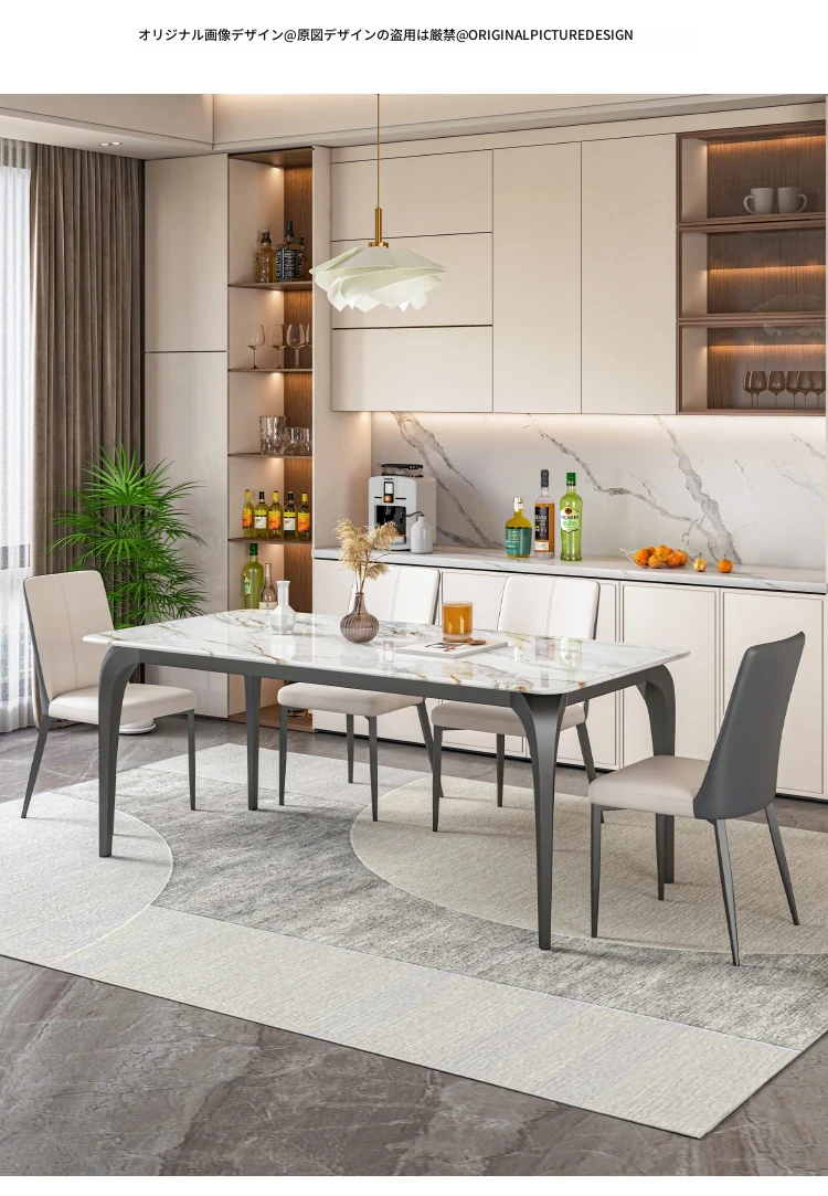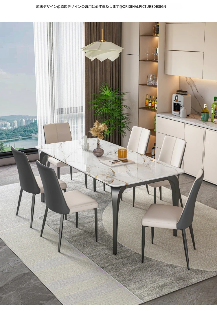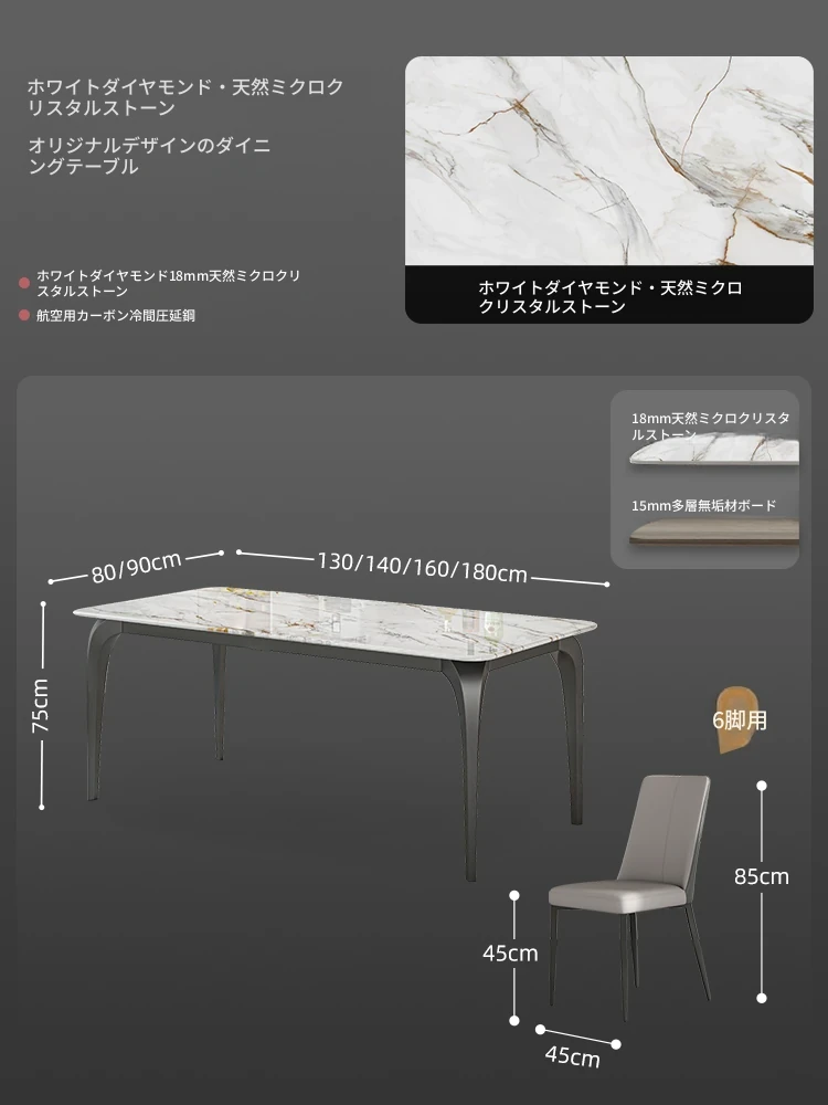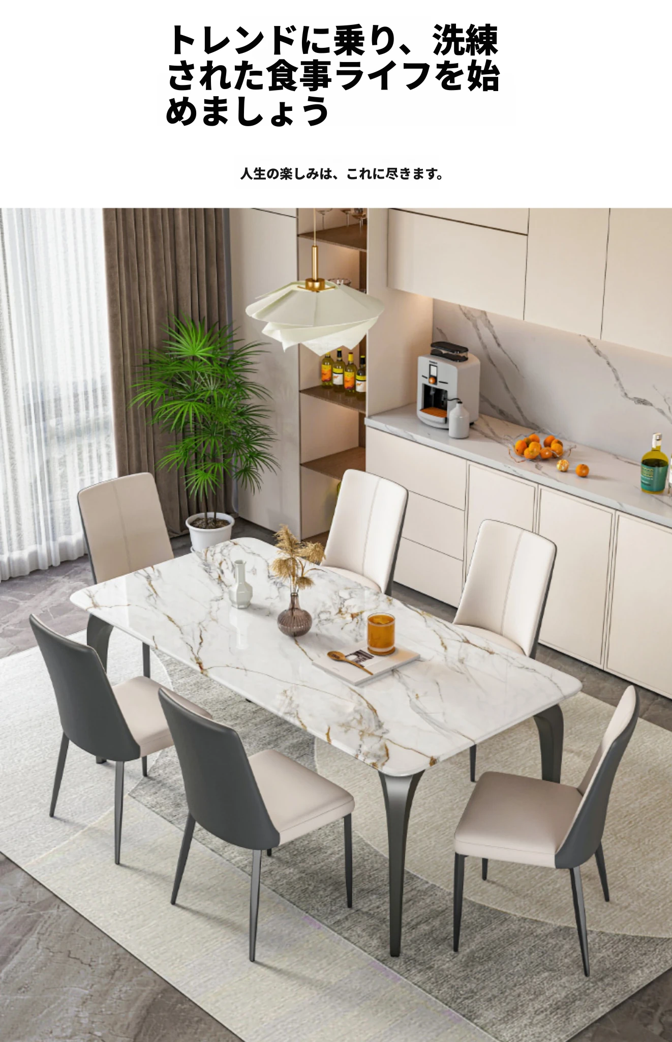 白ダイヤモンド・天然微晶石ダイニングテーブル+ダイニングチェア*6