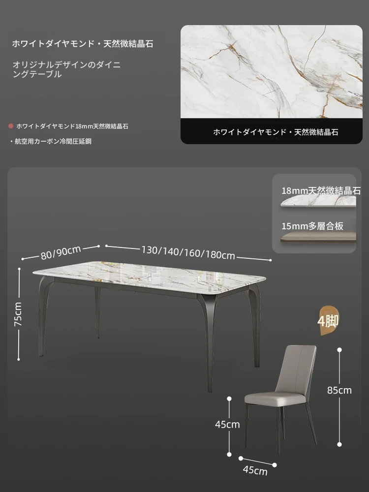 白ダイヤモンド・天然微晶石ダイニングテーブル+ダイニングチェア*4