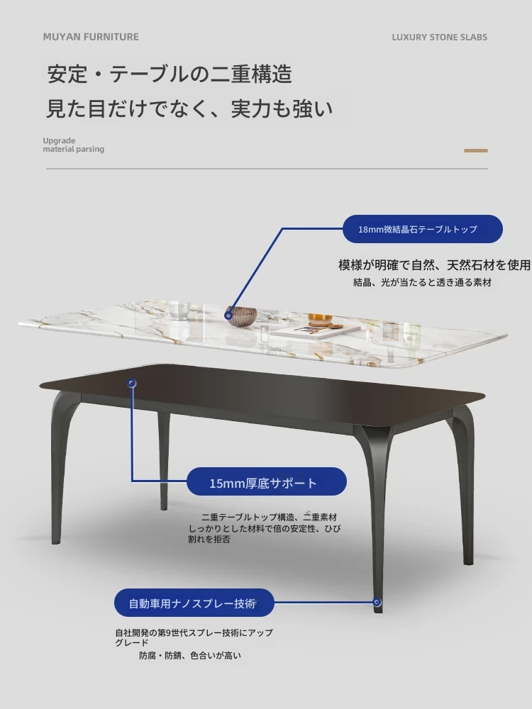 白ダイヤモンド・天然微晶石ダイニングテーブル