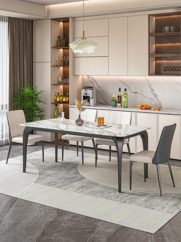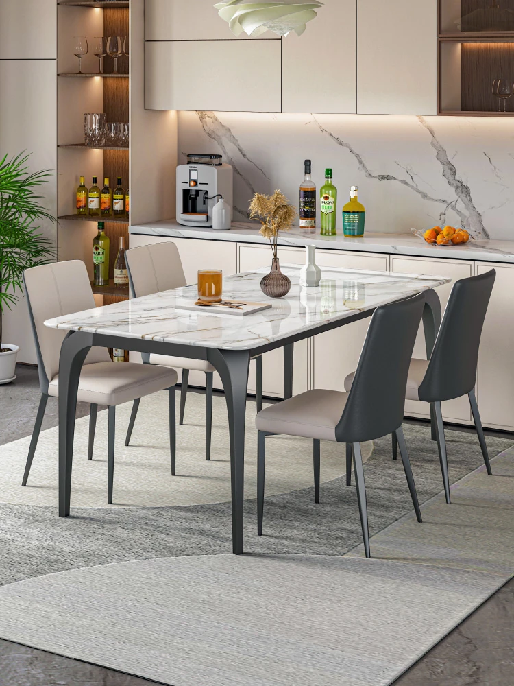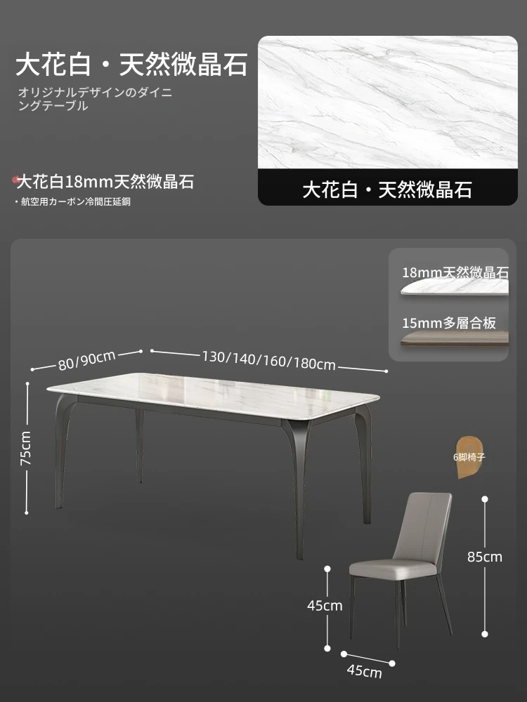 天然ミクロクリスタル石のダイニングテーブル - イタリアンミニマリズムの極み!高級感溢れる天然大理石のテーブルと椅子のセット。小さなお部屋にもぴったりなデザインで、食卓を華やかに演出します。